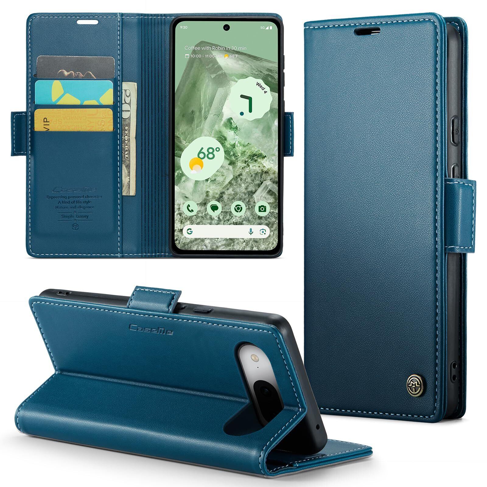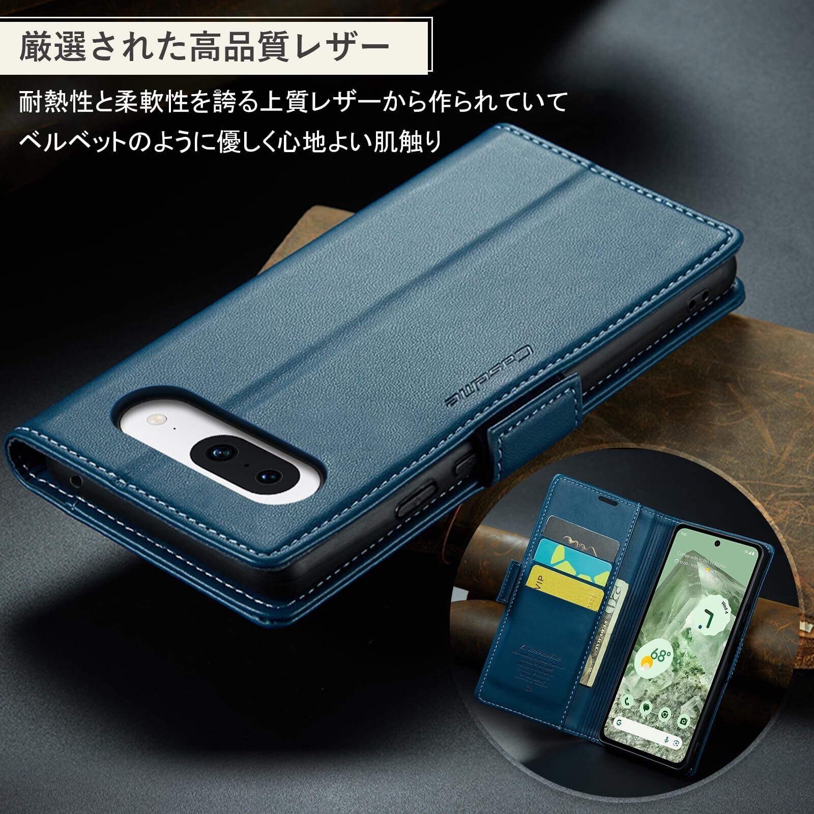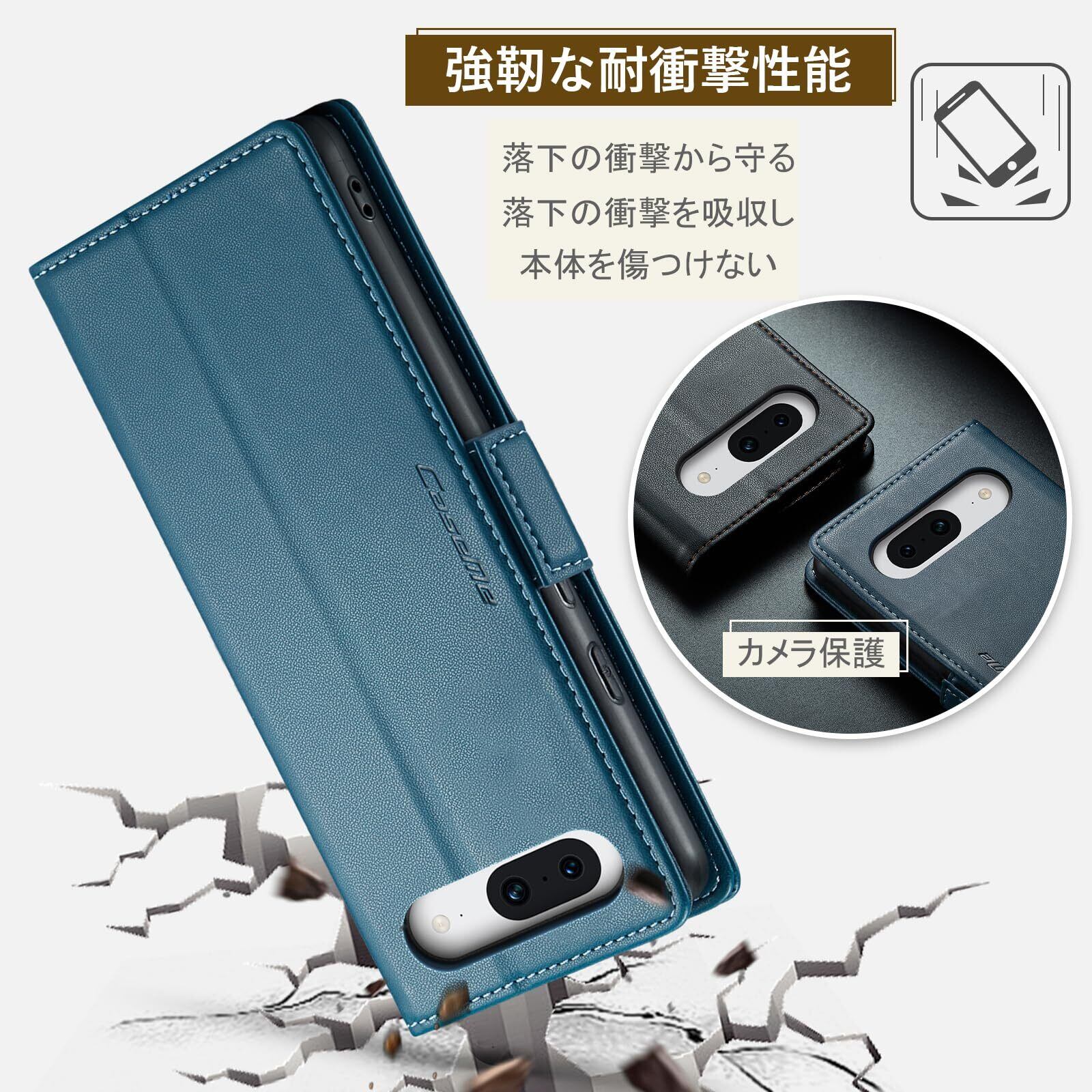 Google Pixel 8a ケース 手帳型 財布型 カードポケット付き ピクセル8a 用 携帯カバー カード収納 Uovon スマホケース 高級レザー 耐衝撃 全面保護 スタンド機能 ストラップホール付き マグネット式 · ブルー | kki