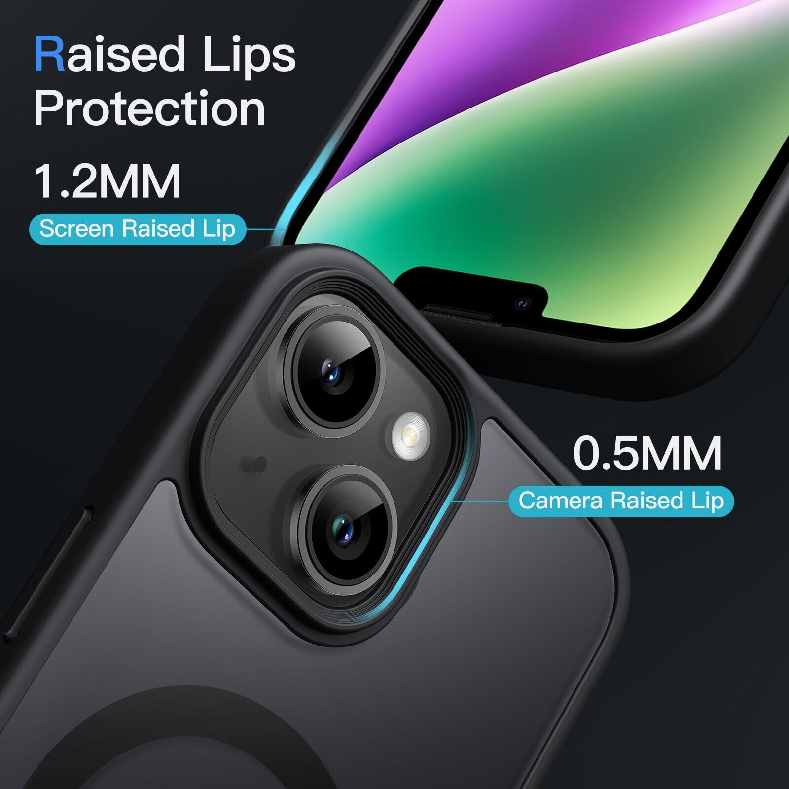 JETech iPhone 14 6.1インチ用 マグネット ケース MagSafeに対応 半透明のマット背面 薄型 耐衝撃 カバー (ブラック)