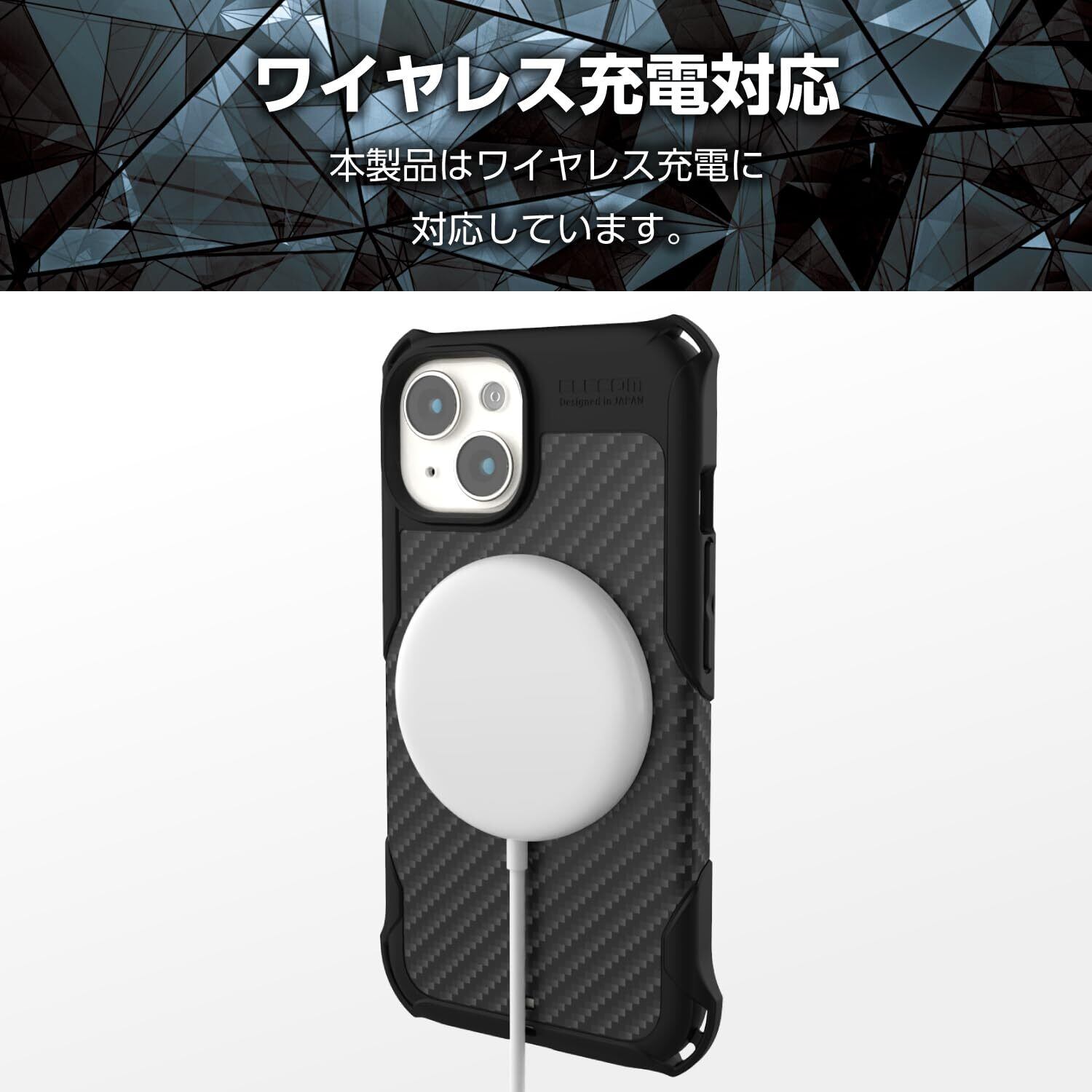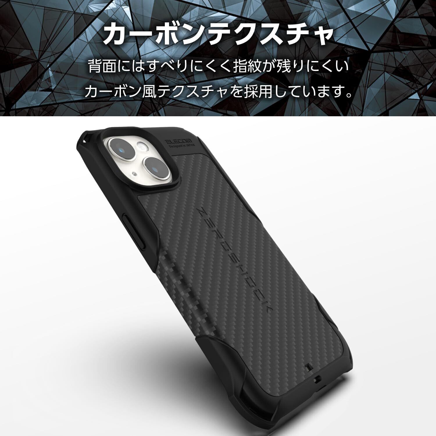 エレコム iPhone15 ケース ZEROSHOCK マグネット内蔵 耐衝撃 衝撃吸収 四つ角ダンパー グリップデザイン ストラップホール付き ブラック PMWA23AZEROG2BK