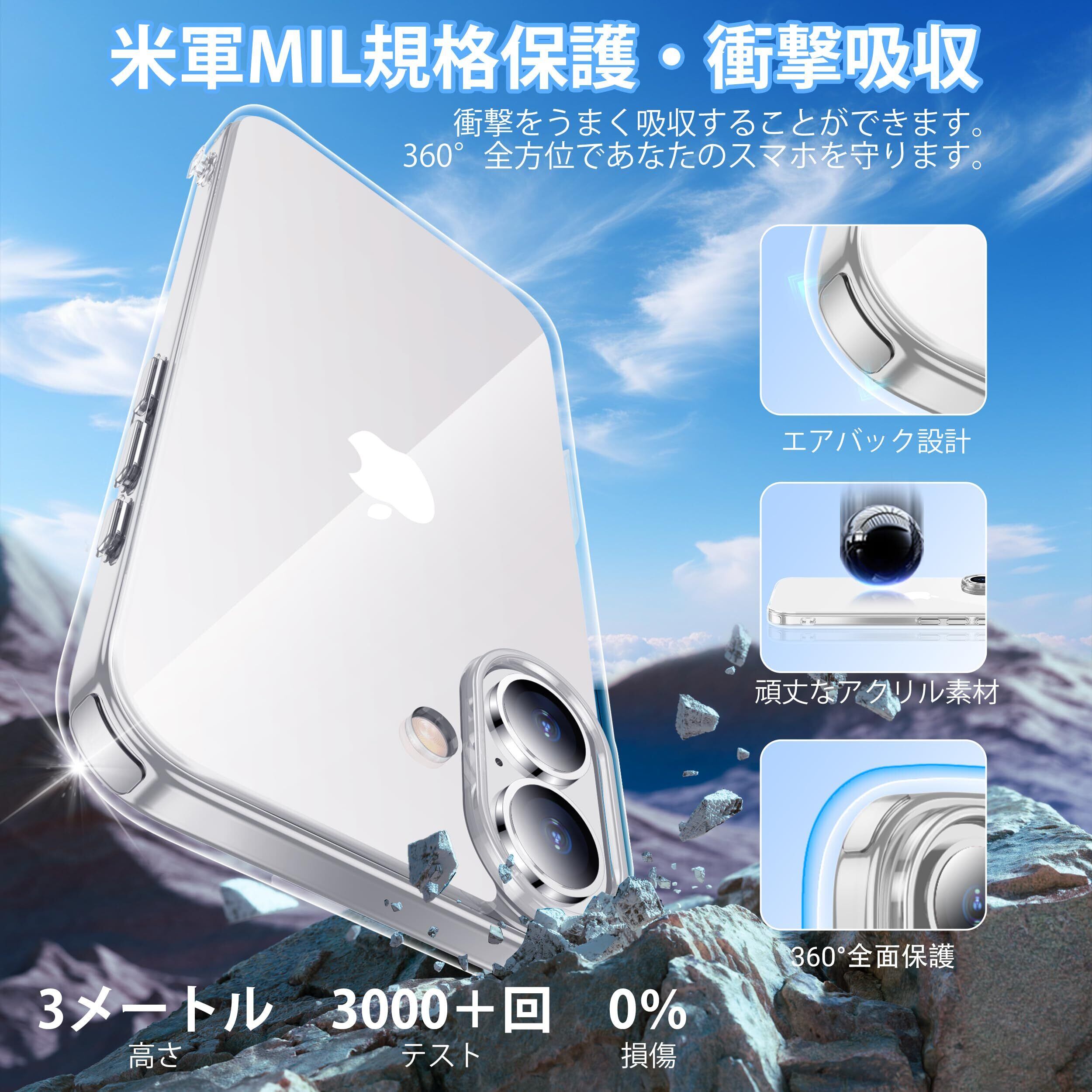 iPhone 16 用 ケース クリア 耐衝撃 黄ばみ防止 アイフォン16ケース 米軍MIL規格 ワイヤレス充電対応 SGS認証 指紋防止 滑り止め 薄型 耐摩耗性 あいふぉん16 あいふぉん16 カバー スマホケース 6.1インチ 透明 JUSTCOOL | kki