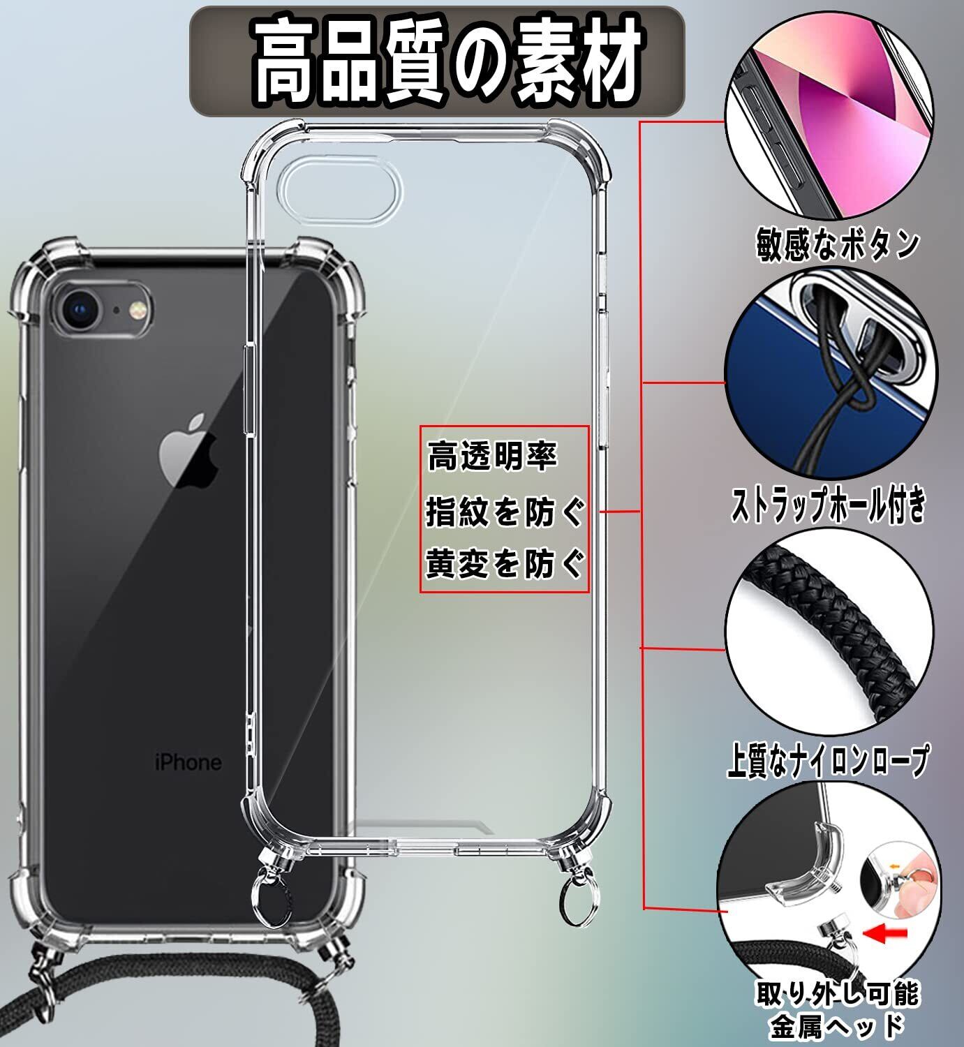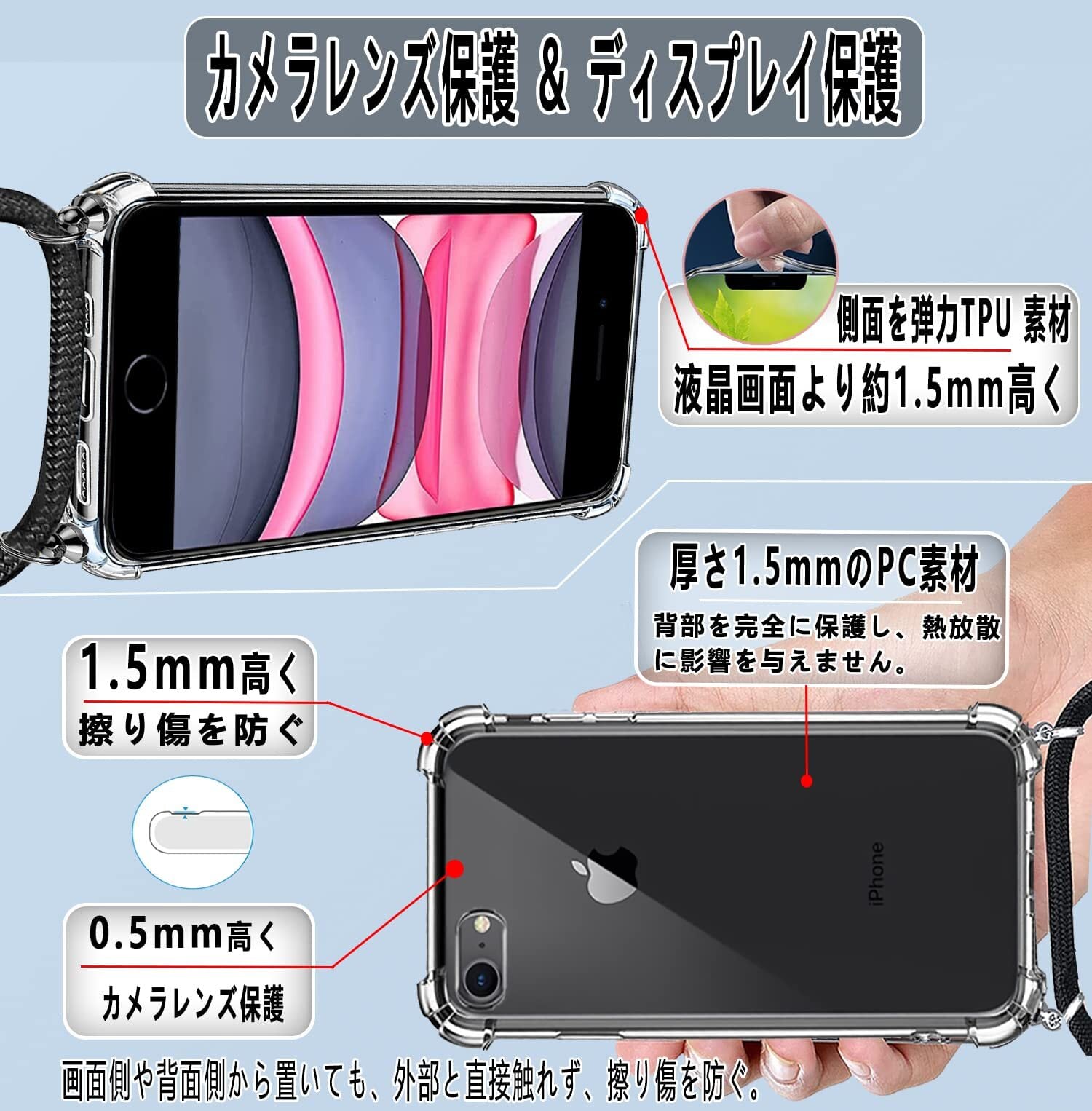 iPhone SE 3/2 用ケース アイフォンSE 第3世代/第2世代 ケース iPhone7/8 用カバー [ストラップ2種付き] 調節可能な ショルダー 肩がけ 首掛け 紐付き 薄型 透明 PC + 軽量 シリコン TPUバンパー [耐衝撃 傷防止 全面保護 ストラップホール付き 米軍MIL規格] 対応 アイフォン SE3/SE2/8/7 カバー (クリア) | kki