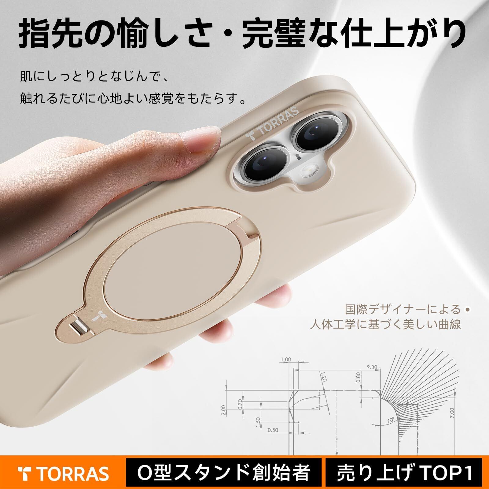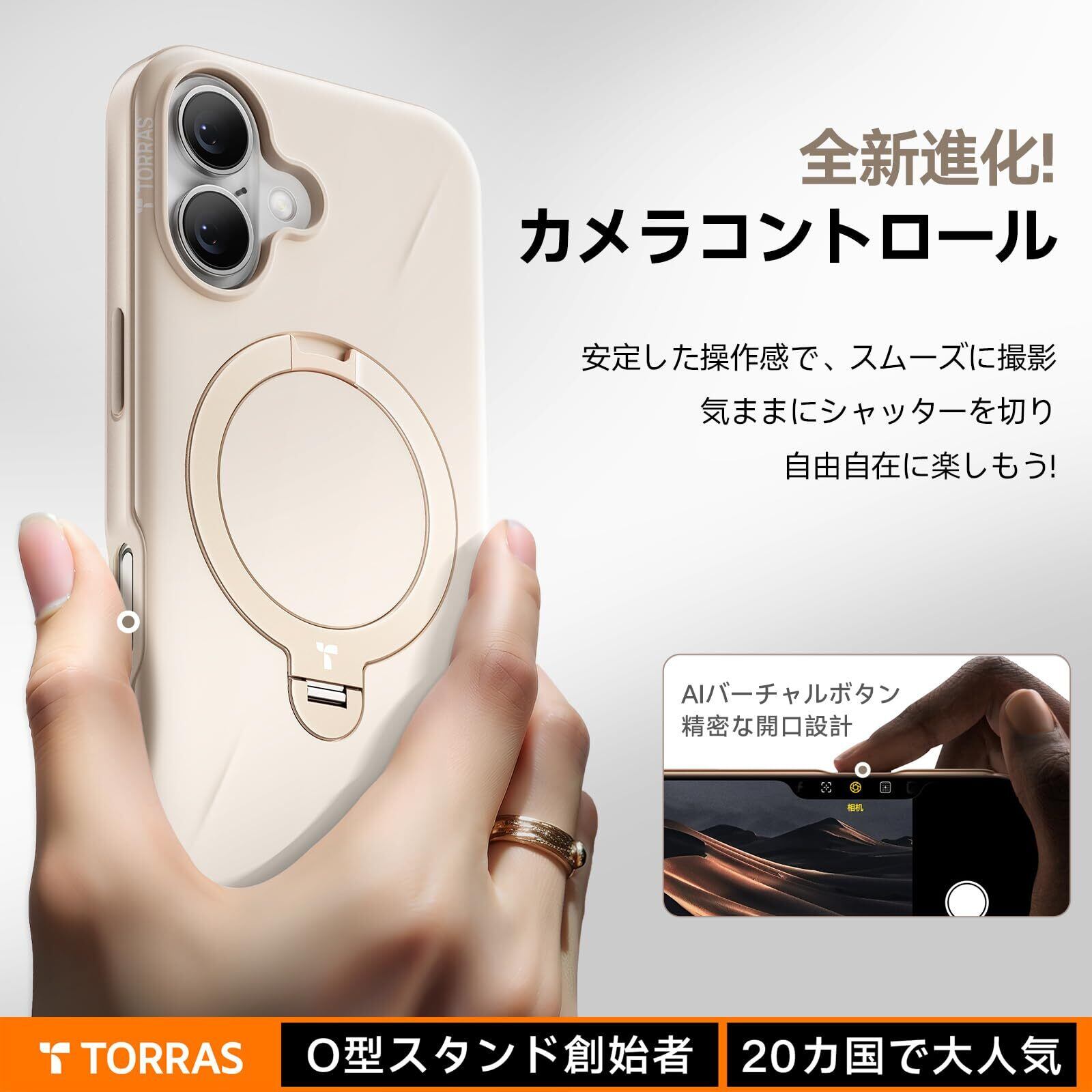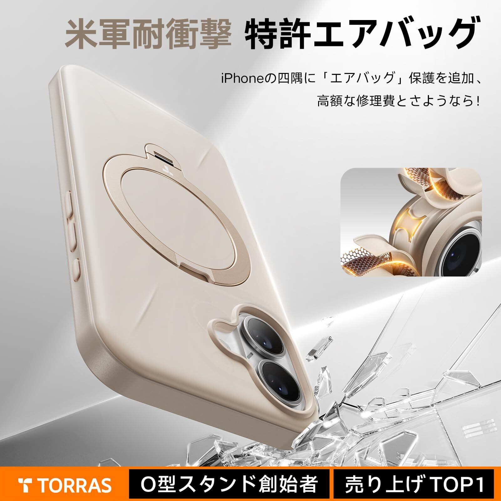 【新型ゼンマイ式 ・高級ミルクティー】TORRAS iPhone 16 用 ケース MagSafe対応 ゼンマイ式スタンド 米軍MIL規格 耐久性 マグネット搭載 縦横両対応リング 米軍耐衝撃 ストラップホール付き アイフォン16 ケース 6.1インチ「Ostand Spin Fusion」ミルクティー | kki