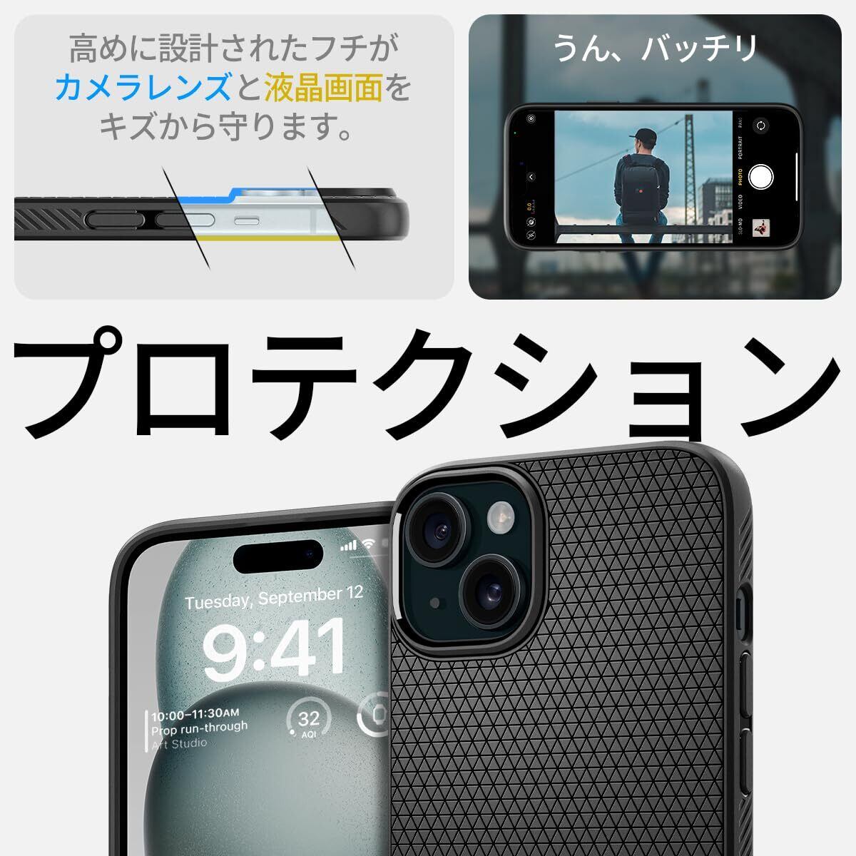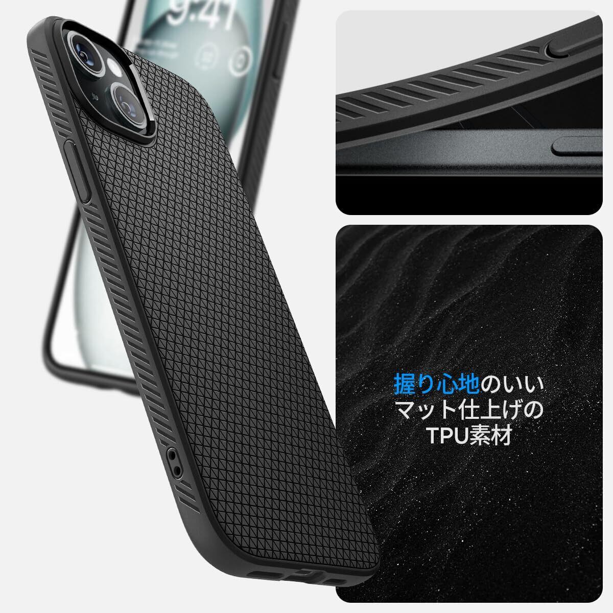 Spigen 【創業18年の技術力】 iPhone 15 ケース 耐衝撃 薄型 ストラップホール 軽量 さらさら 米軍MIL規格取得 2重構造 レンズ保護 指紋防止 擦り傷防止 マット仕上げ ワイヤレス充電対応 リキッド・エアー ACS06790 (マット・ブラック) | kki