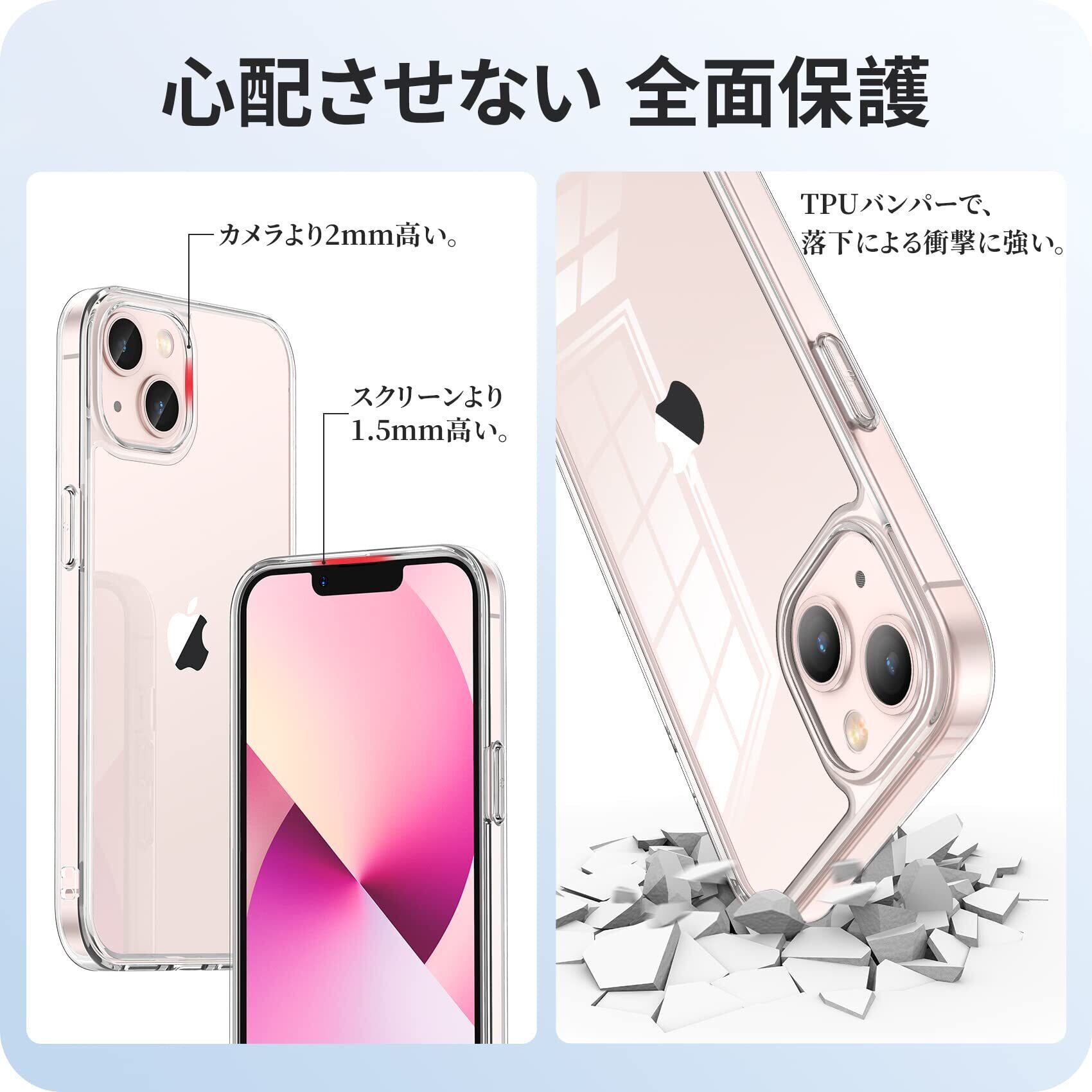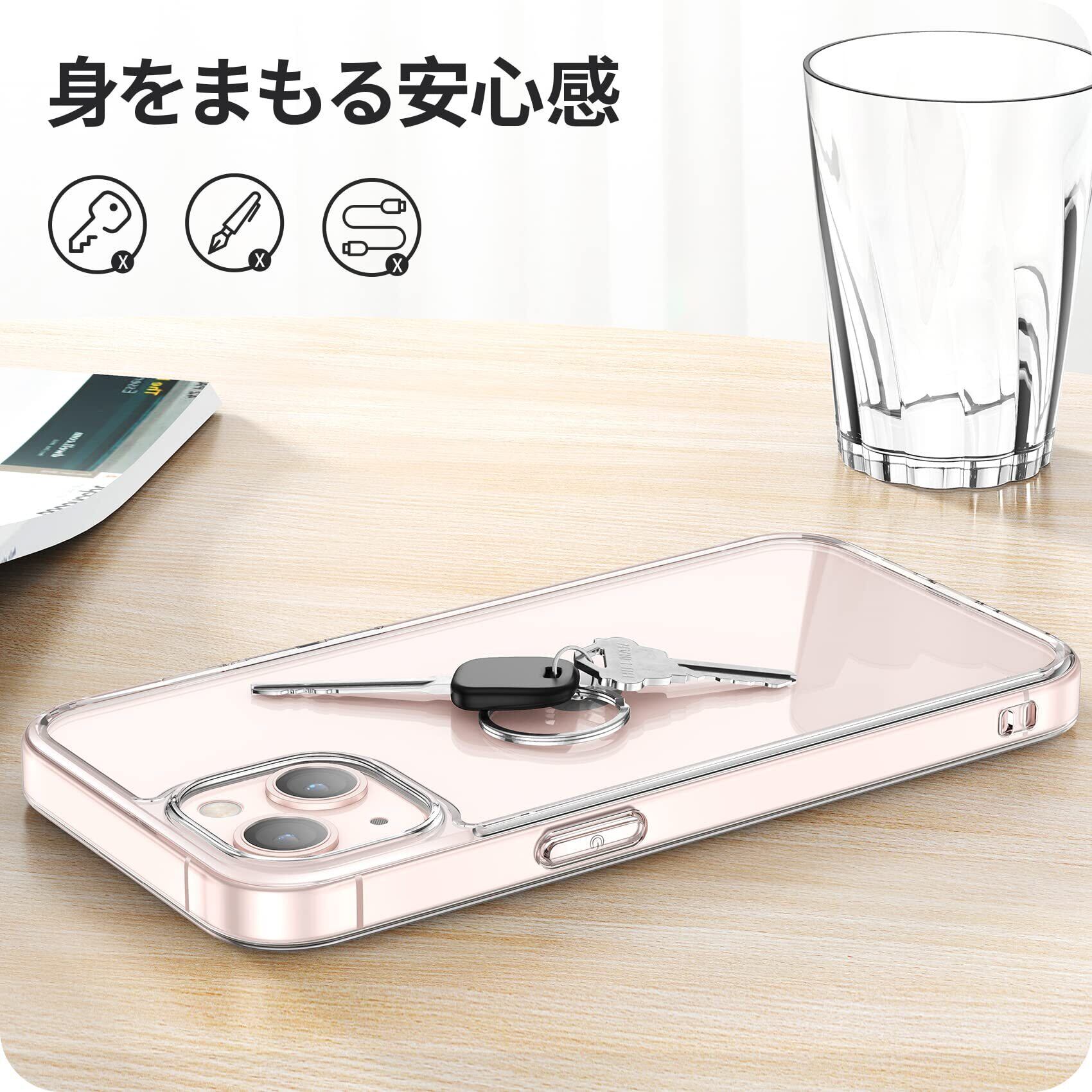 NIMASO iPhone 13 mini 用 ケース クリア 背面 強化ガラス 9H硬度 米軍MIL規格 SGS認証 耐衝撃 傷つけ防止 透明 薄型 バンパー 黄変防止 ワイヤレス充電対応 ストラップホール付き アイフォン13ミニ対応 スマホケース NSC21I323 | kki