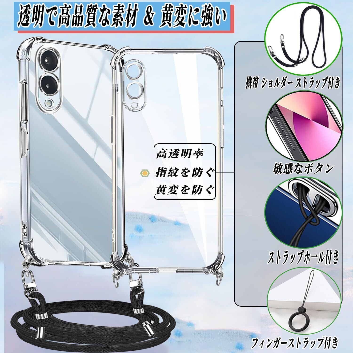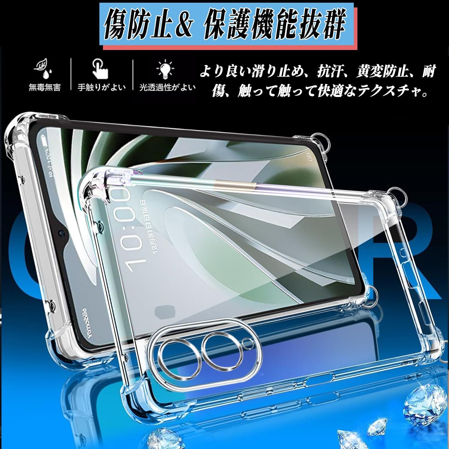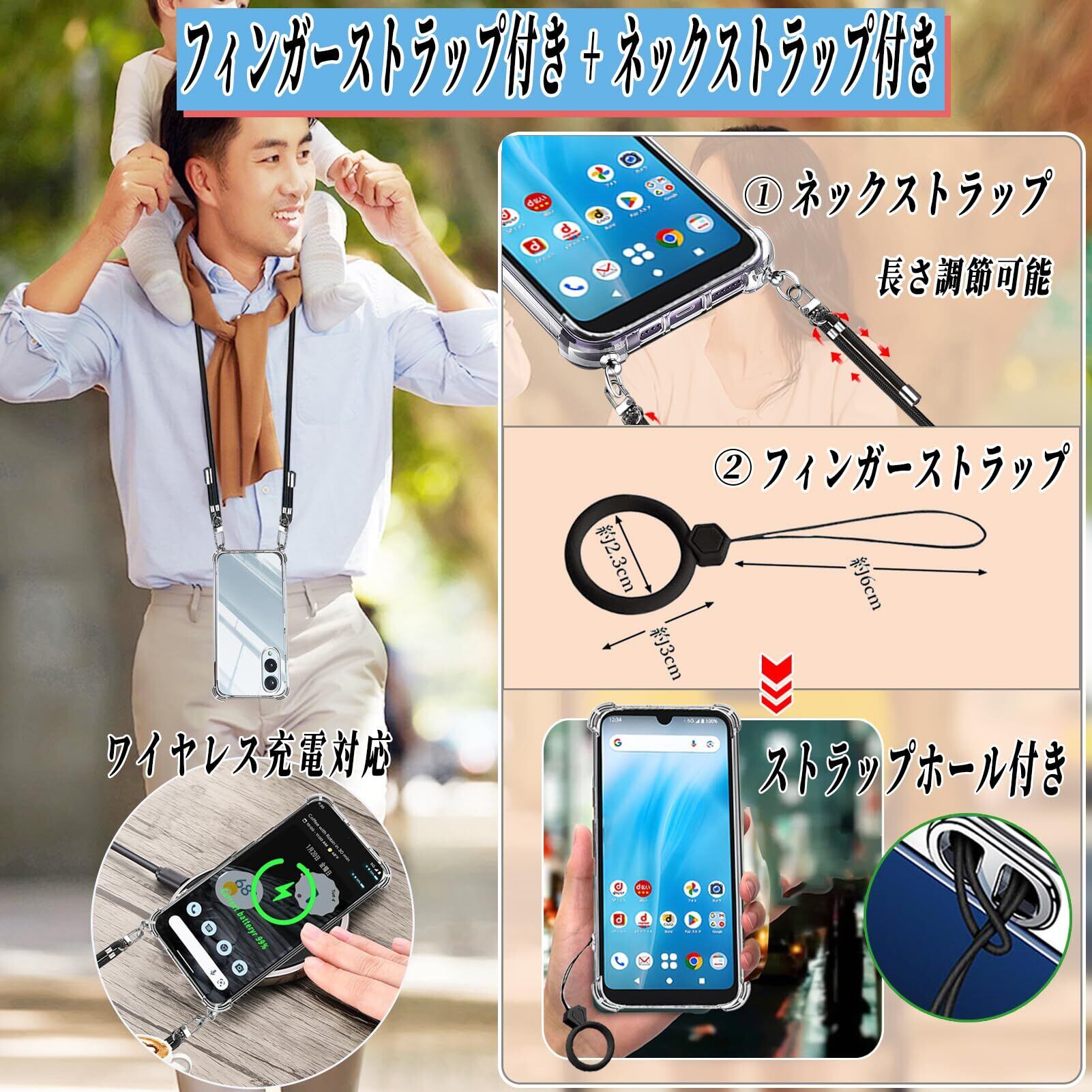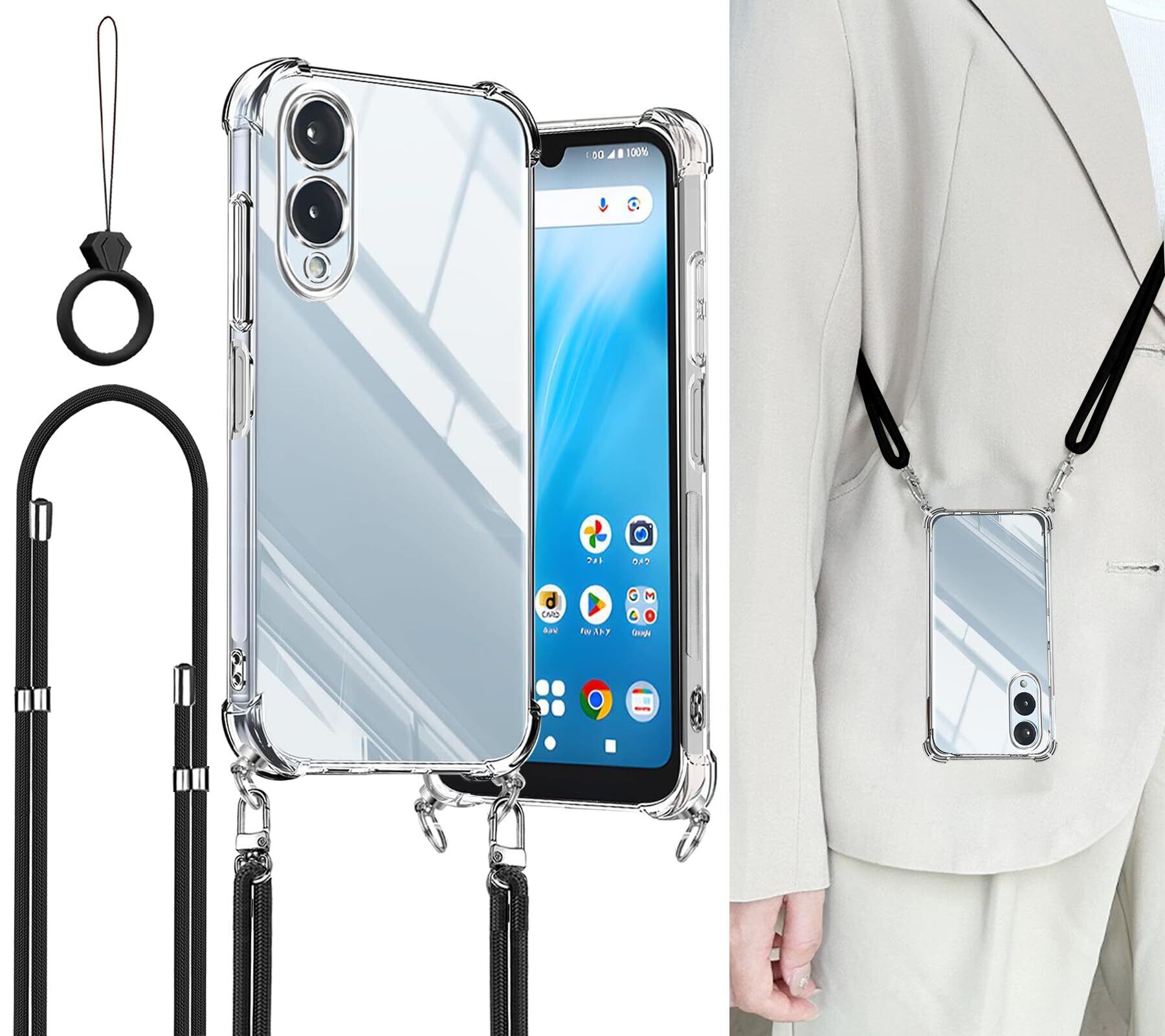 アローズ we2 ケース F-52E/FCG02 カバー arrows we2 m07 ケース ショルダー ストラップ2枚付き 紐付き 首掛け 肩がけ 斜め掛け ストラップホール付き 薄型 軽量 耐衝撃 シリコン TPU バンパー 黄変防止 透明 米軍MIL規格 スマホケース arrows we2 (クリア) | kki