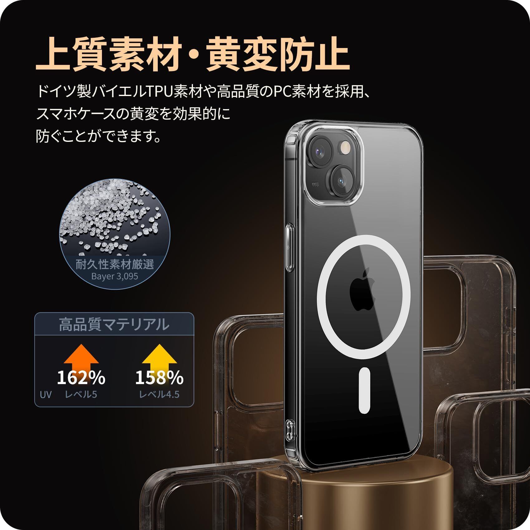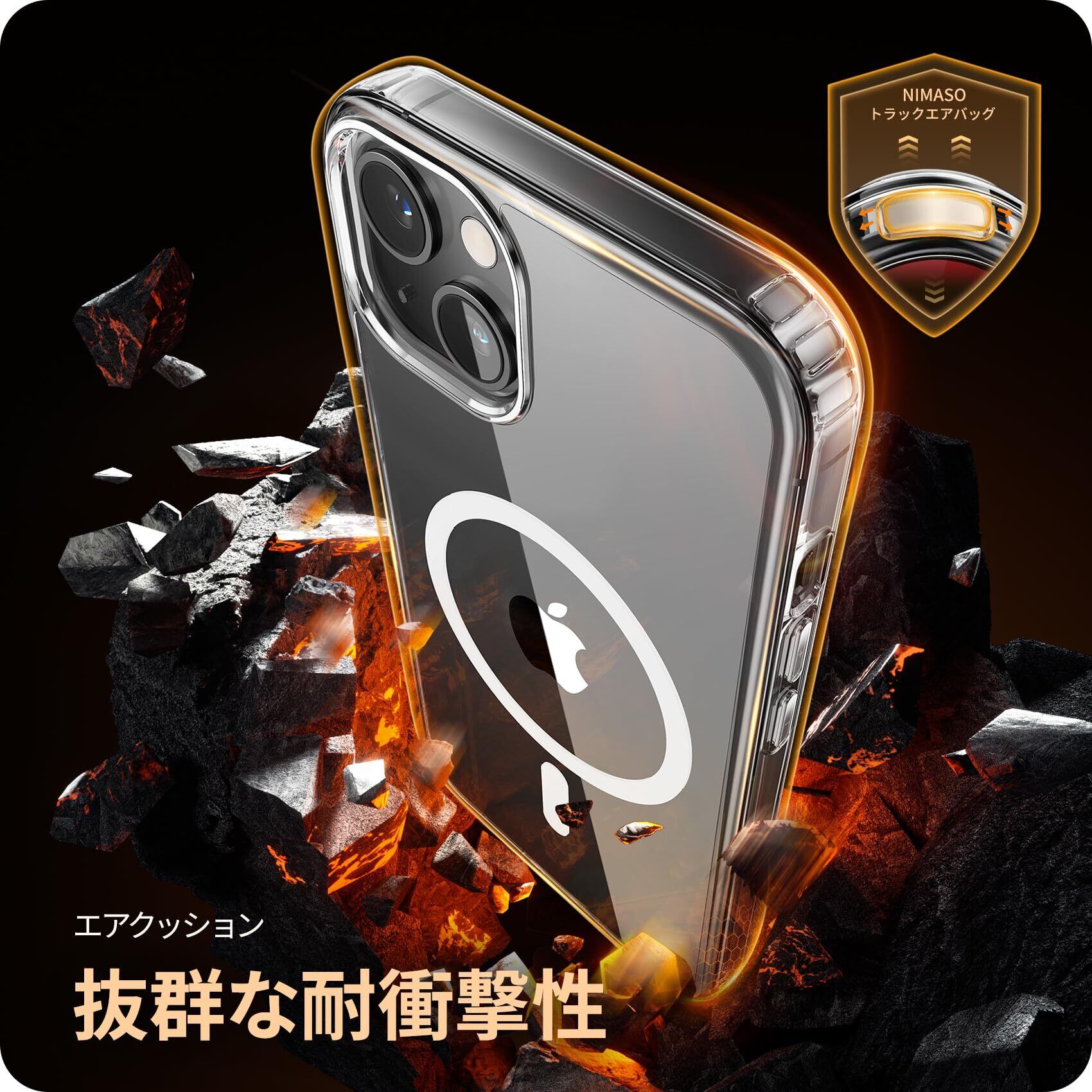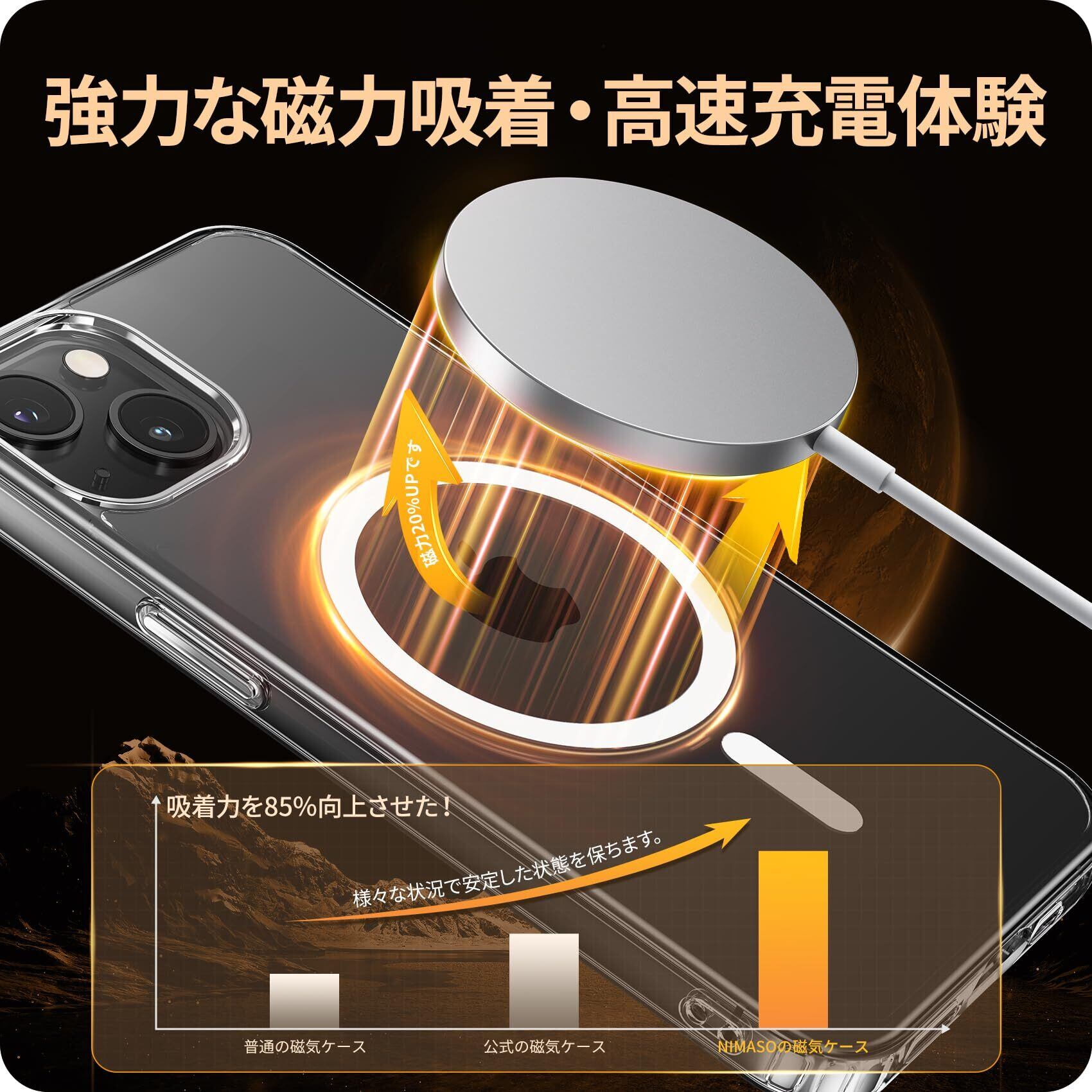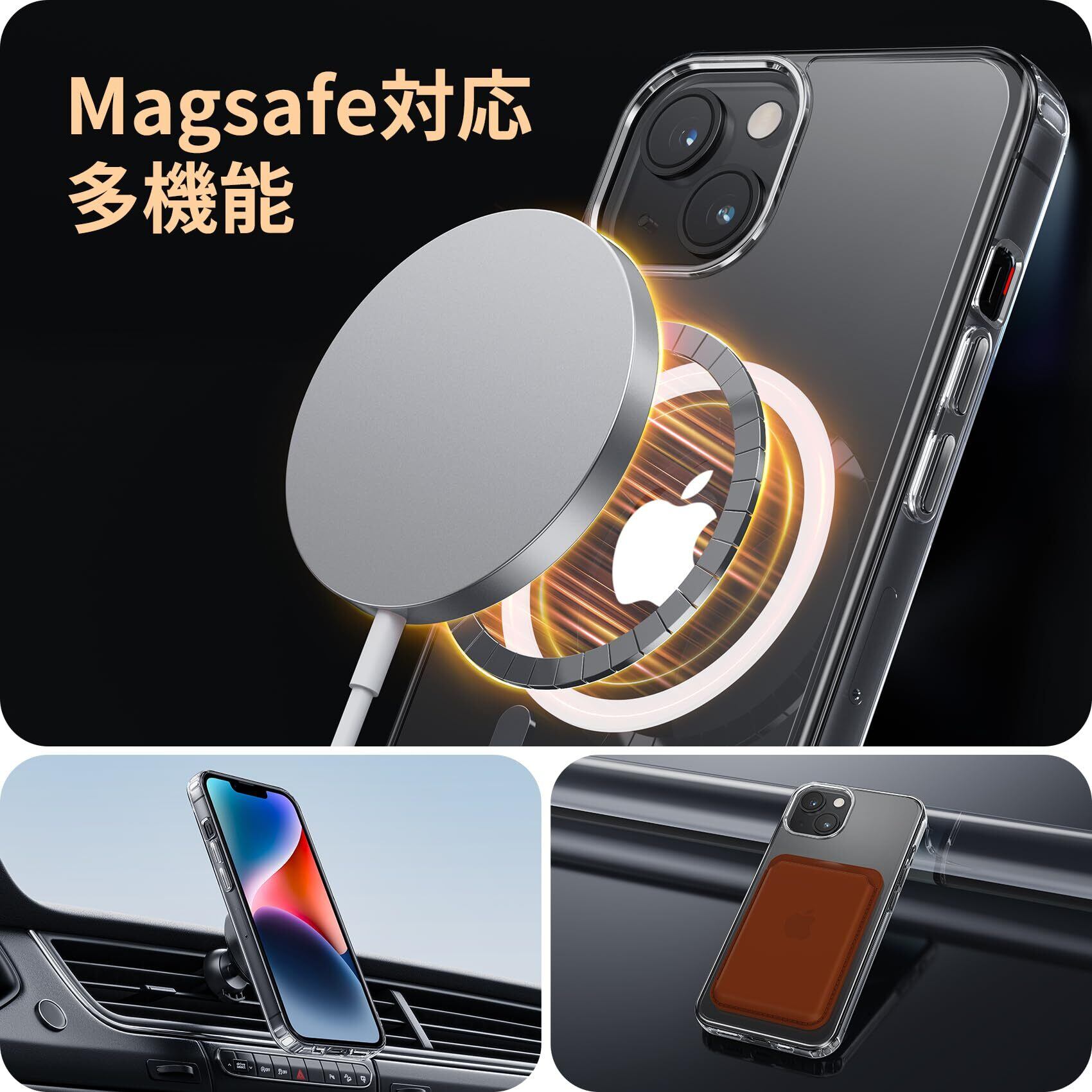 NIMASO iPhone 14 / 13 用 ケース MagSafe対応 クリア 軽量 PC 背面 黄変防止 耐衝撃 傷つけ防止 ケース マグネット搭載 マグセーフ対応 バンパー ワイヤレス充電対応 ストラップホール付き 携帯カバー アイフォン14 / 13対応 6.1インチ用 スマホケース(氷星シリーズ)NSC24C1141 | kki
