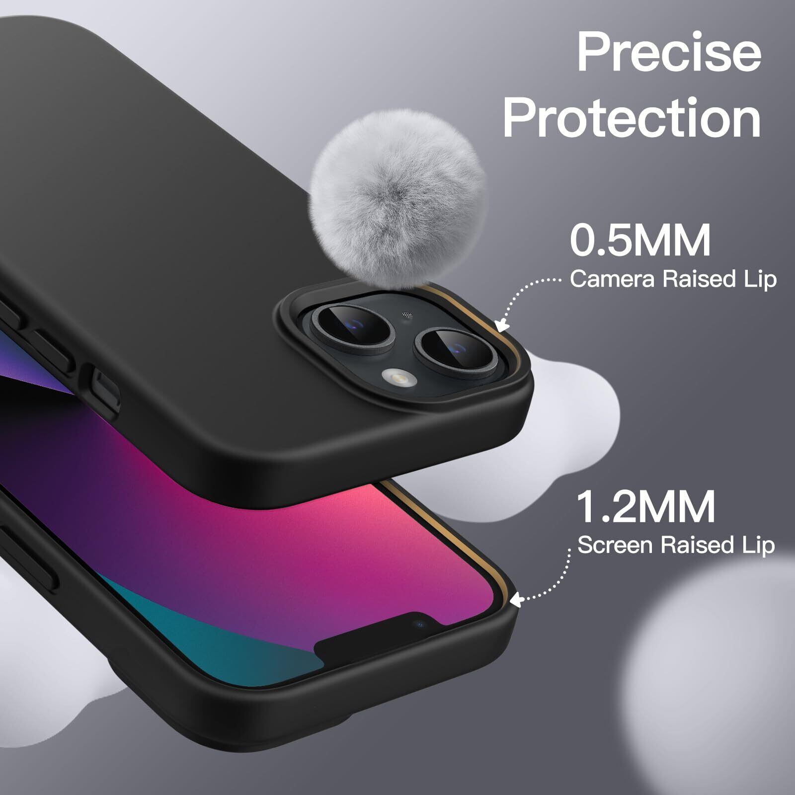 JETech iPhone13 シリコンケース(6.1インチ専用) シルキーソフトタッチフルボディ保護ケース マイクロファイバーライニング付き耐衝撃カバー (ブラック)