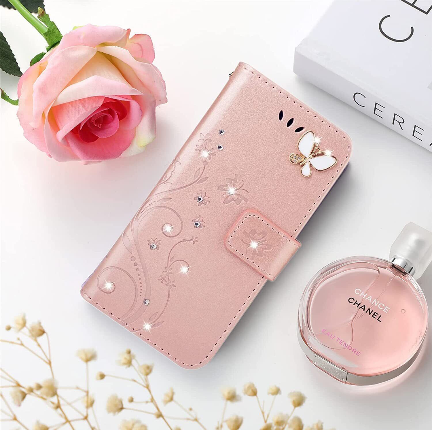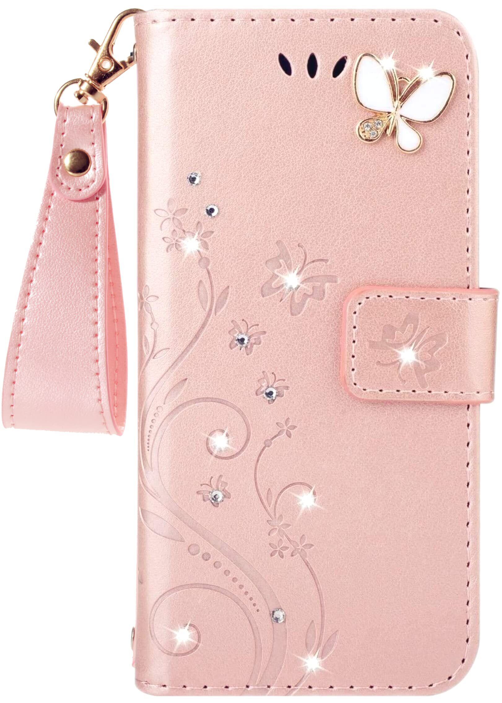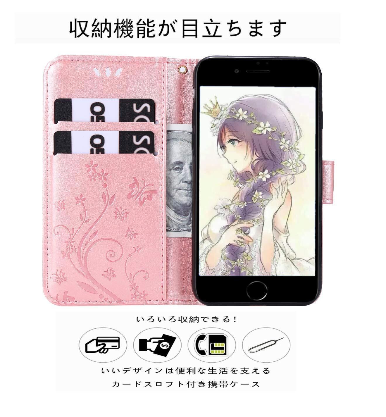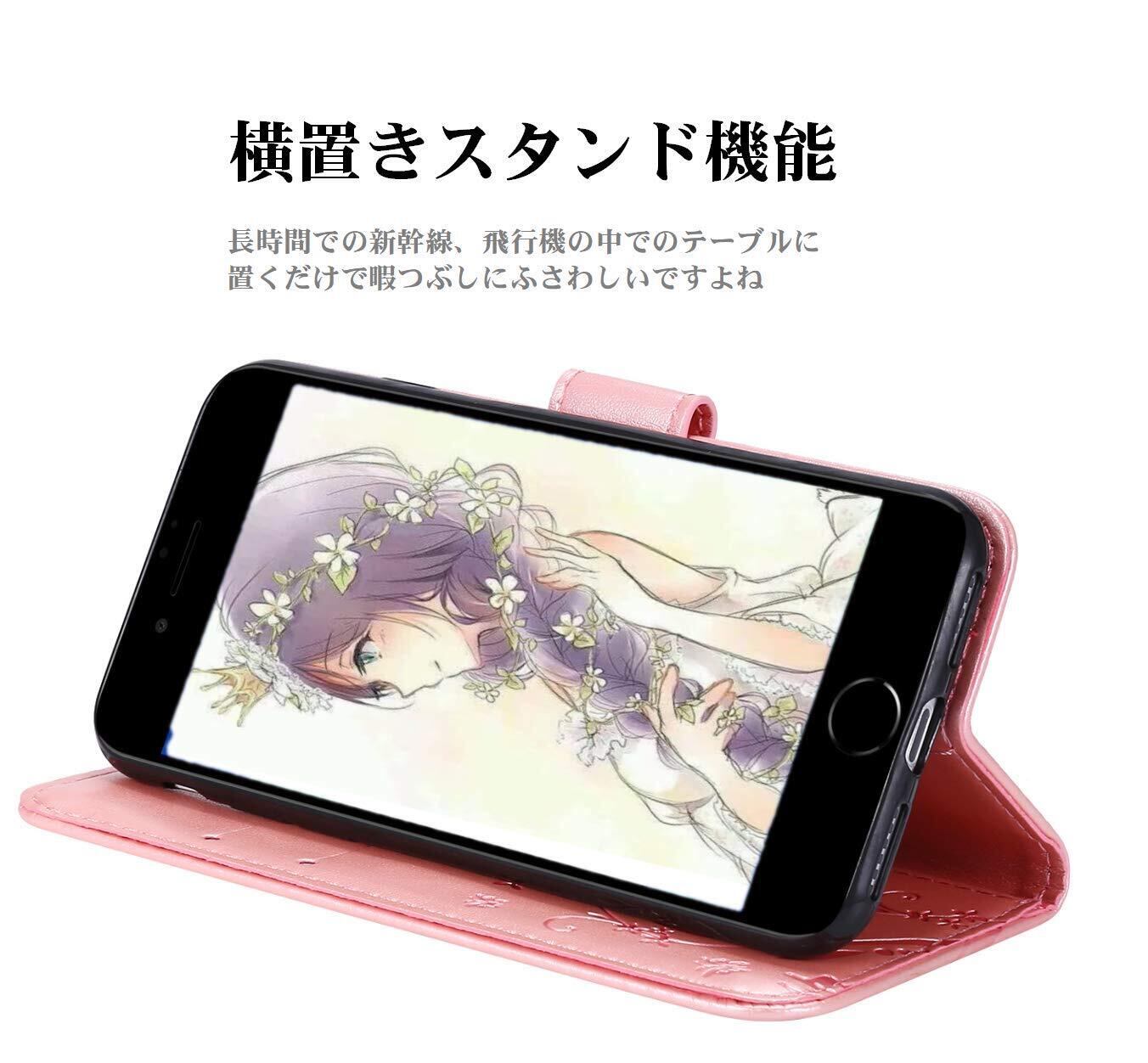 【ツバメ屋】かわいい手帳型 iPhone SE3用の手帳型 ケース/ [第2世代]2020用のケース/iPhone8/7/6用の ケース/Phone SE3 第3世代に適合するケース ストラップ付き カード収納 財布型 人気 おしゃれ 横置き機能き薄型 財 マグネット式 ローズゴールド | kki
