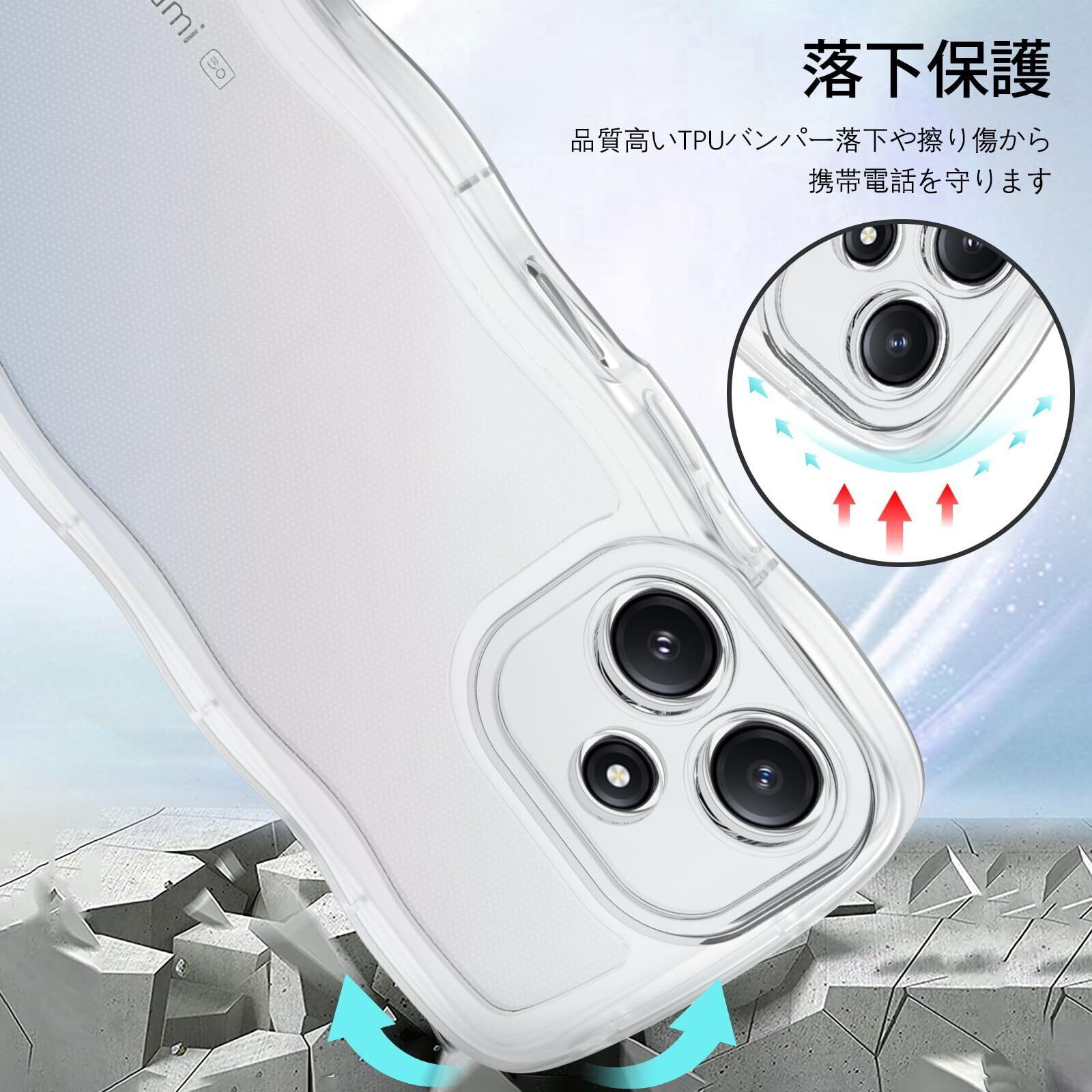 VENINGO Redmi 12 5G用 クリアケース Redmi Note 12R カバー クリア ウェーブ おしゃれ TPU+PC 韓国 かわいい 可愛い スマホケース 人気 シンプル 滑り止め 薄型 軽量 耐衝撃 指紋防止 レンズ保護 ストラップホール付き TPU バンパー シャオミ リドミーノート12R/リドミ 12 5Gケース 6.79インチ 透明 | kki