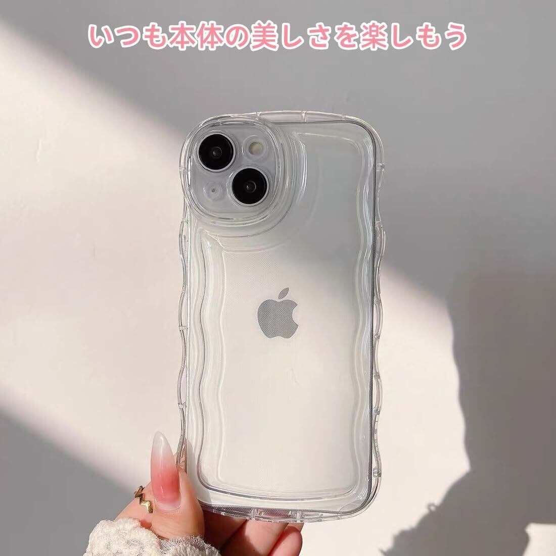 iPhone16 ケース 可愛い クリア アイフォン16 おしゃれ 韓国 人気 透明 TPU カバー かわいい 波状フレーム 薄型 軽量 耐衝撃 ワイヤレス充電対応 6.1インチ