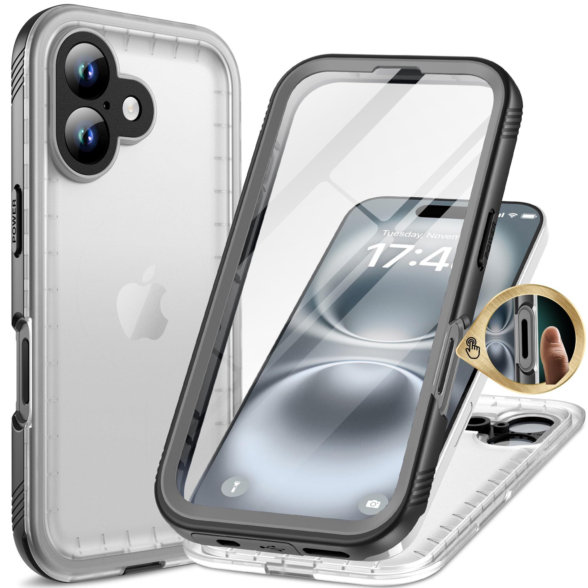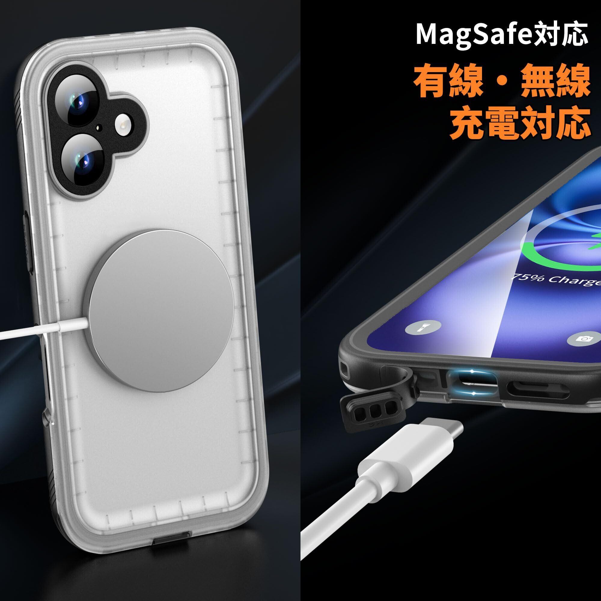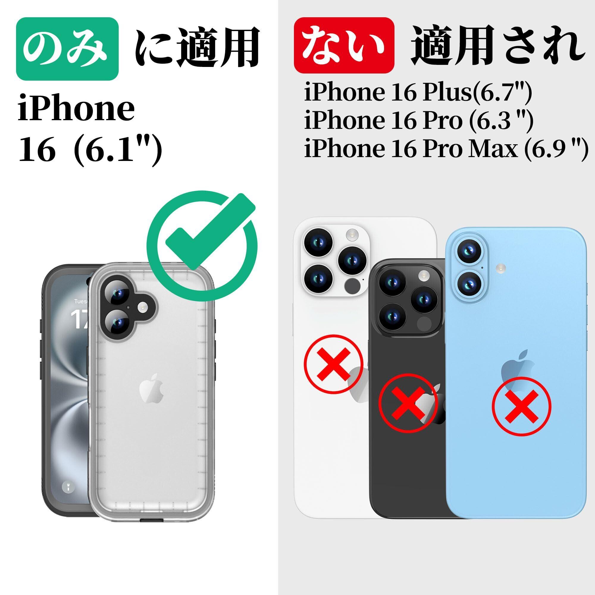 Cozycase トップクラス 2025モデル 大幅機能アップ【新機能】 iPhone 16 用 防水ケース - 完全防水 マット質感 IP68 防塵 3M 耐衝撃 米軍MIL規格 ストラップ付き 360度 両面 全面 海 お風呂 水中撮影 iPhone16 用 ケース - 頑丈 黄変なし 耐久性 人気 ワイヤレス充電 アイホン16 用 スマホカバー「2眼レフ-6.1インチ-黒·マット質感」 | kki