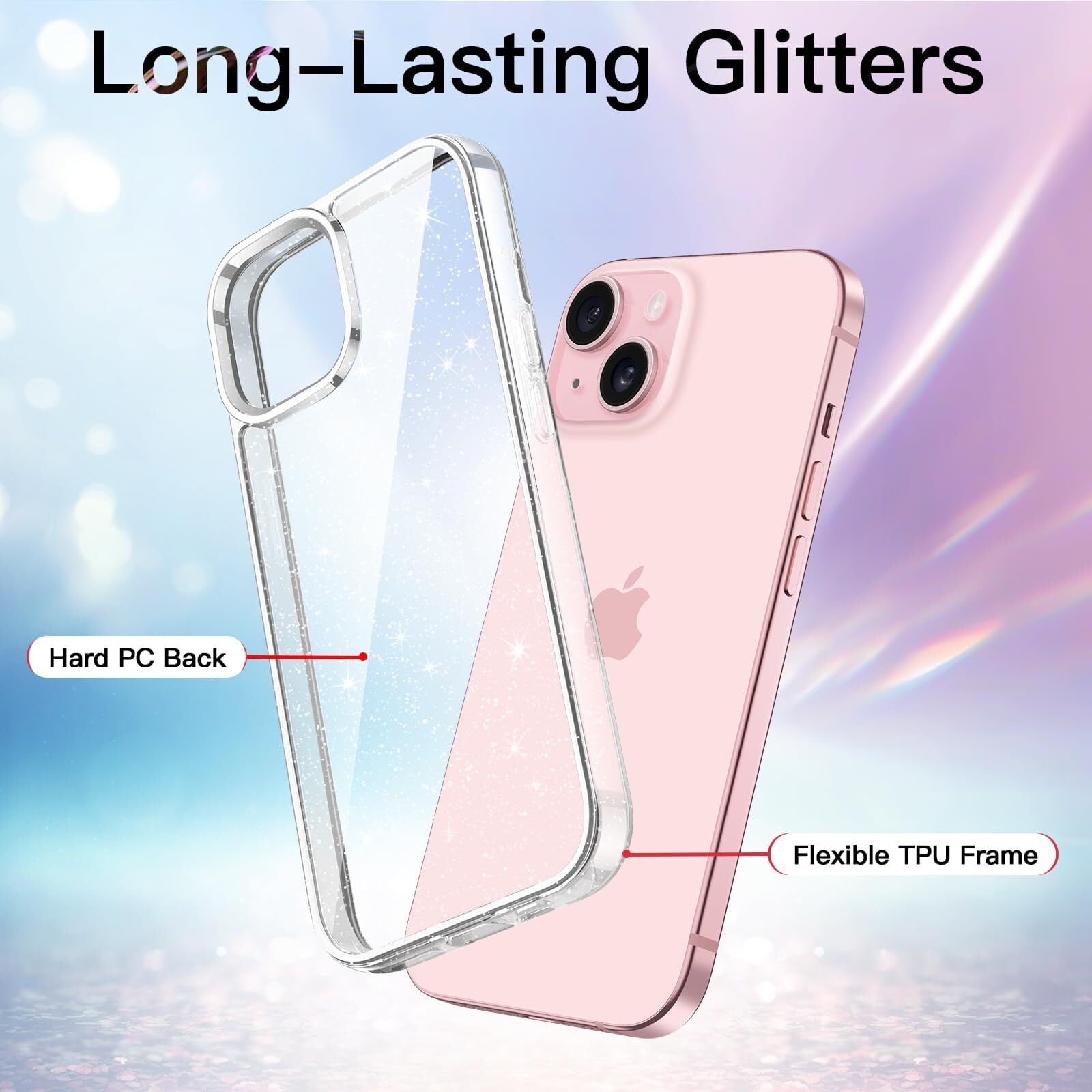 JETech iPhone 15 (6.1インチ専用) きらきら ケース ブリンブリン 衝撃吸収 バンパーカバー かわいい キラキラ 女性用 (クリア)