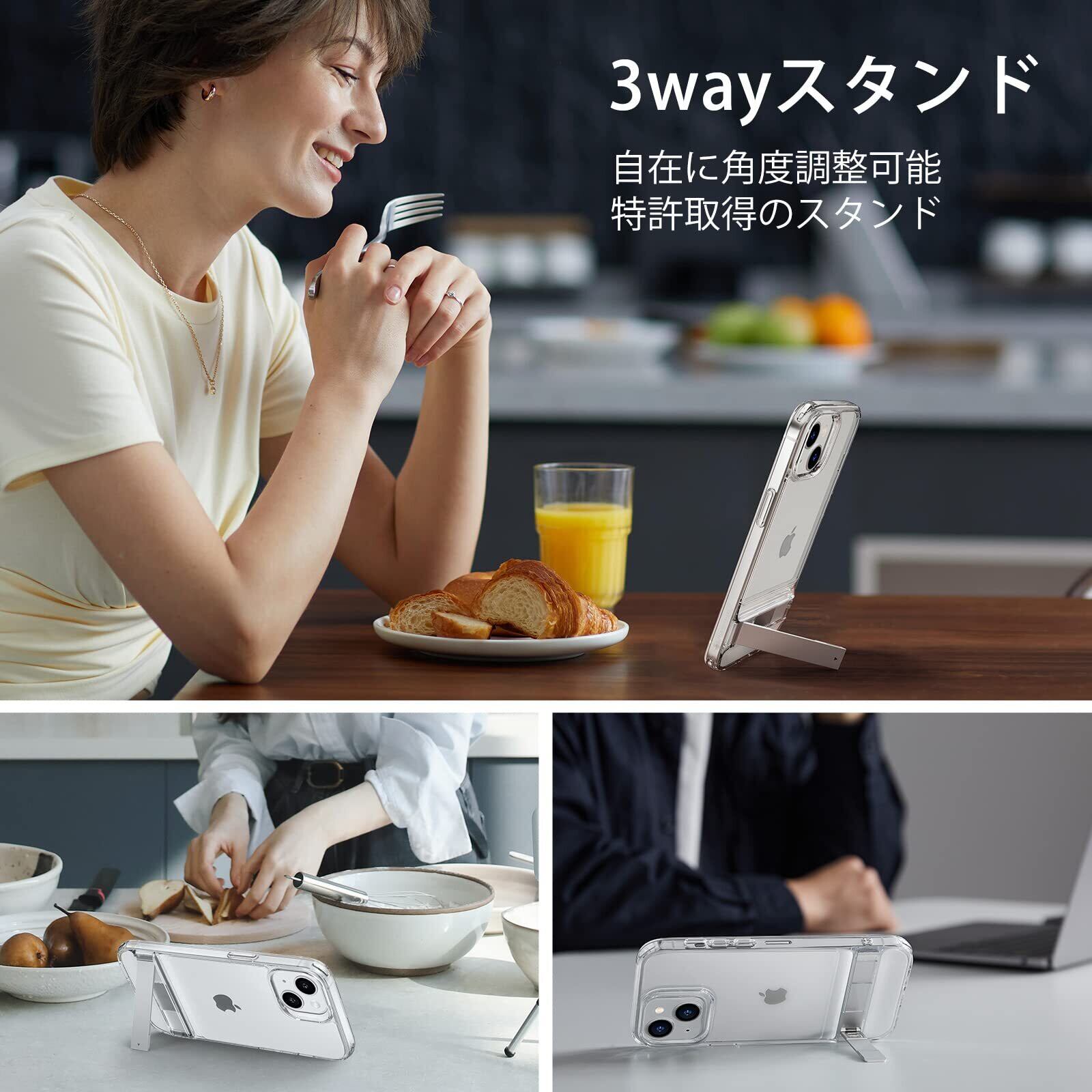 ESR iPhone 14 ケース iPhone 13 ケース メタルキックスタンドケース 3wayスタンドモード 米軍MIL規格の落下防止 ワイヤレス充電対応 スリム 取得済み スタンド付き 6.1インチ クリア | kki