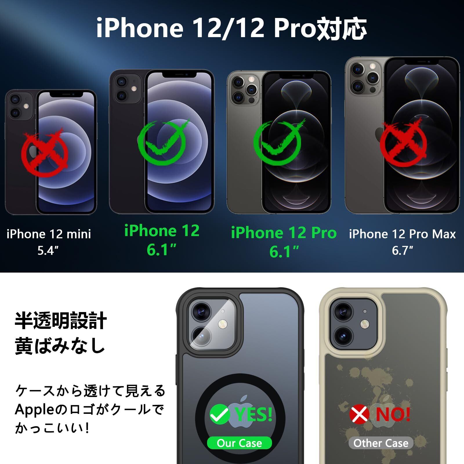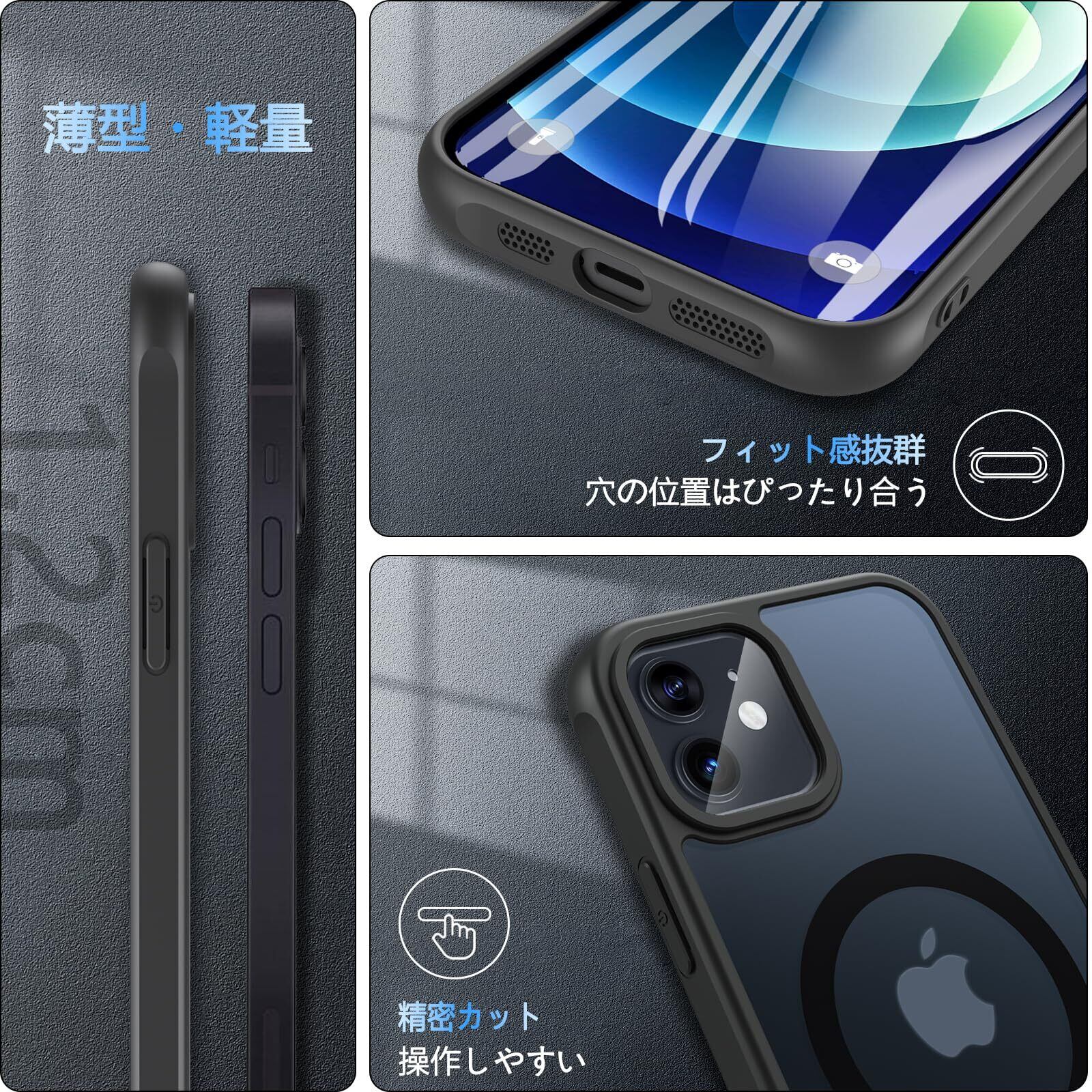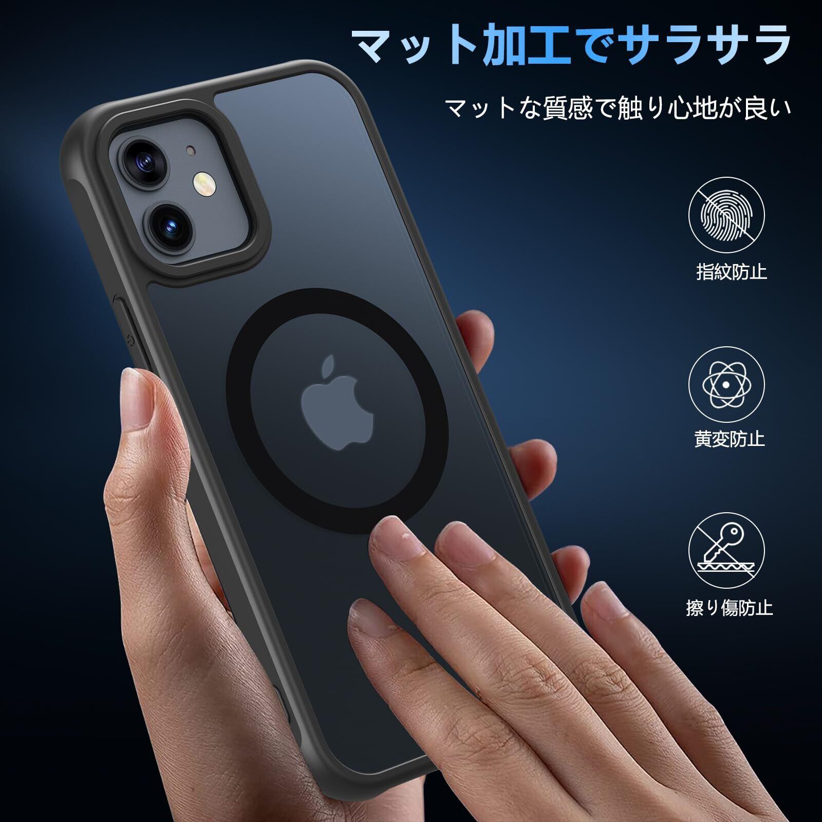 Hensinple iPhone 12/12 Pro ケース 【MagSafe対応・ガラスフィルム付き】 iPhone12 ケース 半透明 マット感 黄ばみなし いphone12 pro ケース 耐衝撃 滑り止め 指紋防止 黄ばみなし アイフォン12ケース マグネット搭載 マグセーフ対応 ストラップホール付き iPhone 12/12 Pro スマホケース 6.1インチ用 ブラック | kki