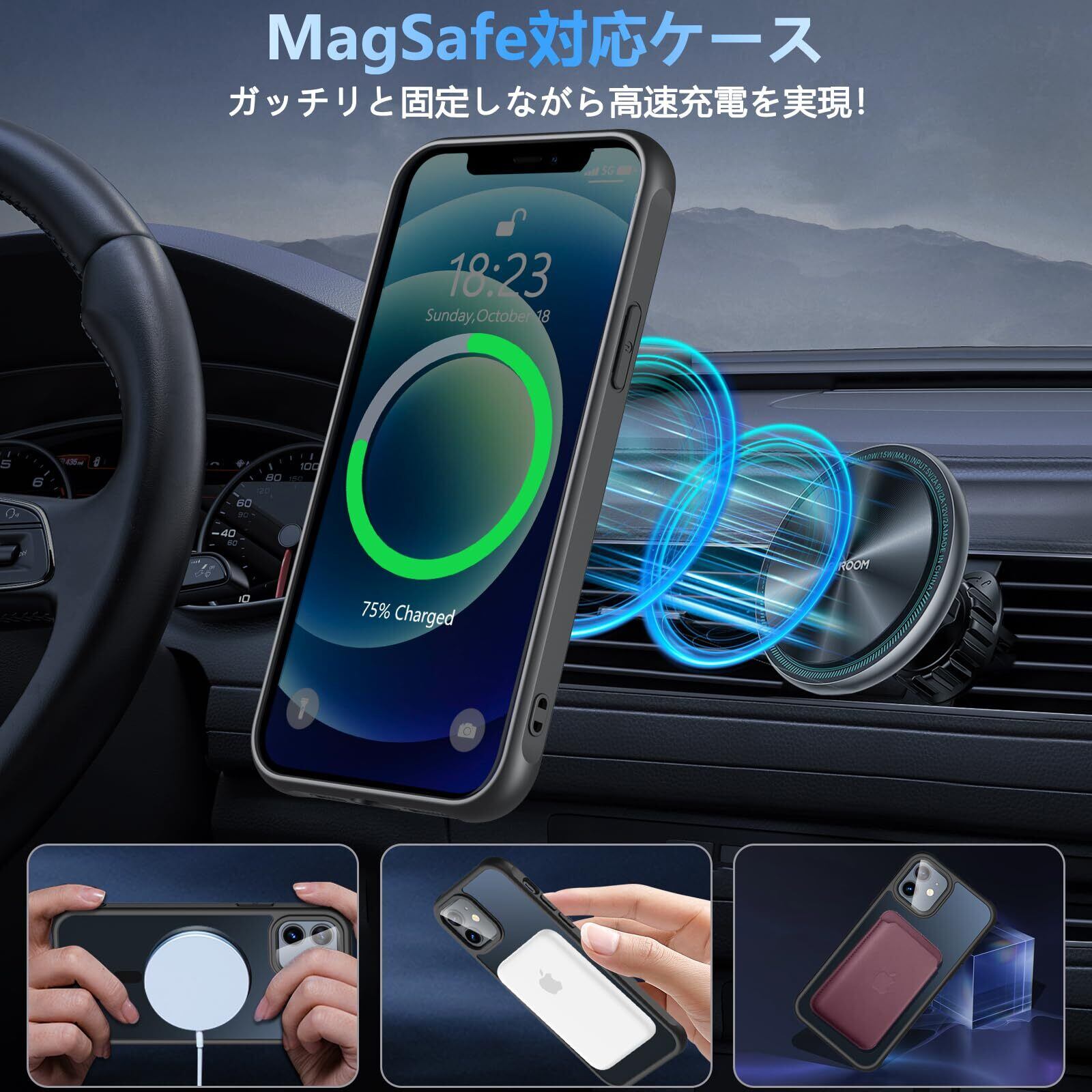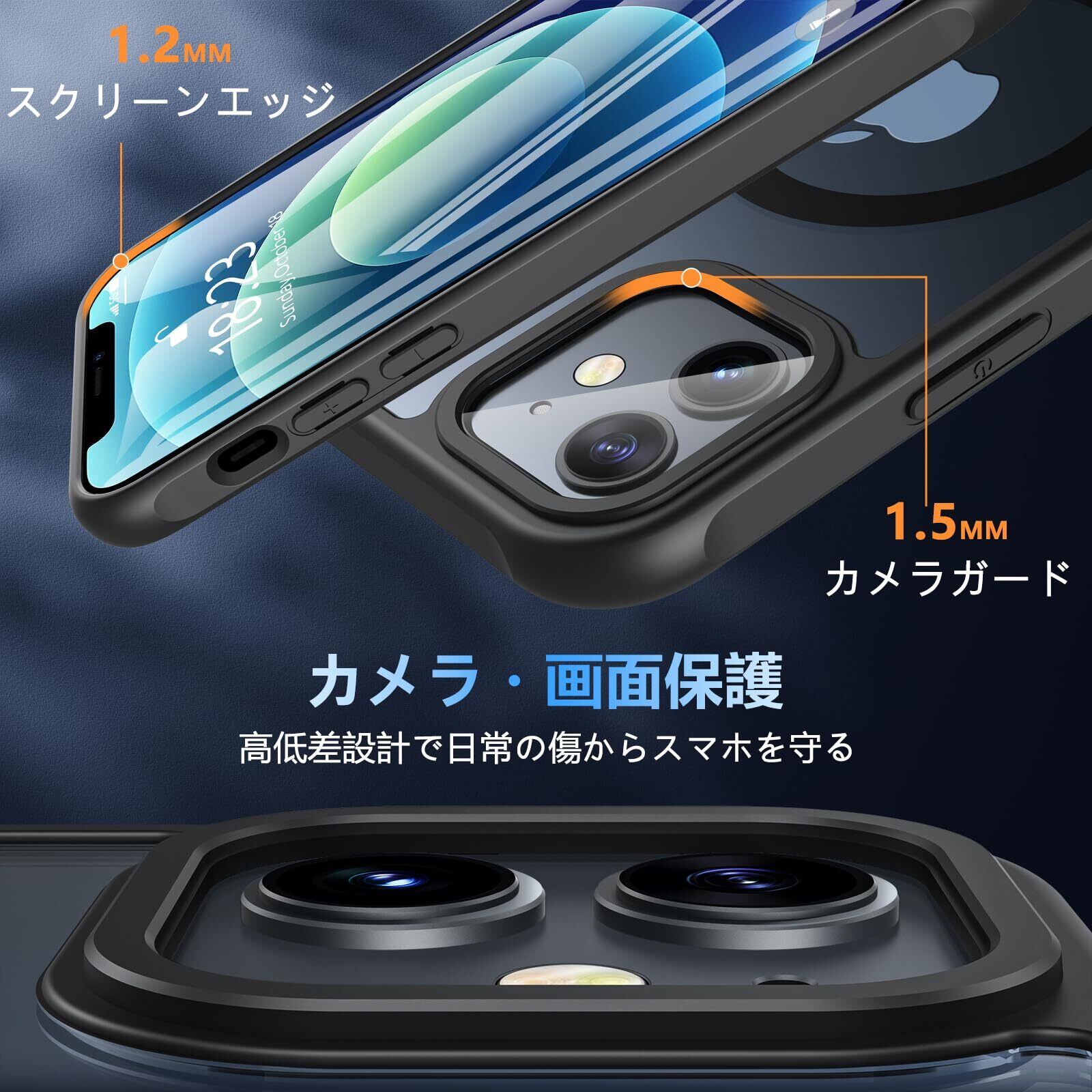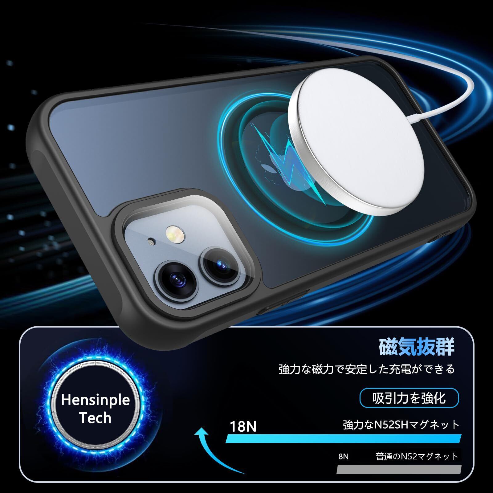 Hensinple iPhone 12/12 Pro ケース 【MagSafe対応・ガラスフィルム付き】 iPhone12 ケース 半透明 マット感 黄ばみなし いphone12 pro ケース 耐衝撃 滑り止め 指紋防止 黄ばみなし アイフォン12ケース マグネット搭載 マグセーフ対応 ストラップホール付き iPhone 12/12 Pro スマホケース 6.1インチ用 ブラック | kki