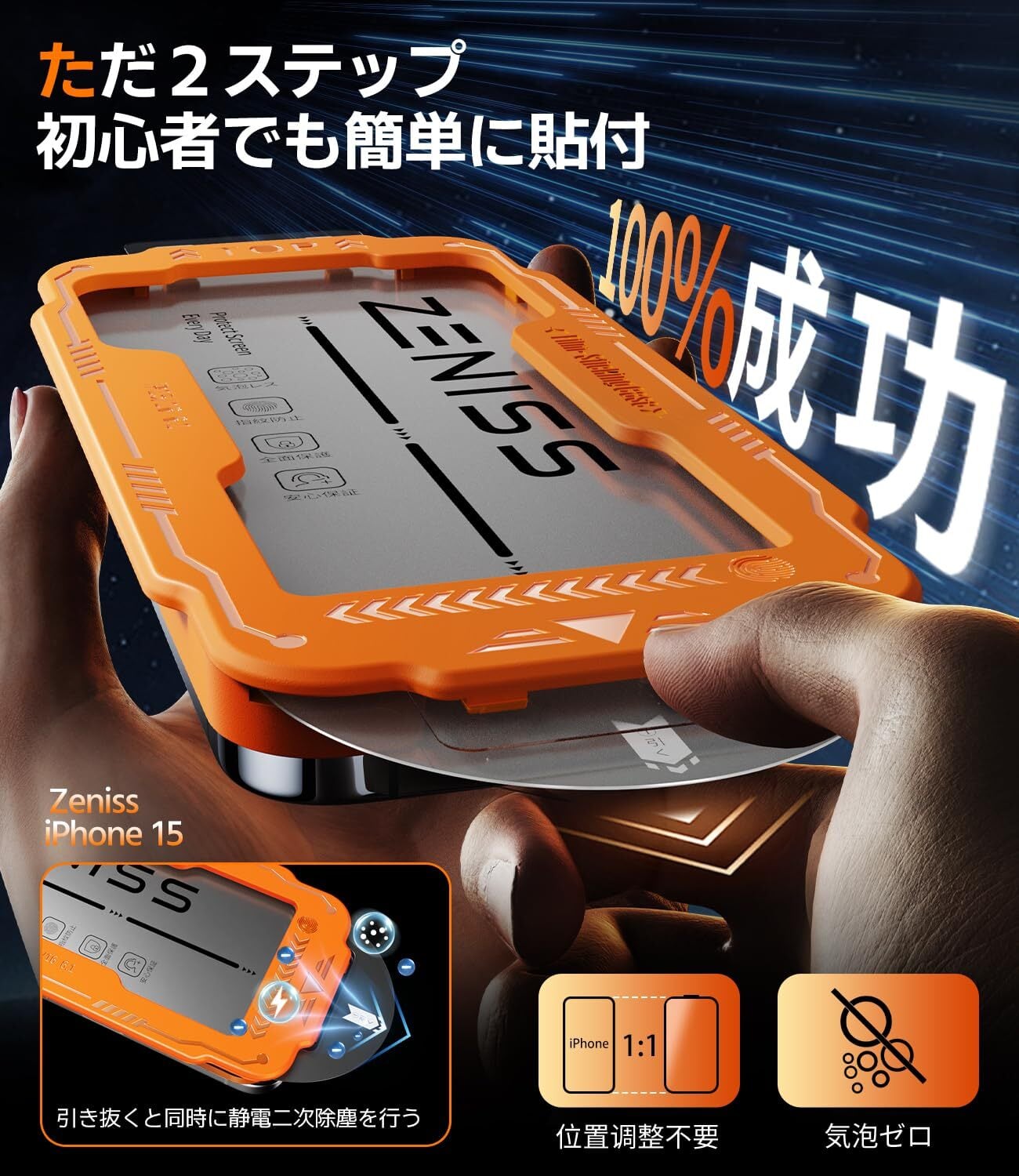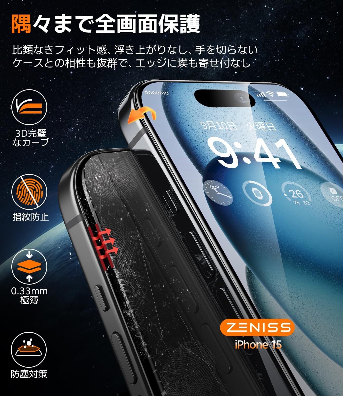 iPhone15用の ガラスフィルム に適合する 【米軍規格航空材料&革新的なガイド枠】2枚セット iphone15 フィルム 耐衝撃·硬度10H 全面保護 アイフォン15 保護フィルム 気泡レス 自動吸着 貼りやすい いphone15 スマホフィルム 超鮮明な画質 高光沢 ブルーライトカット 目に優しい 携帯フィルム 指紋防止 飛散防止 スクラッチ防止 強化ガラス 極細黒縁あり 6.1インチ | kki