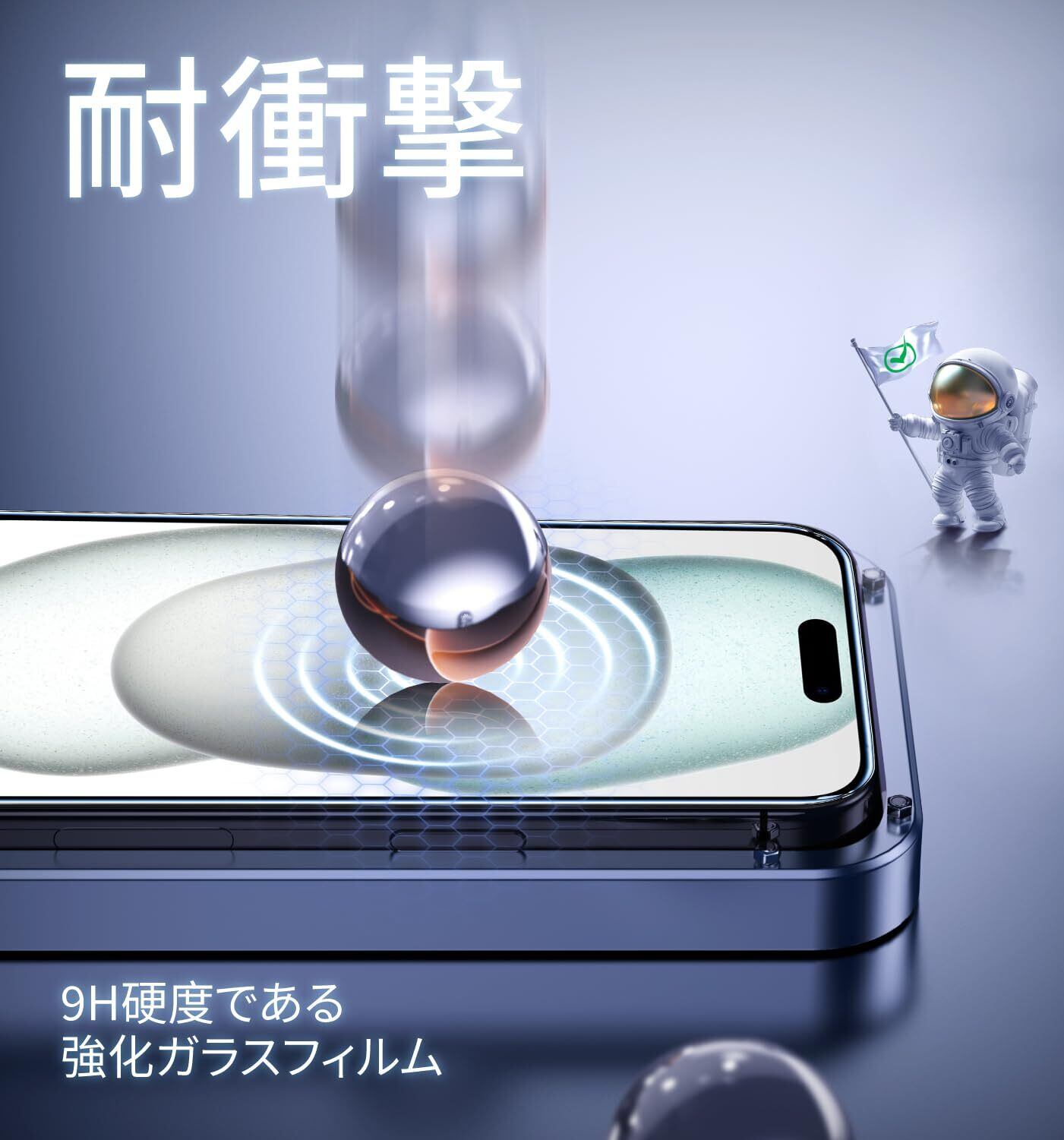 【光沢仕様】MAGIC JOHN 対応 iPhone 15 用 ガラスフィルム 2枚セット ガイド枠付き 自動吸着 貼りやすい iPhone15 用 フィルム 指紋防止 飛散防止 アイフォン15 用 保護フィルム スクラッチ防止 黒縁あり | kki