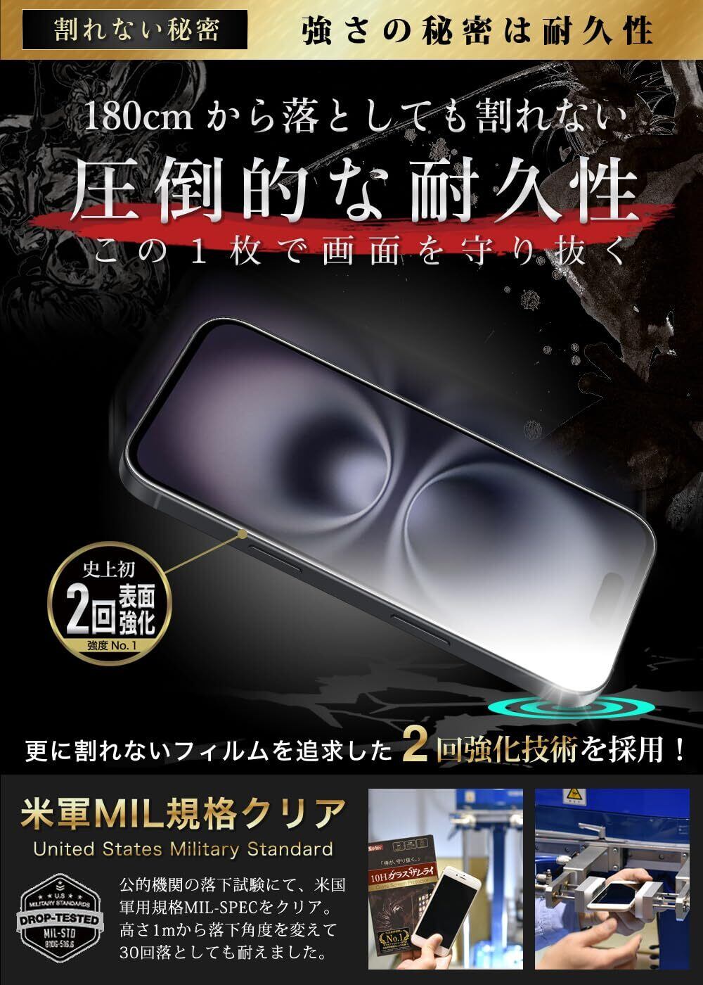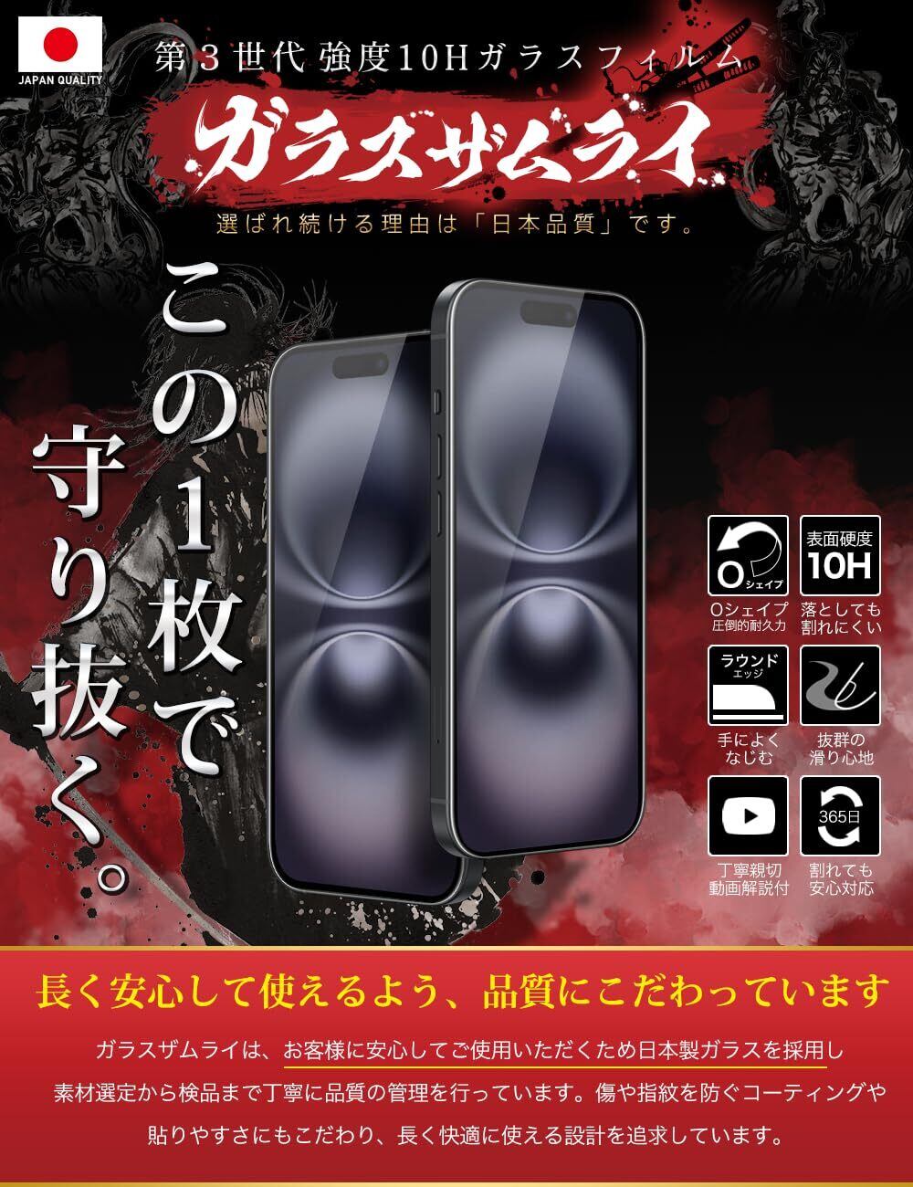 ガラスザムライ iPhone 16 用 ガラスフィルム iPhone 15 用 硬度 10H 国産ガラス素材 強化ガラス 保護フィルム 米軍MIL規格 いPhone 386-k/410-k | kki