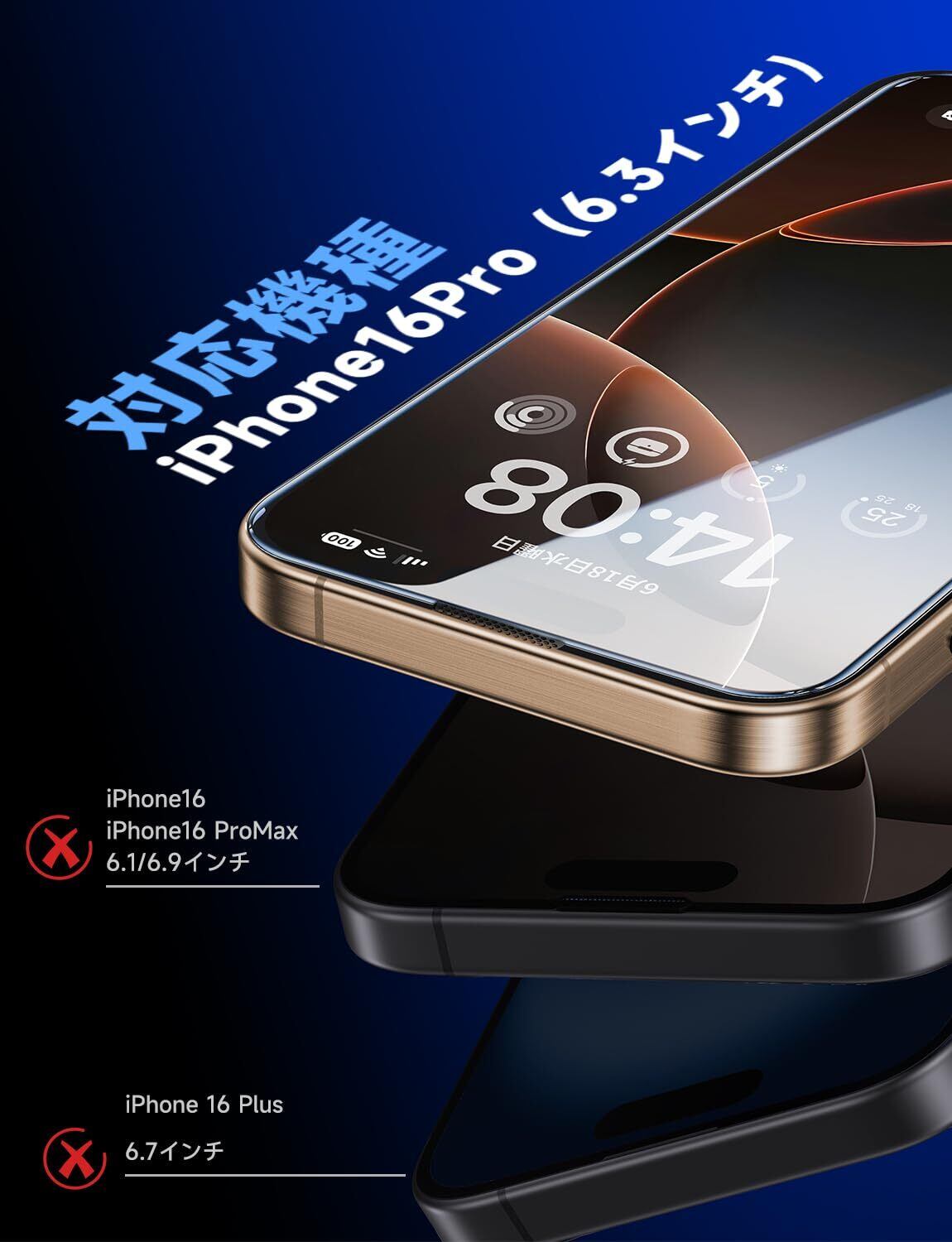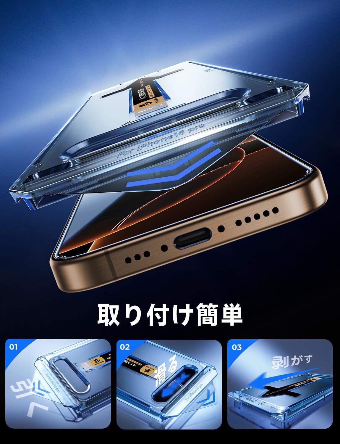 【光沢】 MAGIC JOHN 対応 iPhone 16 Pro ガラスフィルム 2枚セット ガイド枠一体式 貼りやすい ズレなく 気泡レス 高透過率 触り心地良い 黒縁あり