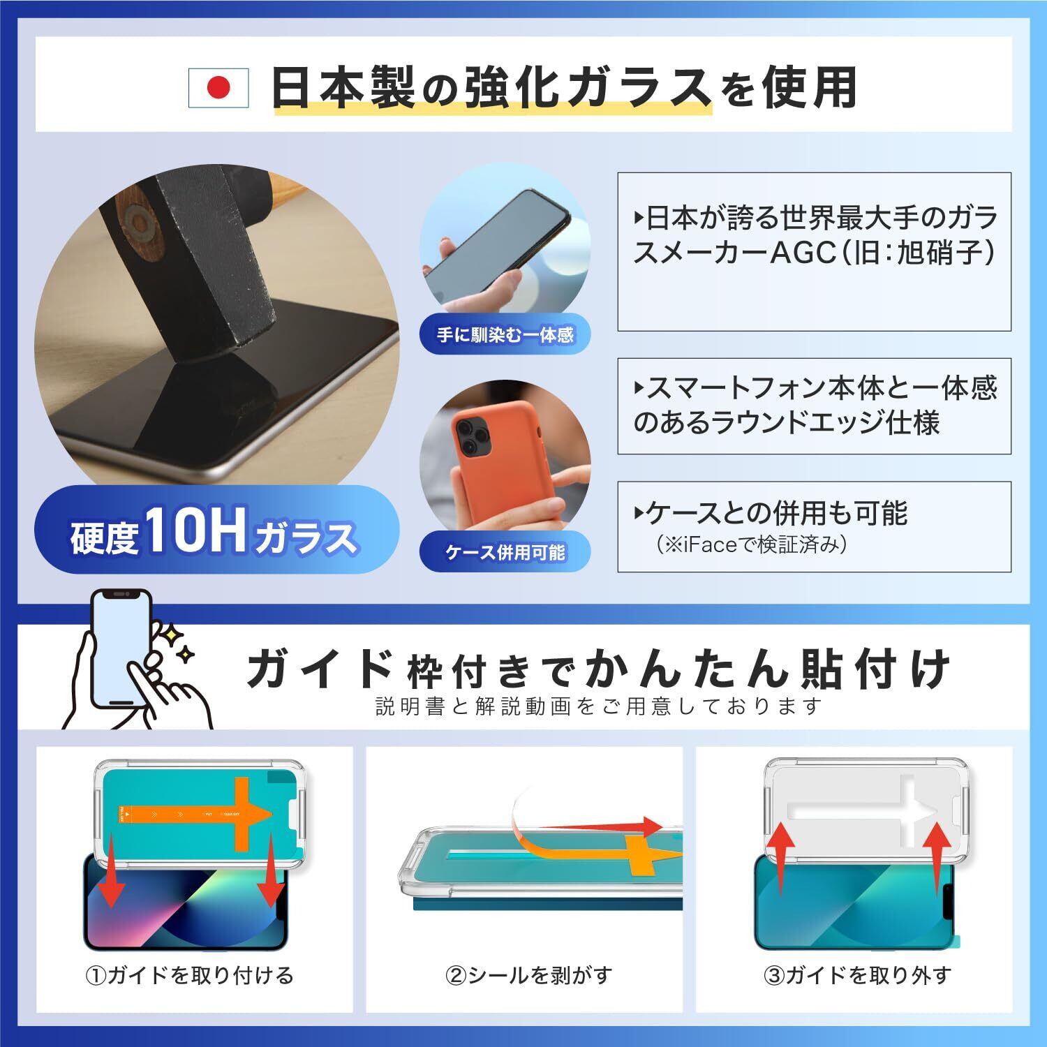 Agrado ガラスフィルム iPhone14 用 ブルーライトカット 保護フィルム いphone14 10H 強化ガラス