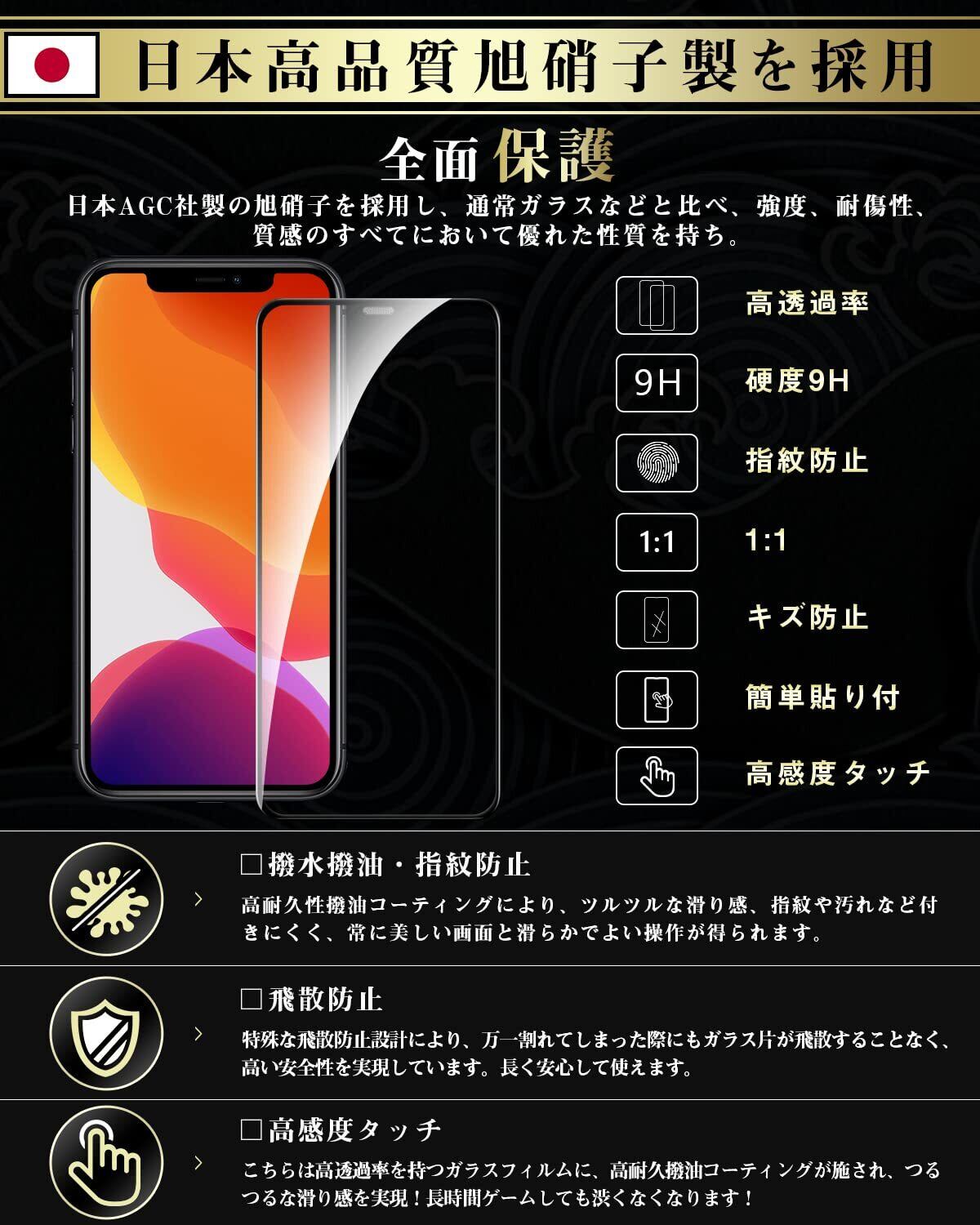 Boesklenn 対応 iPhone11 ガラスフィルム 2枚 iPhone XR フィルム【防塵設計/旭硝子製/ガイド枠付き】硬度9H/耐衝撃/高光透過率 アイフォン 11/ XR 強化ガラス 液晶保護フィルム(6.1インチ) | kki