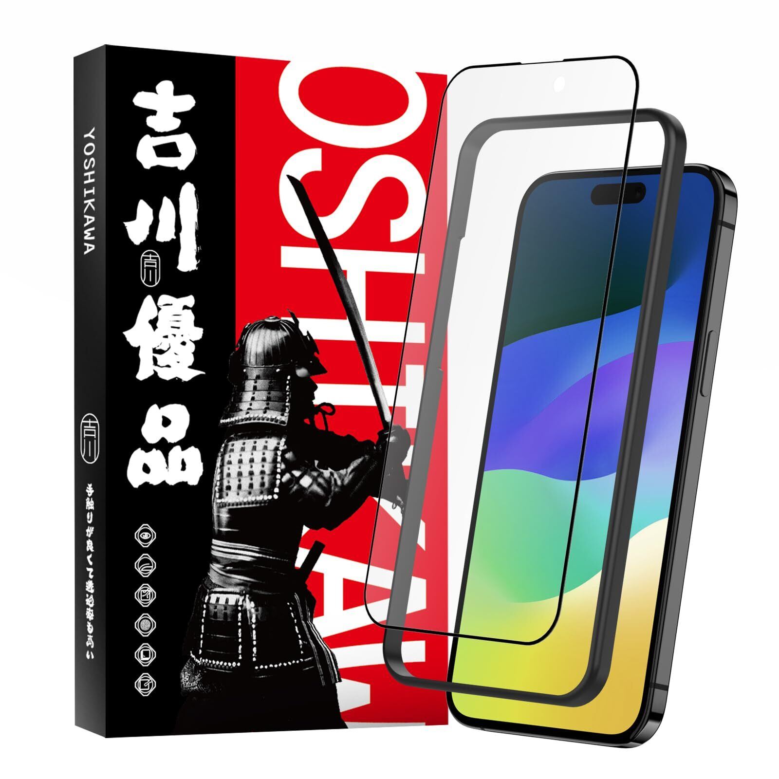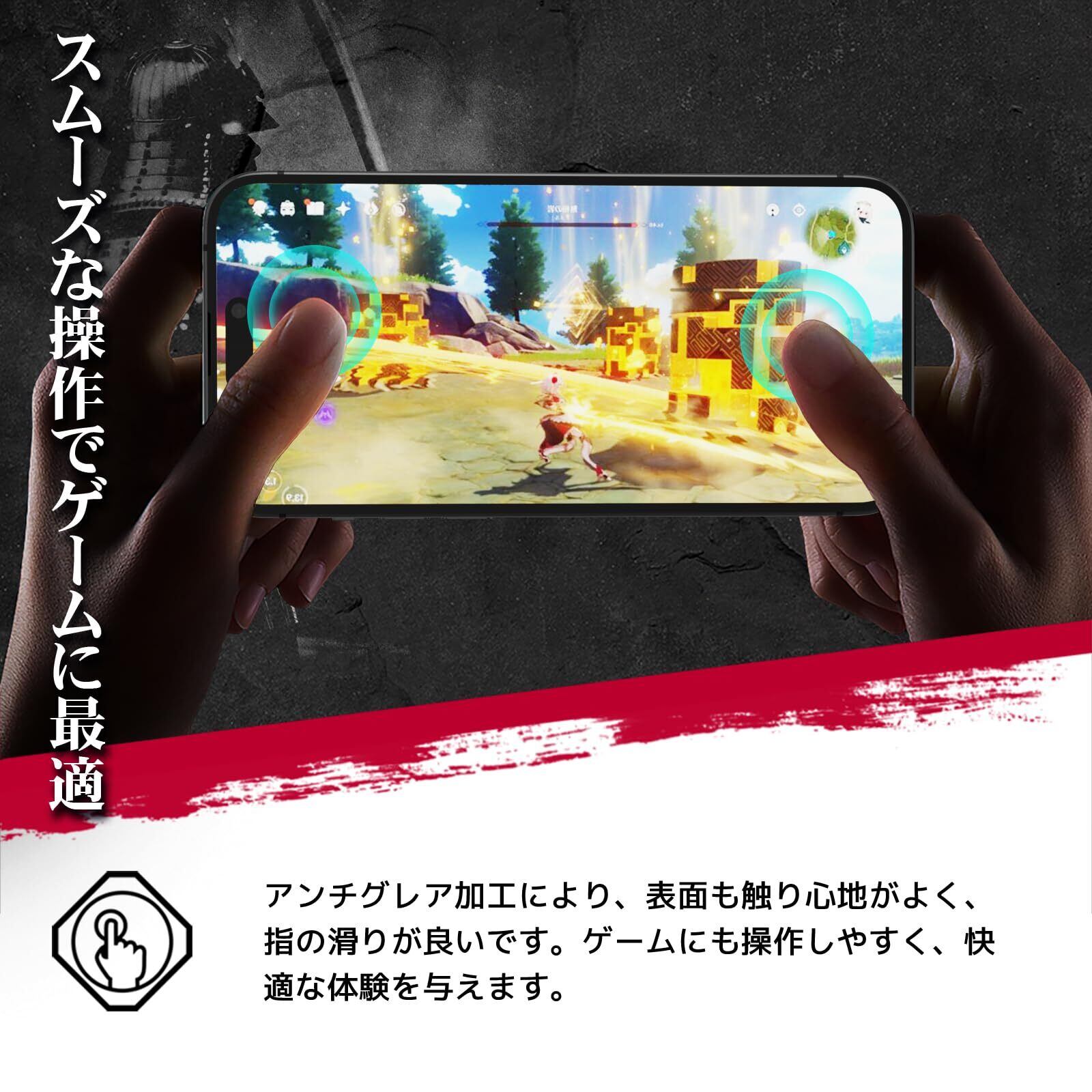吉川優品 Phone 16 / Phone 15 用 アンチグレアガラスフィルム ゲーム向け さらさら 全面 保護フィルム ガイド枠付き 旭硝子製 強化ガラス 指紋防止 反射防止 ケースに干渉せず 高硬度9H 気泡無し 貼り付け簡単 6.1インチ | kki