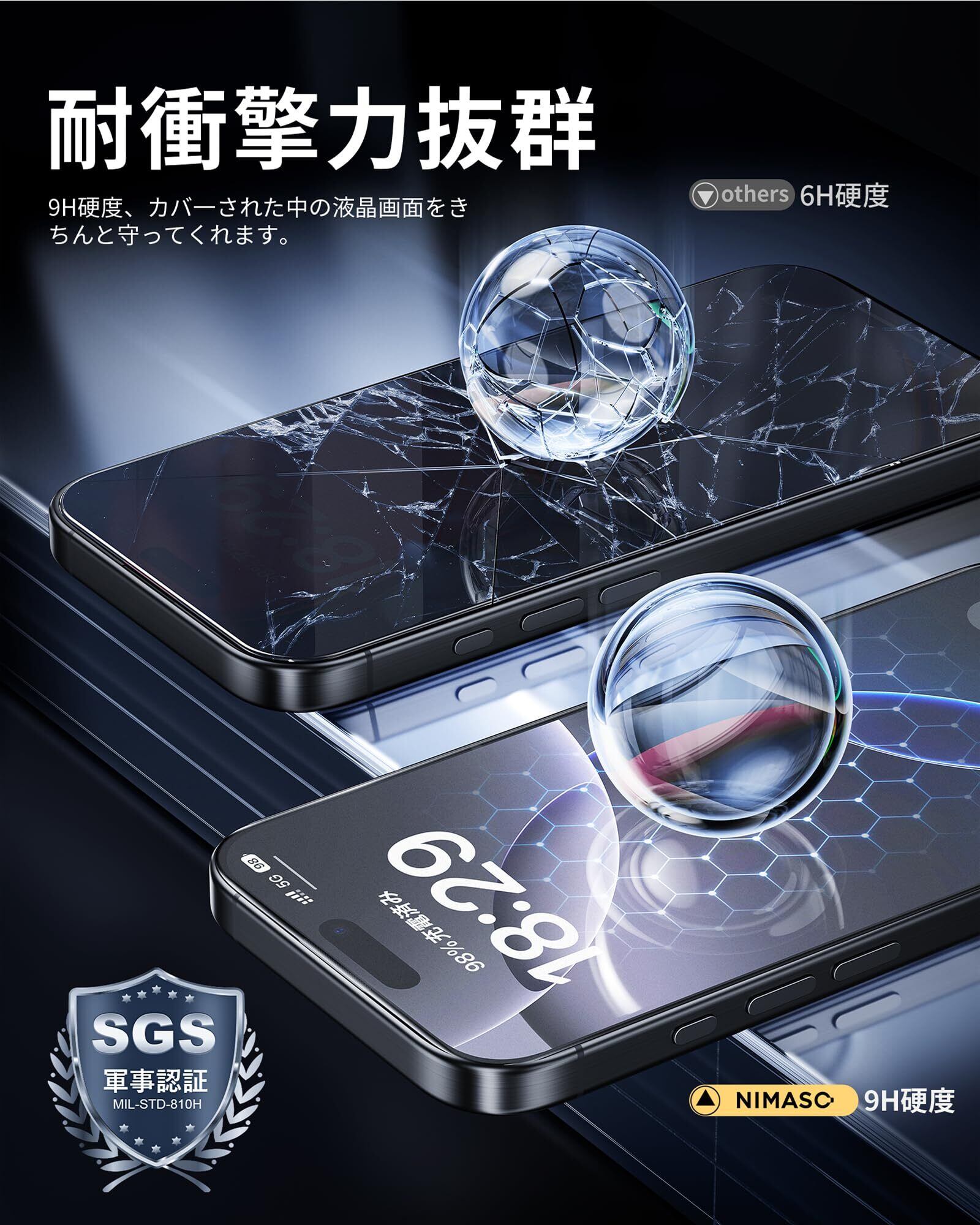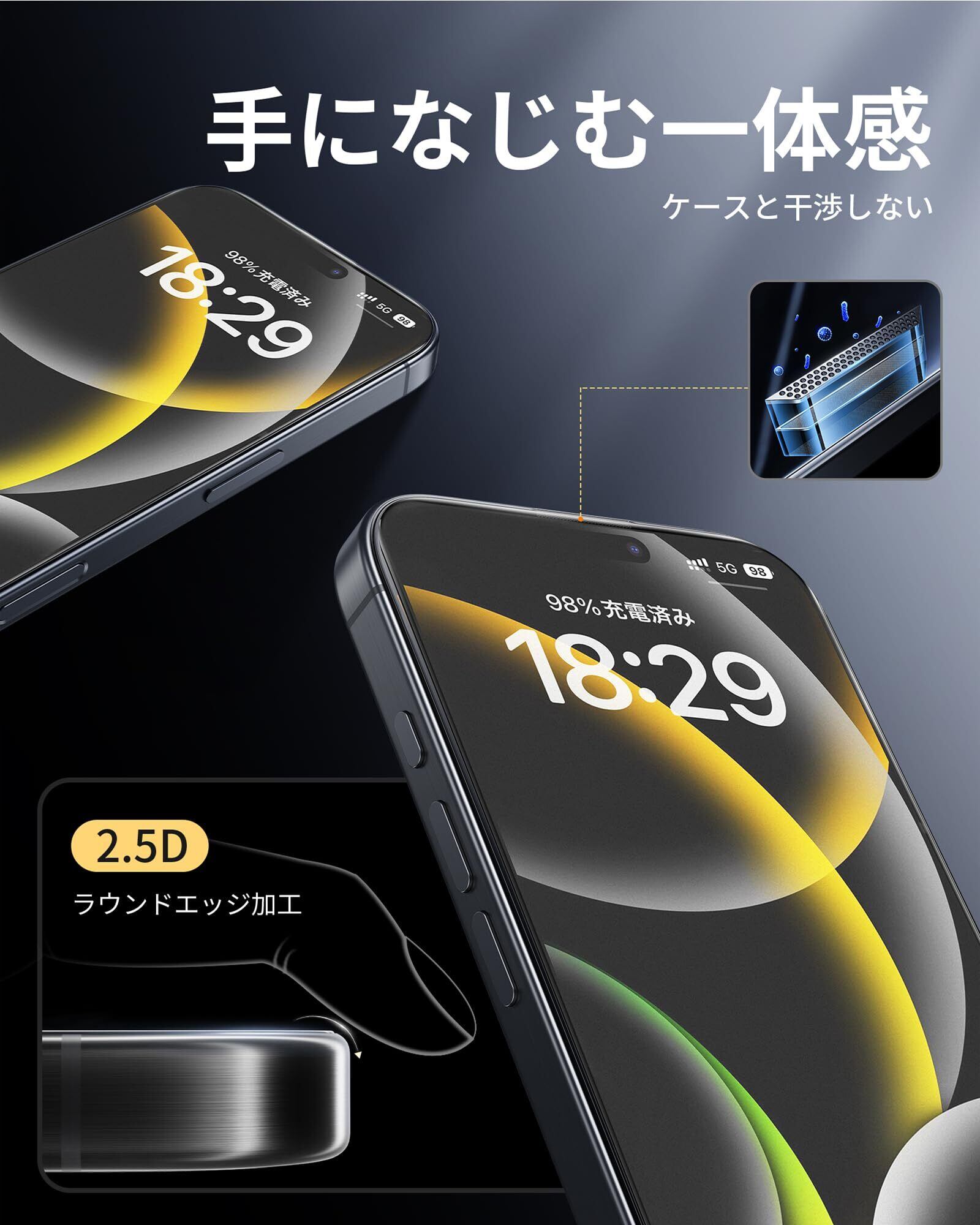 NIMASO アンチグレア iPhone 16 Pro 用 ガラスフィルム 全面保護 反射防止 黒縁あり 指紋防止 自動除塵 サラサラ ゲームフィルム 保護フィルム 強化ガラス 2枚セット アイフォン16プロ(6.3インチ)対応 DSP24G1415 | kki