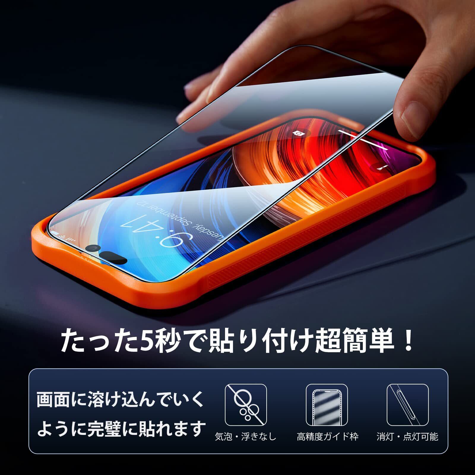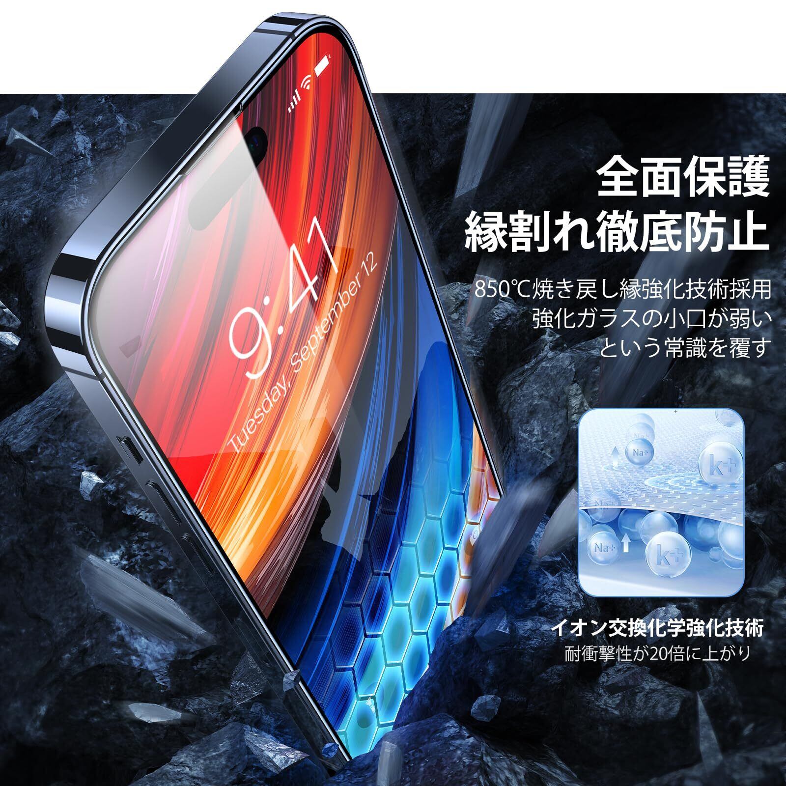 TORRAS iPhone 15 用/iPhone14Pro 用 ガラスフィルム 航空宇宙材料 全面保護 フィルム 十倍強化極細黒縁 さらさら 貼り付け簡単 指紋防止 9H越え 耐衝撃 2枚 アイフォン15 /14 プロ 用 保護フィルム GlassGo Series | kki