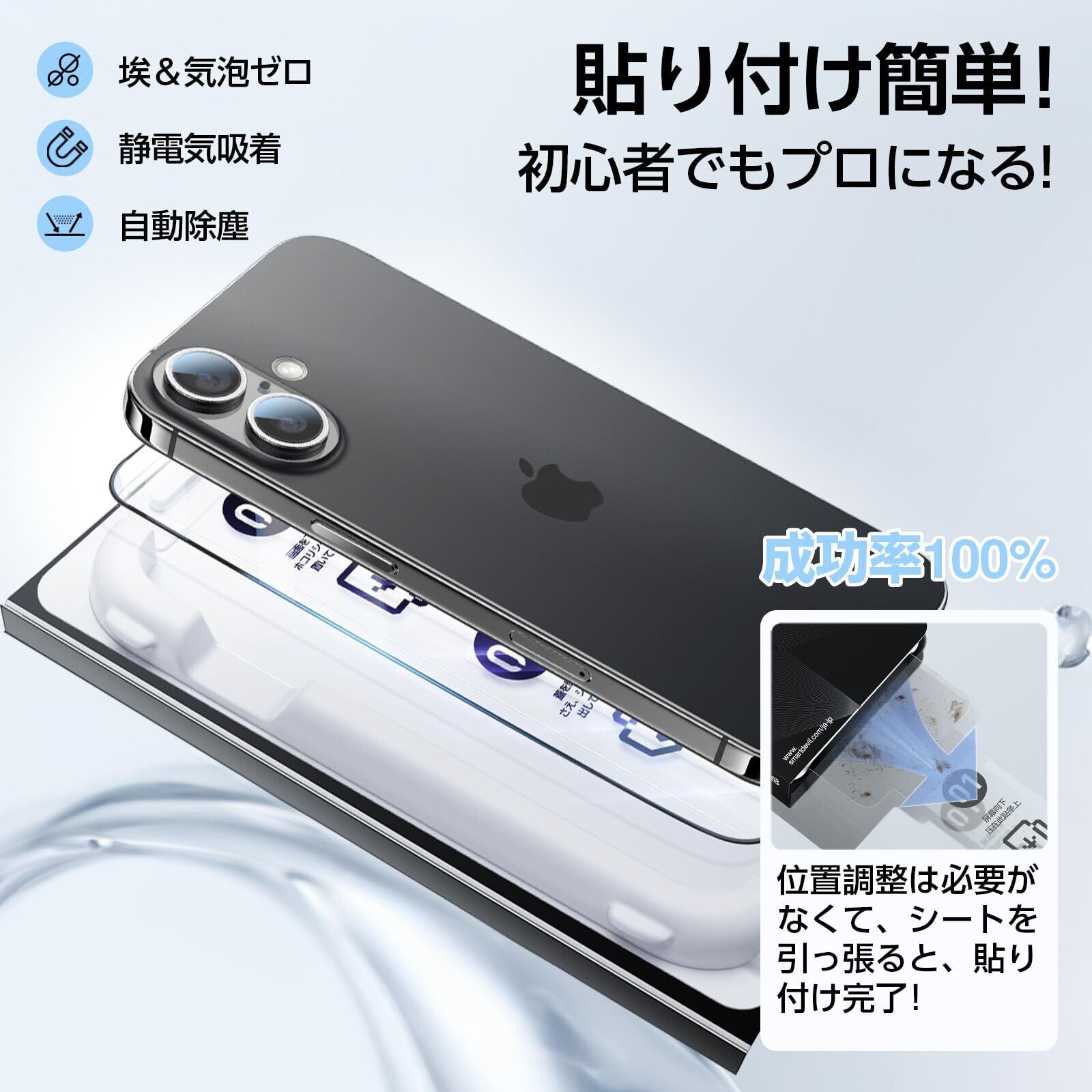 SmartDevil iPhone 16 用 ガラスフィルム 一体式ガイド枠付き 簡単貼り付け HDクリア 位置ずれない 気泡ゼロ 9H硬度 指紋軽減 ラウンドエッジ加工 光沢タイプ ツルツル いphone16 保護フィルム 2枚セット | kki