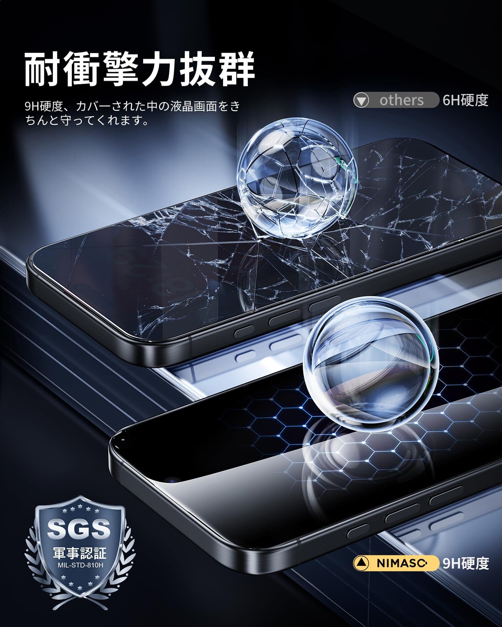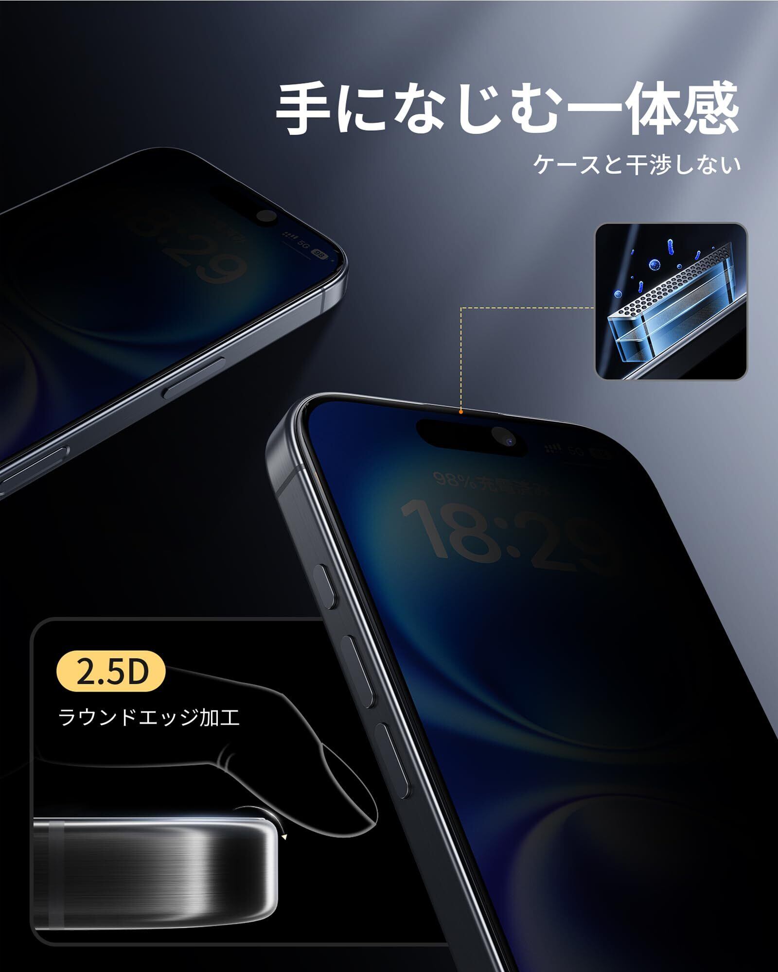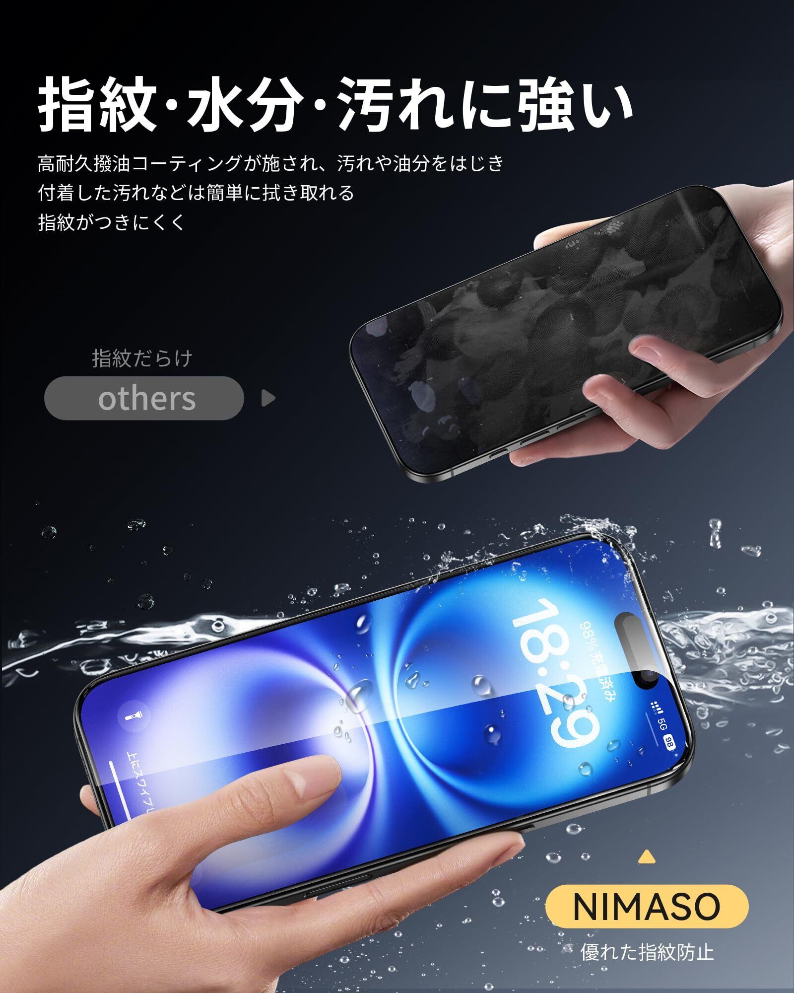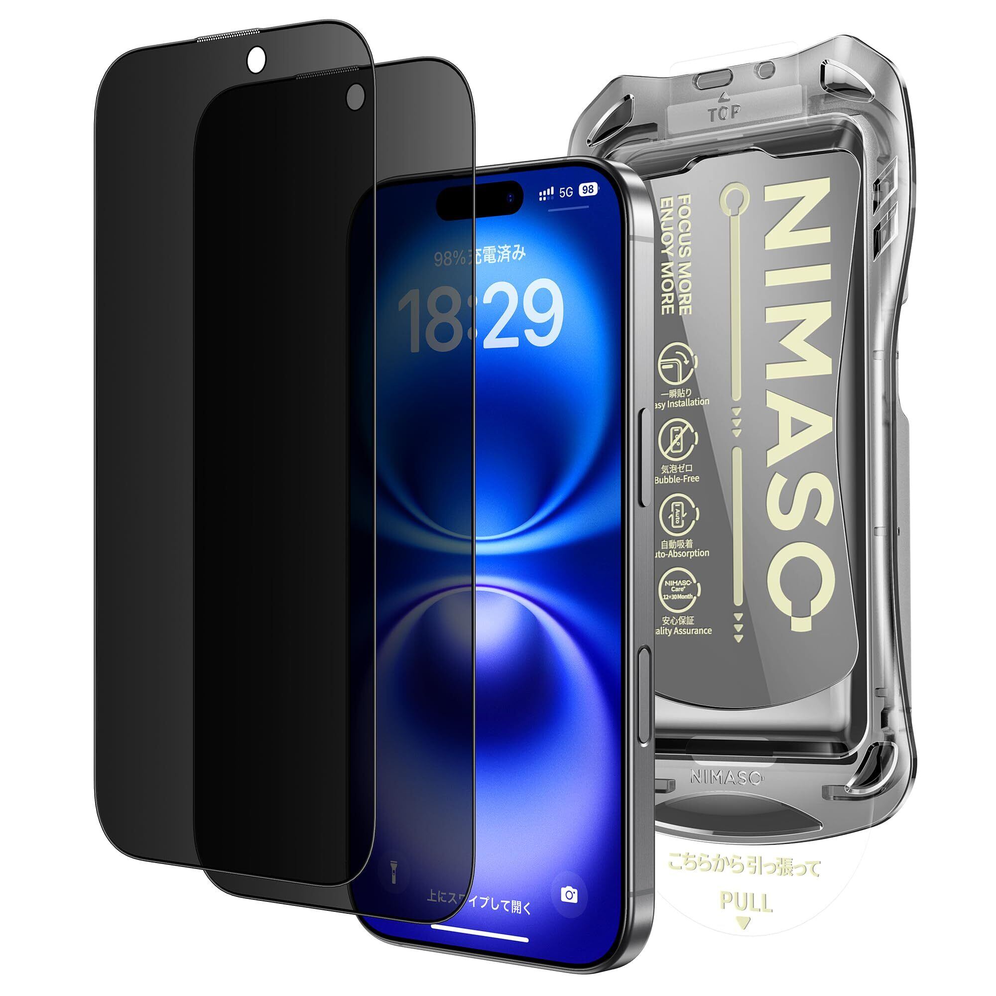 NIMASO 覗き見防止 iPhone 16 / iPhone 15 用 ガラスフィルム 全面保護 黒縁あり 自動除塵 強化ガラス 貼り付け簡単 保護フィルム 指紋防止 ガイド枠付き 2枚セット アイフォン16/アイフォン15 (6.1インチ) 対応 DSP24G1359 | kki