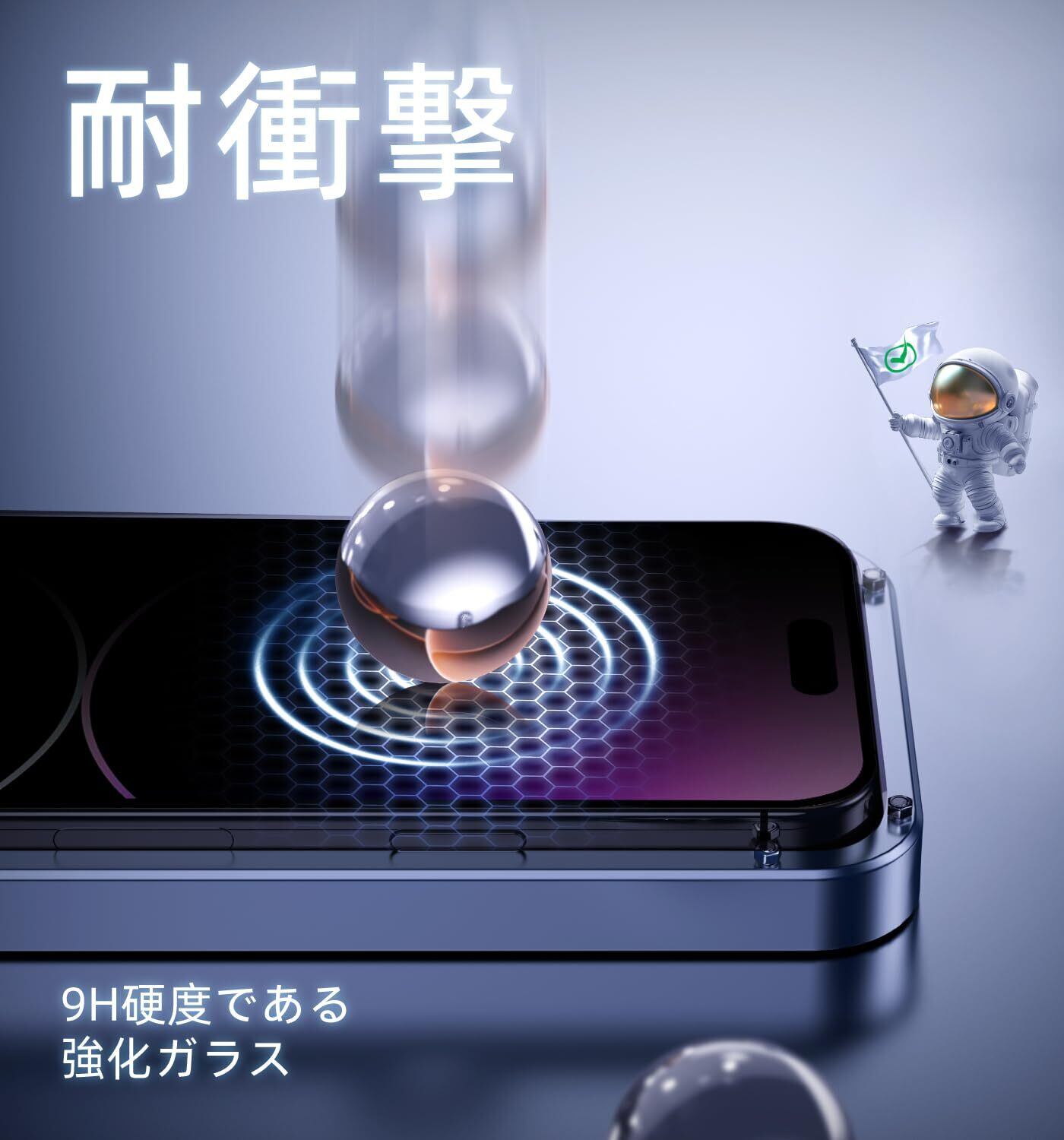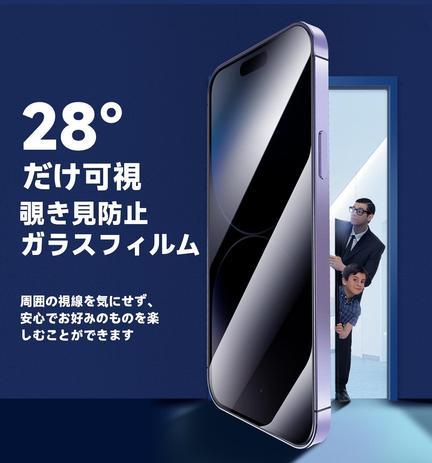 【覗き見防止】MAGIC JOHN 対応 iPhone 14 Pro 用 ガラスフィルム 2枚セット ガイド枠一体式 貼りやすい 気泡レス 9H硬度 強化ガラス