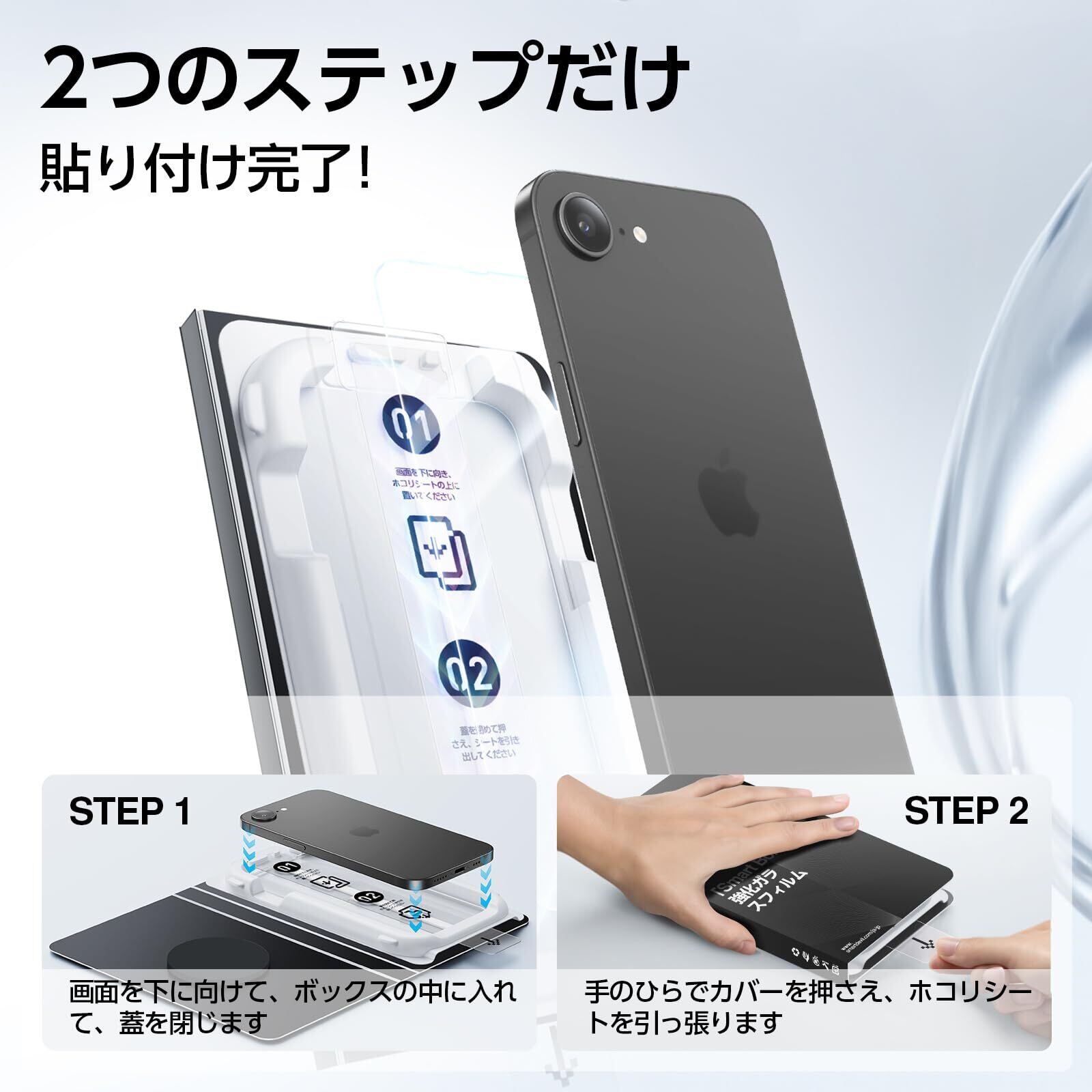 SmartDevil iPhone 16e/14/13/13Pro 用 ガラスフィルム 一体式ガイド枠付き 簡単貼り付け HDクリア 位置ずれない 気泡ゼロ 9H硬度 指紋軽減 ラウンドエッジ加工 光沢タイプ ツルツル いphone16e 保護フィルム【SmartPull Box】 2枚セット | kki