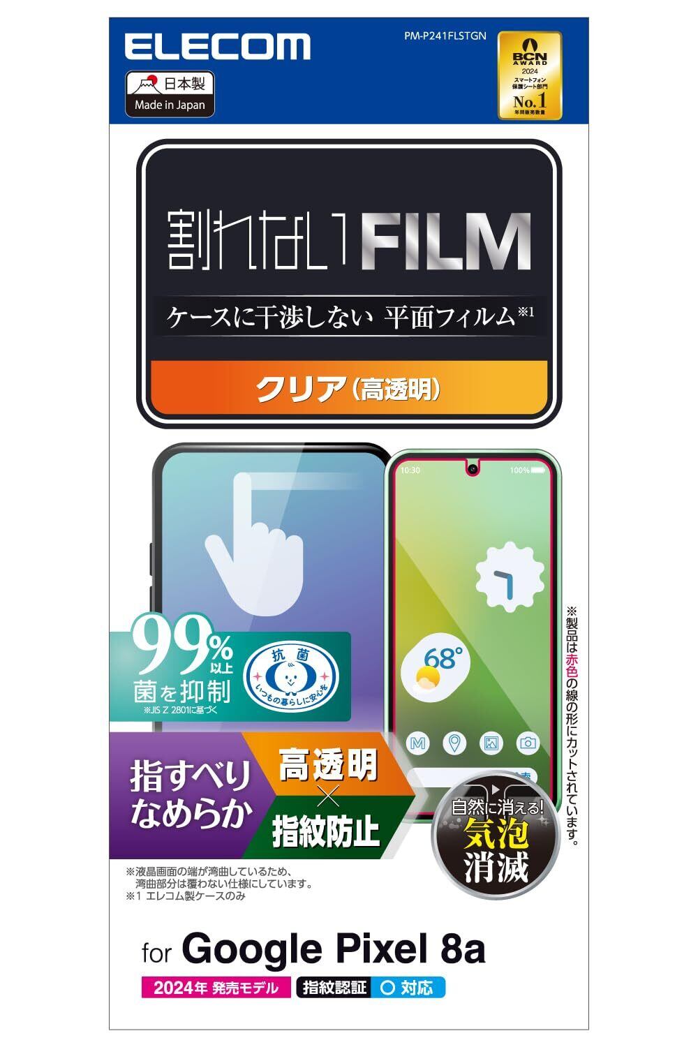 エレコム Google Pixel 8a フィルム 指紋認証 対応 光沢 グレア 指紋防止 気泡ゼロ 貼り直し可能 自己吸着 PM-P241FLSTGN