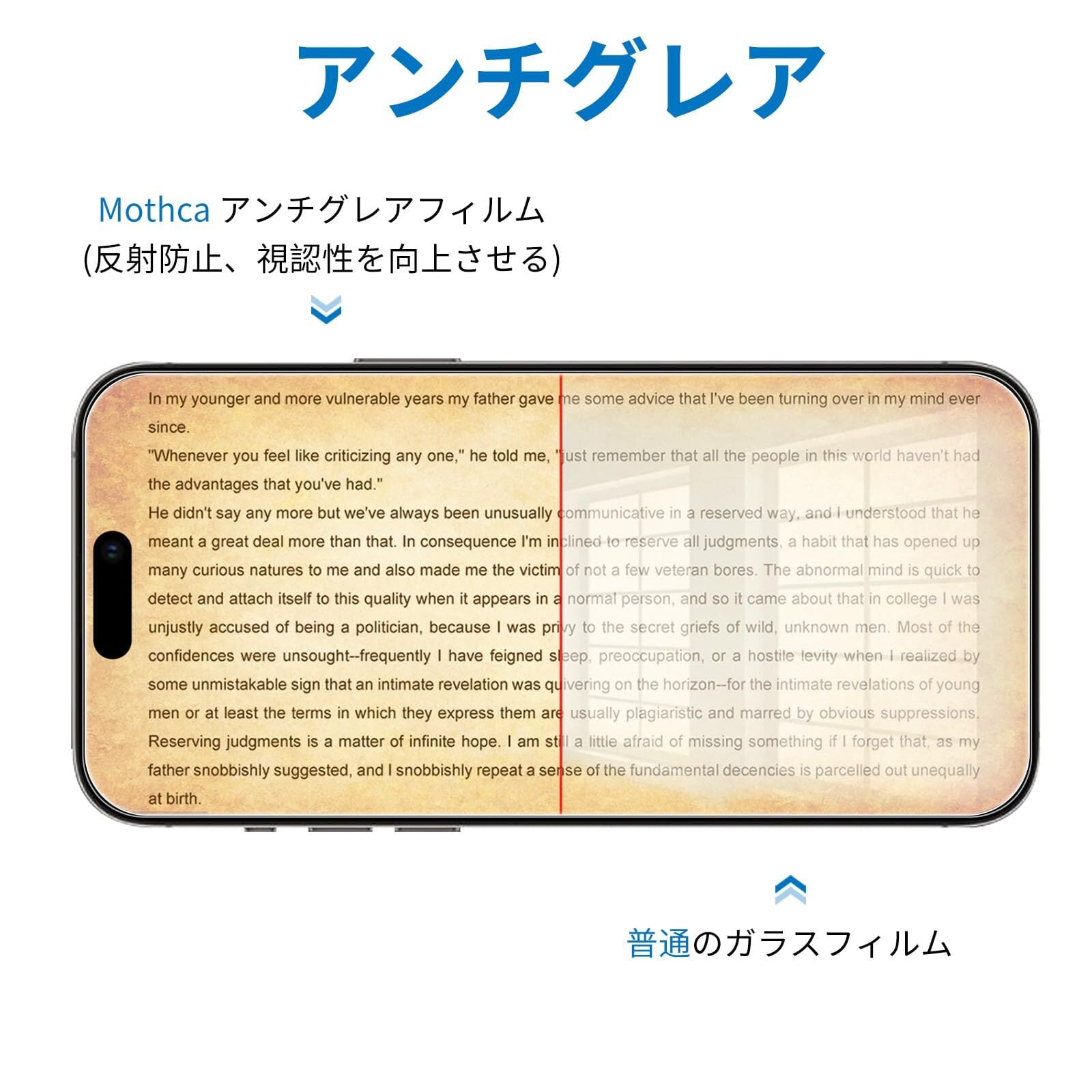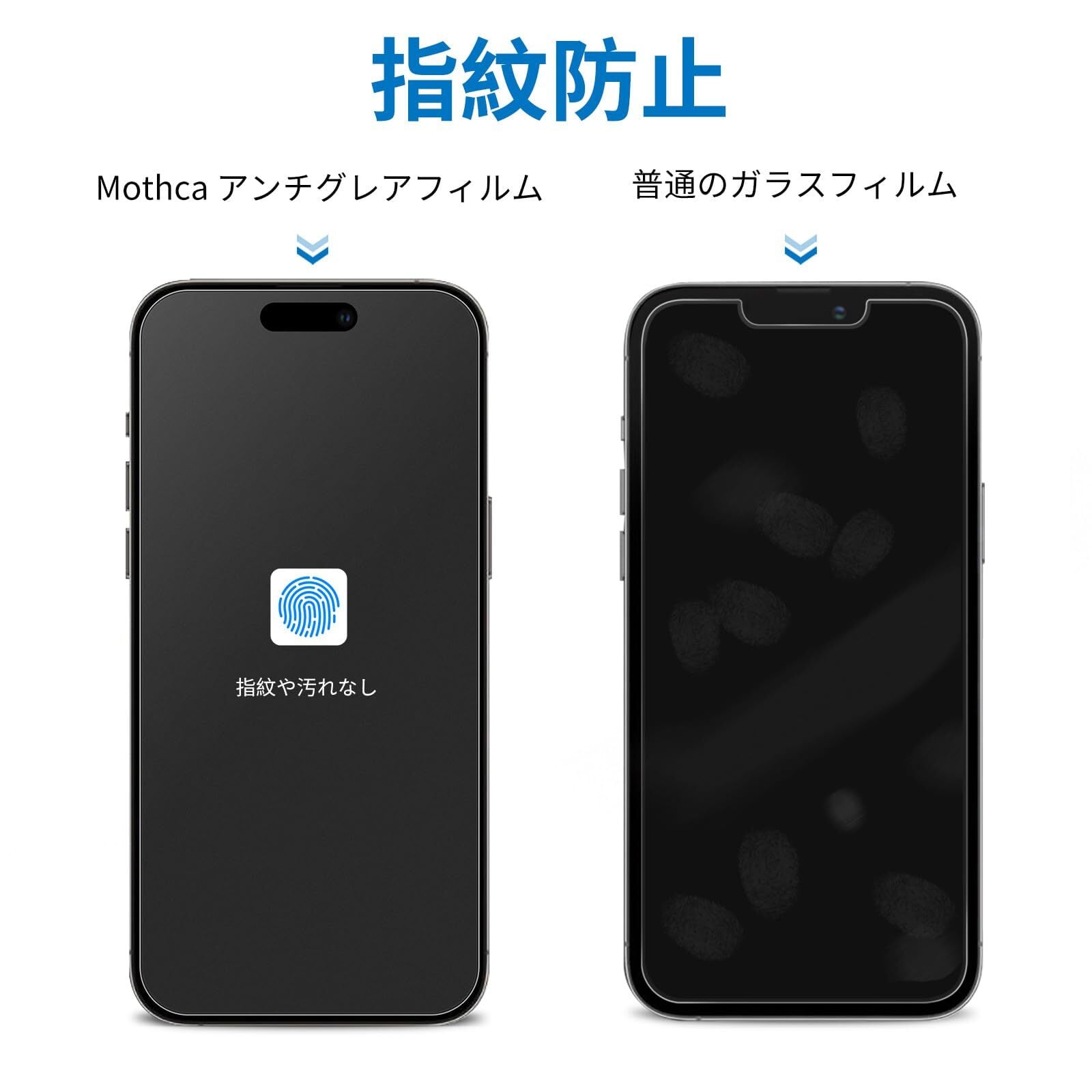 Mothca アンチグレア iPhone 15 Pro対応 ガラスフィルム 保護フィルム 強化ガラス サラサラ タッチ感 ゲームフィルム ガイド枠付き 液晶 日本旭硝子製素材 指紋防止 反射防止 硬度9H 飛散防止 キズ防止 衝撃吸収 撥油性 疎水 アンチグレアフィルム 6.1インチ | kki