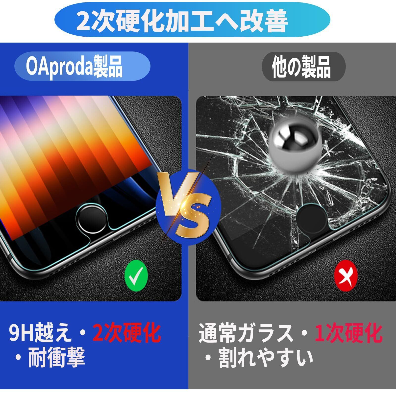 【SE3 SE2 専用】OAproda ガラスフィルム iPhone SE 第3世代 第2世代 iPhone SE3 SE2 用 液晶画面 保護フィルム 第三世代 第二世代 4.7inch 【浮きなし/9H硬度/ガイド付き】2枚セット | kki