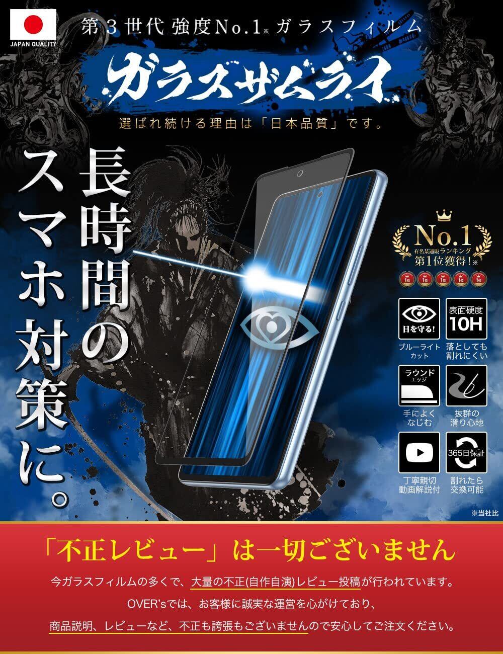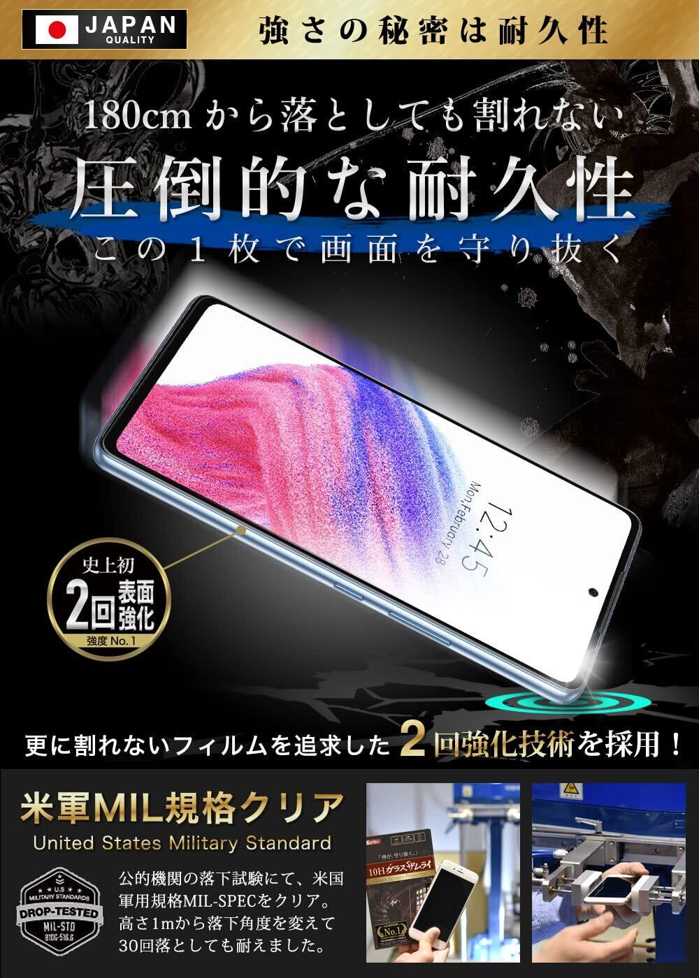 ガラスザムライ Galaxy A53 用 ガラスフィルム ブルーライトカット SC-53C 用 SCG15 用 全面保護 硬度 10H 強化ガラス 保護フィルム 米軍MIL規格 353-blue-3d | kki