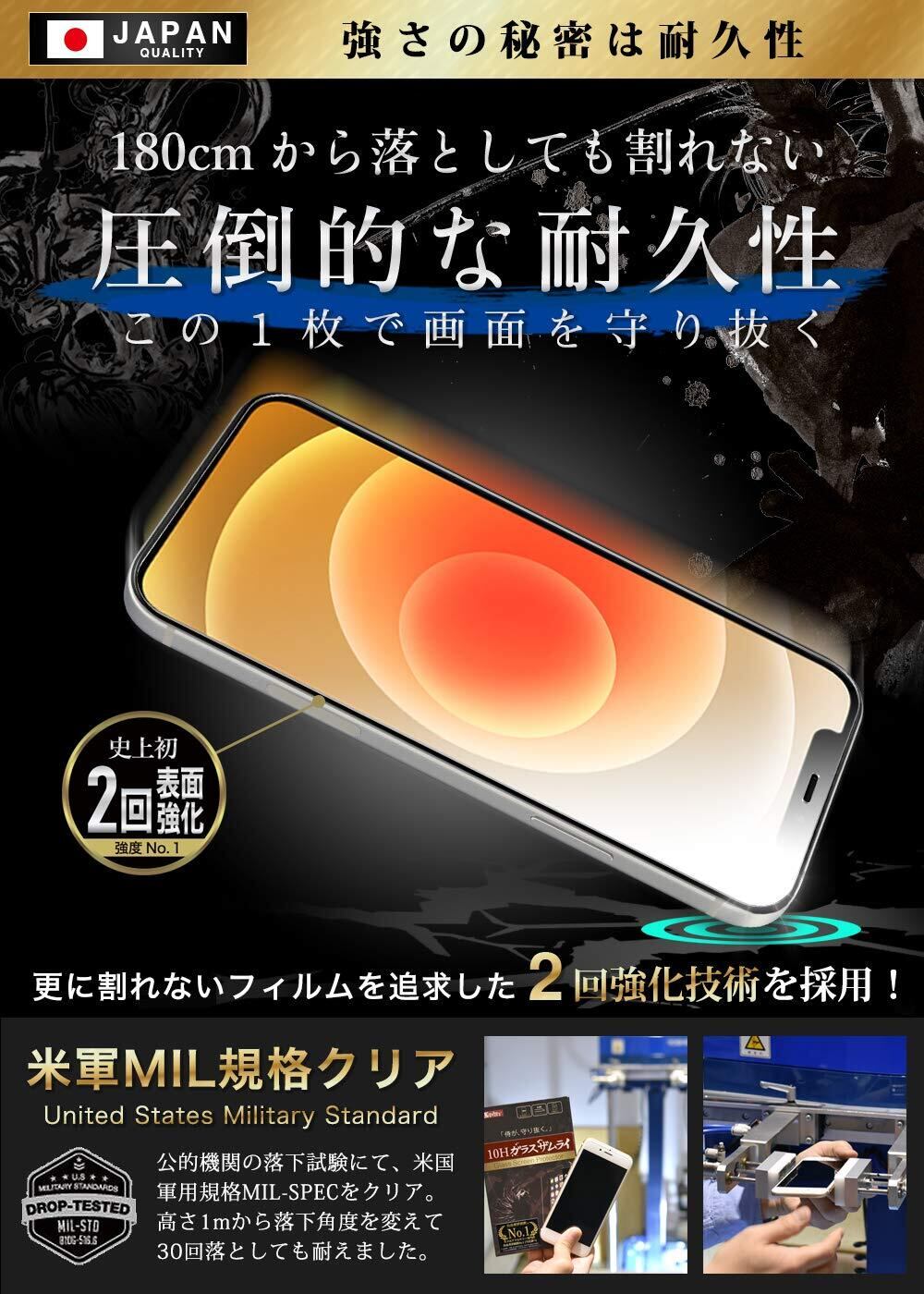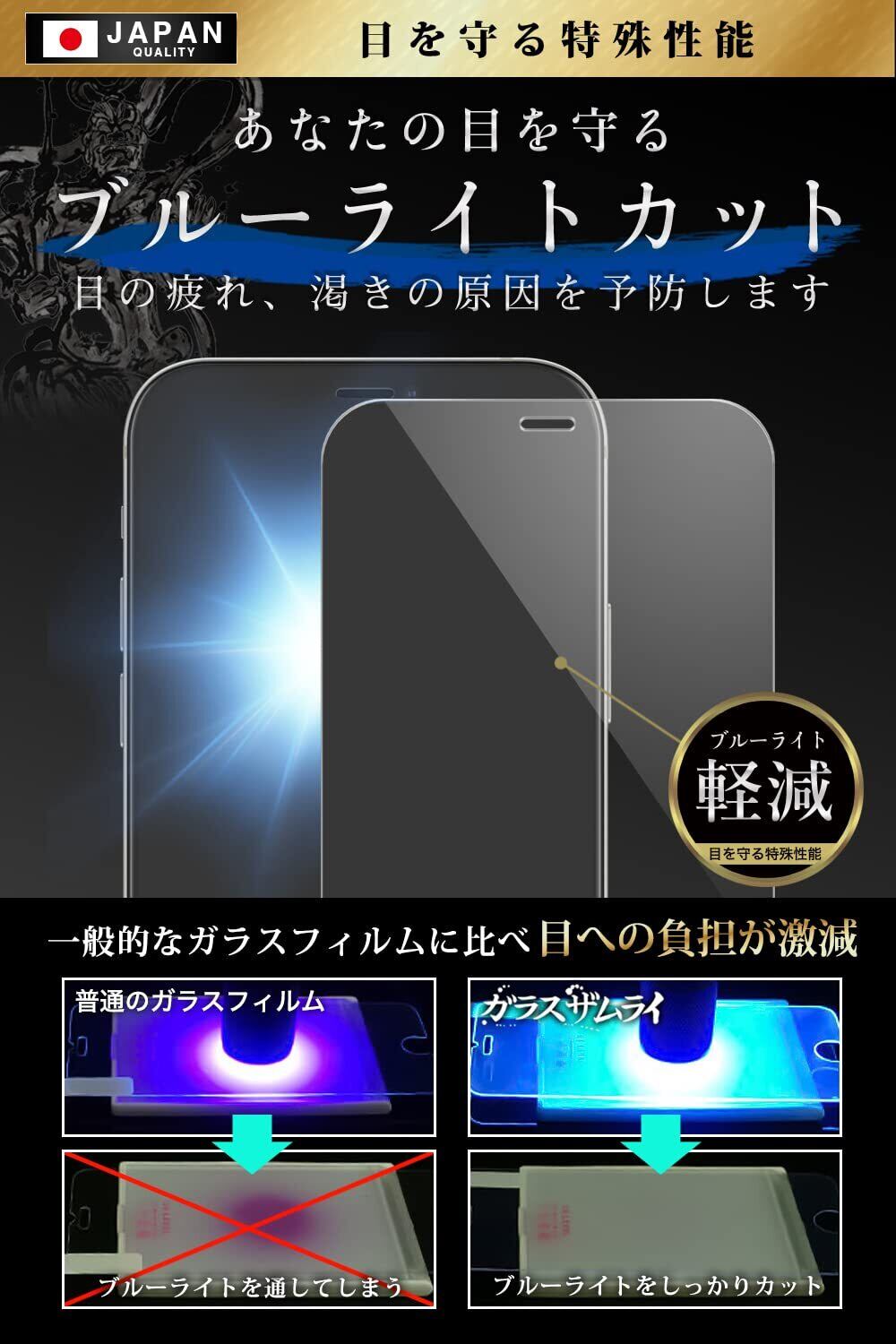 ガラスザムライ iPhone 12 用 ガラスフィルム ブルーライトカット 硬度 10H 国産AGC素材 強化ガラス 保護フィルム 米軍MIL規格 いPhone 282-blue