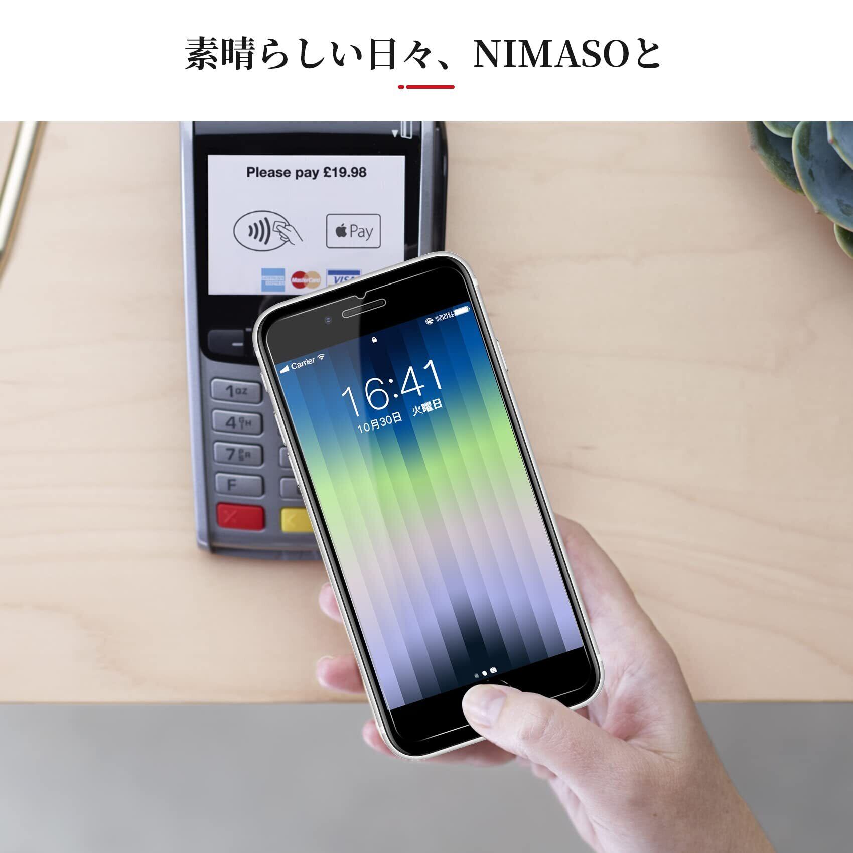 NIMASO ガラスフィルム iPhone SE3 用 iPhone SE 2 用 液晶 保護 フィルム Dragontrail素材 割れにくい 耐衝撃 ガイド枠付き 2枚セット iPhoneSE (第2世代/第3世代) 用 NSP22A427 | kki