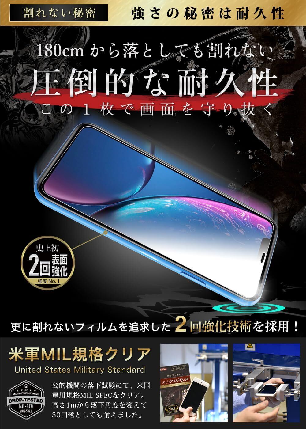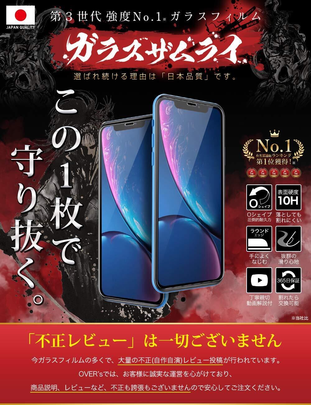 ガラスザムライ iPhone XR 用 ガラスフィルム 硬度 10H 日本製ガラス素材 強化ガラス 保護フィルム 米軍MIL規格 いPhone 196-k