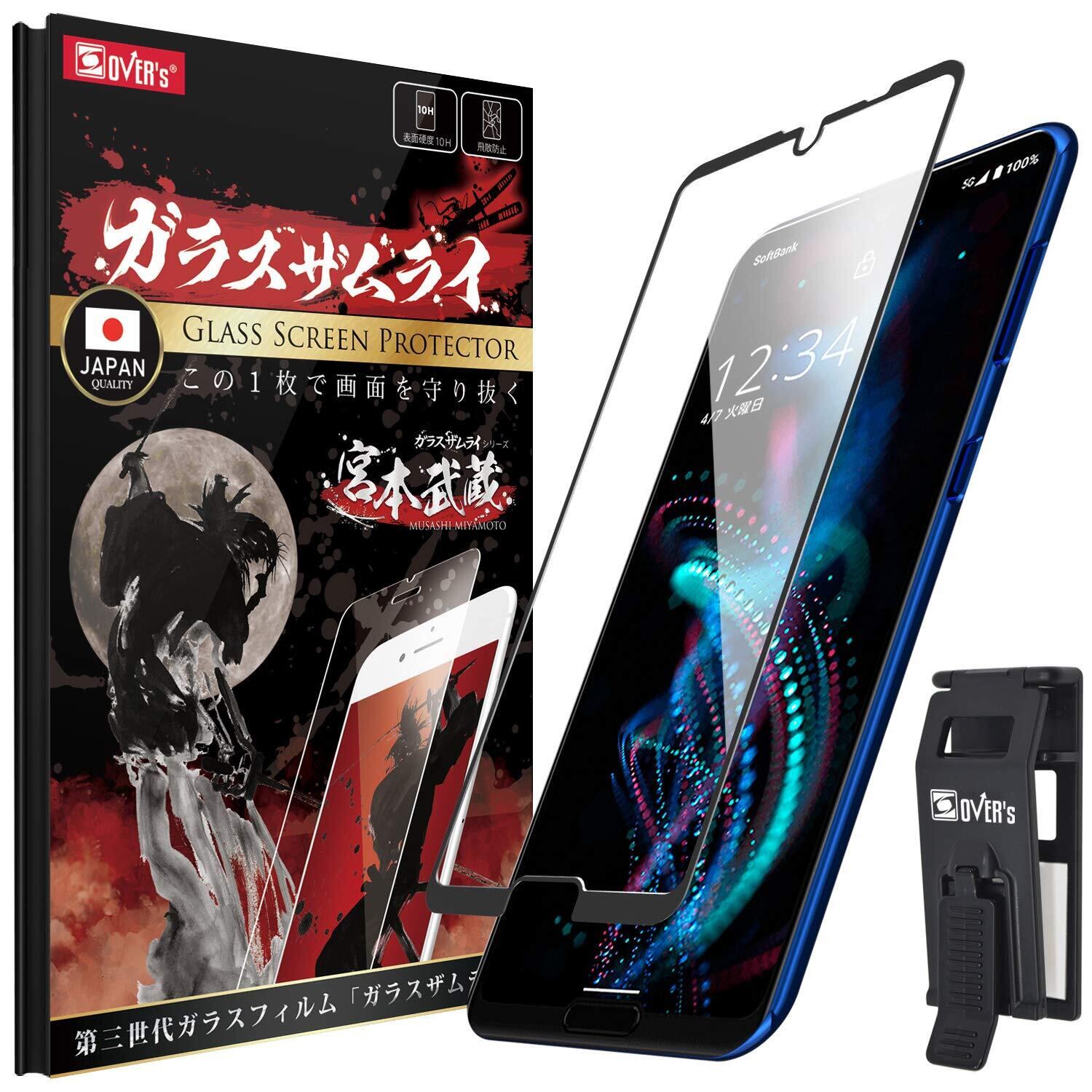ガラスザムライ AQUOS R5G 用 ガラスフィルム SHG01 用 SH-51A 用 908SH 用 全面保護 硬度 10H 強化ガラス 保護フィルム 米軍MIL規格 261-3d-bk | kki