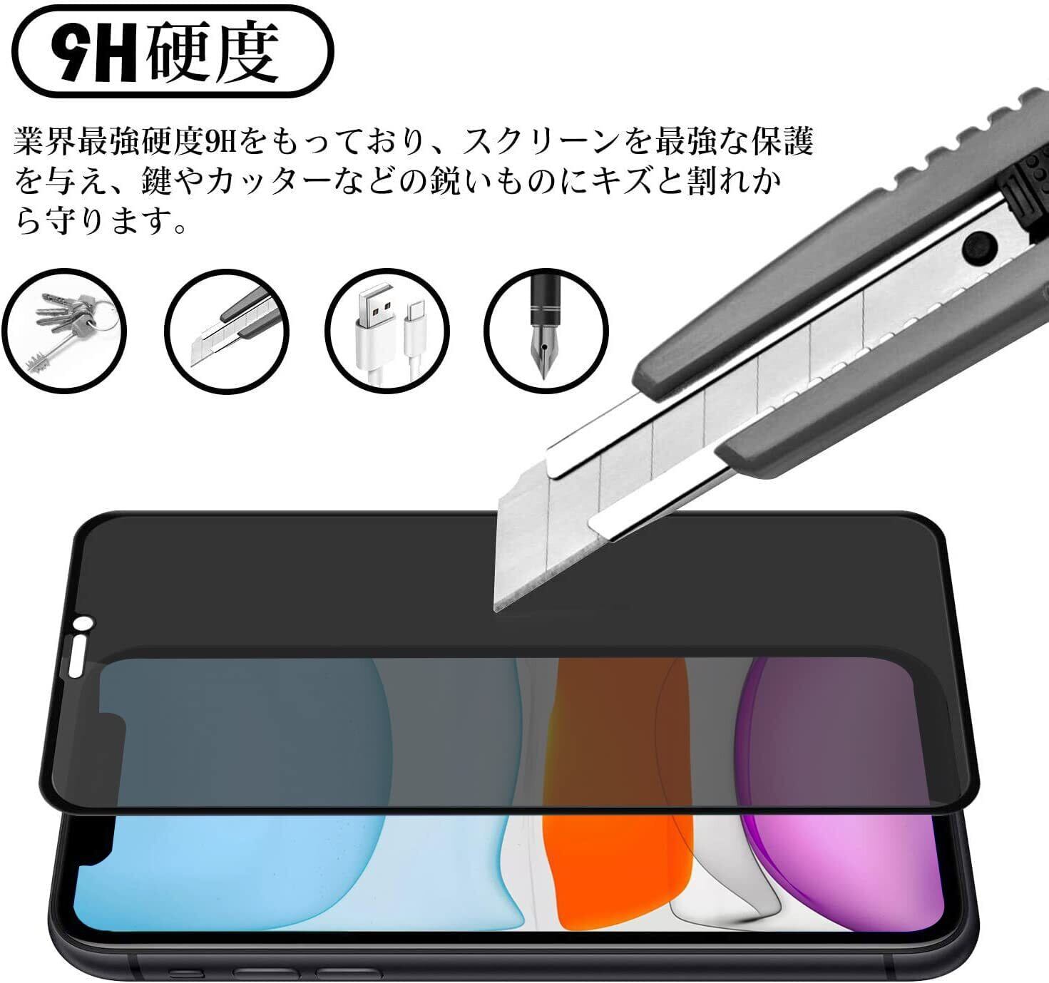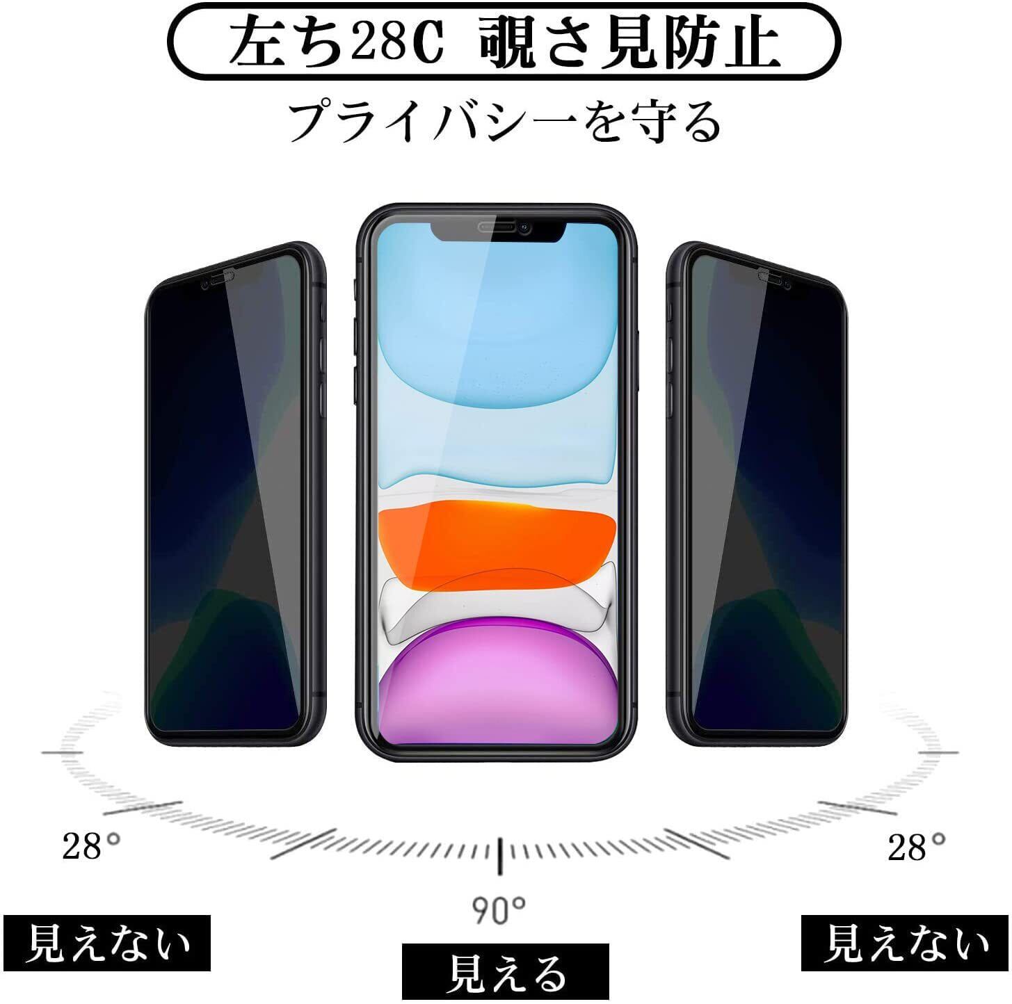 【覗き見防止】 iPhone 11 用 ガラスフィルム iphoneXR フィルム【2枚入】 のぞき見防止 iphone11 用 保護ガラス アイフォンXR ガラスフィルム のぞき見 【貼り付け簡単/気泡ゼロ/割れない】 | kki