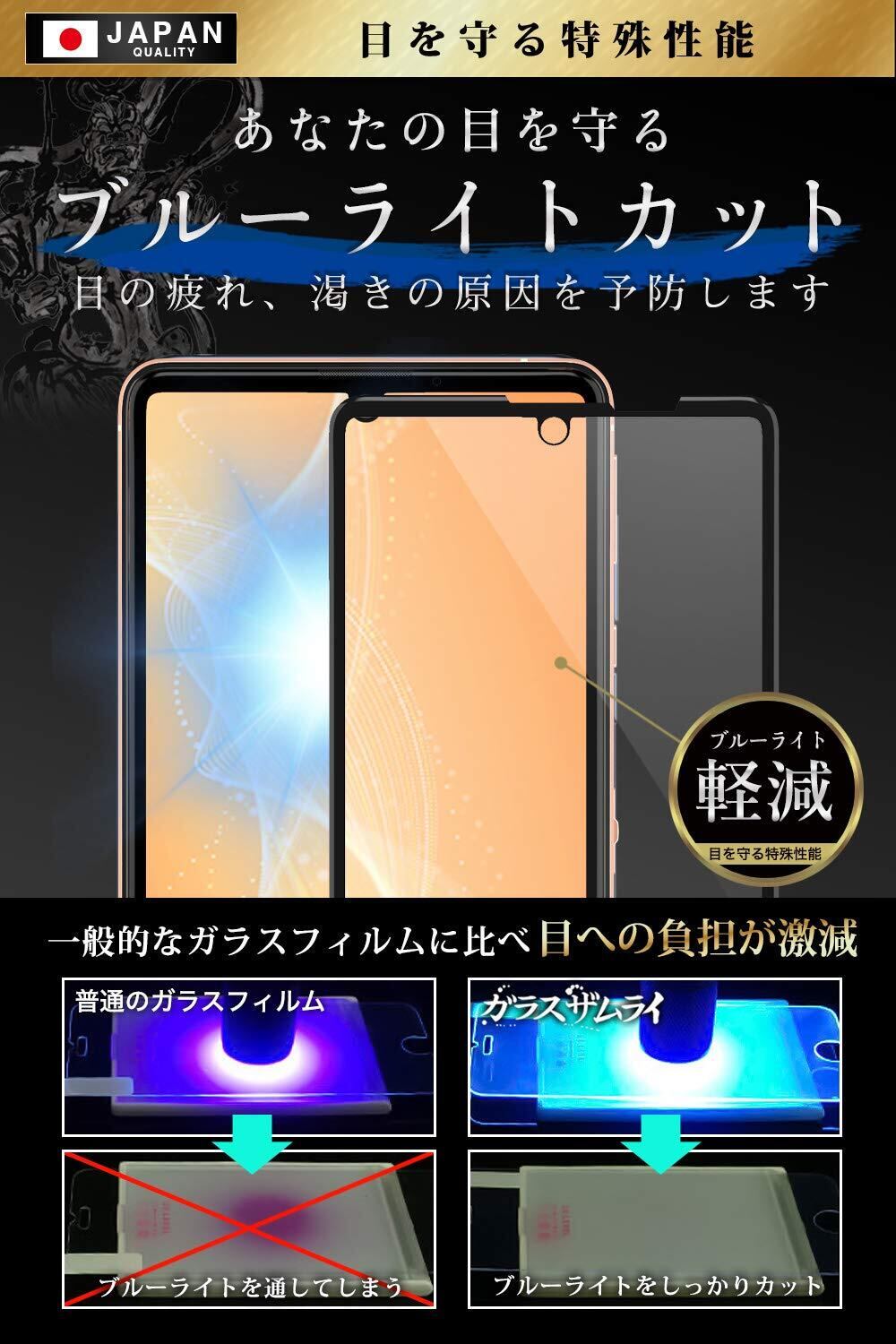 ガラスザムライ AQUOS Sense4 用 ガラスフィルム SH-41A 用 ブルーライトカット 全面保護 硬度 10H 強化ガラス 保護フィルム 米軍MIL規格 288-blue-3d-bk | kki