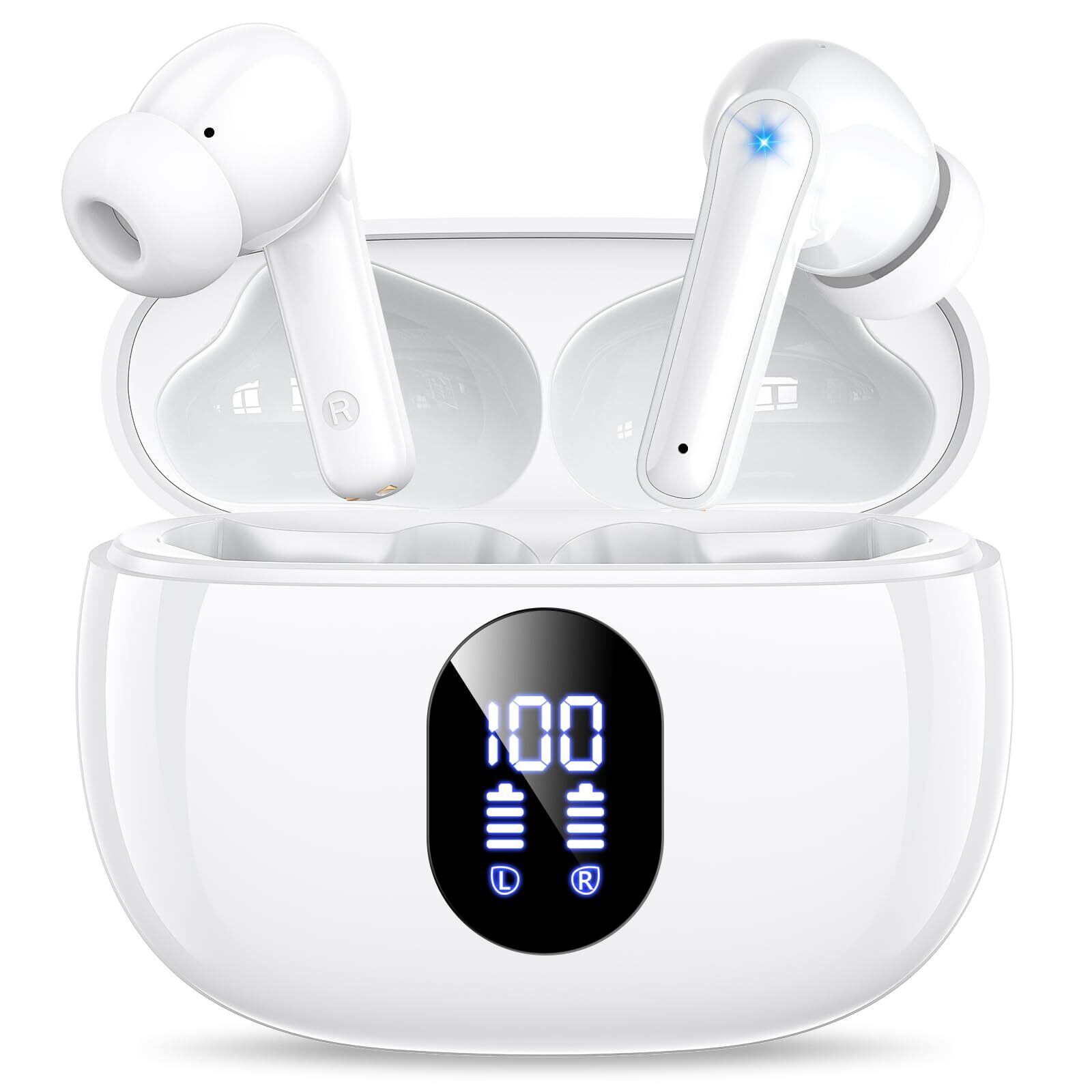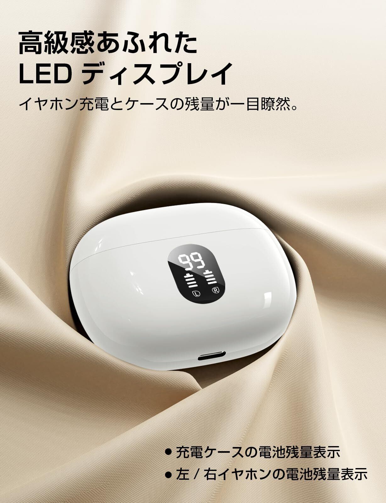 イヤホン bluetooth ワイヤレスイヤホン 48時間の再生時間 重低音 LEDディスプレイ表示 小型/軽量 IPX7防水 ブルートゥース 接続瞬時 Hi-Fi ブルートゥースイヤホン Type-C 急速充電 ぶるーとぅーす iPhone/Android/Pad適用 スポーツ/通勤/通学/WEB会議 (ホワイト) | kki