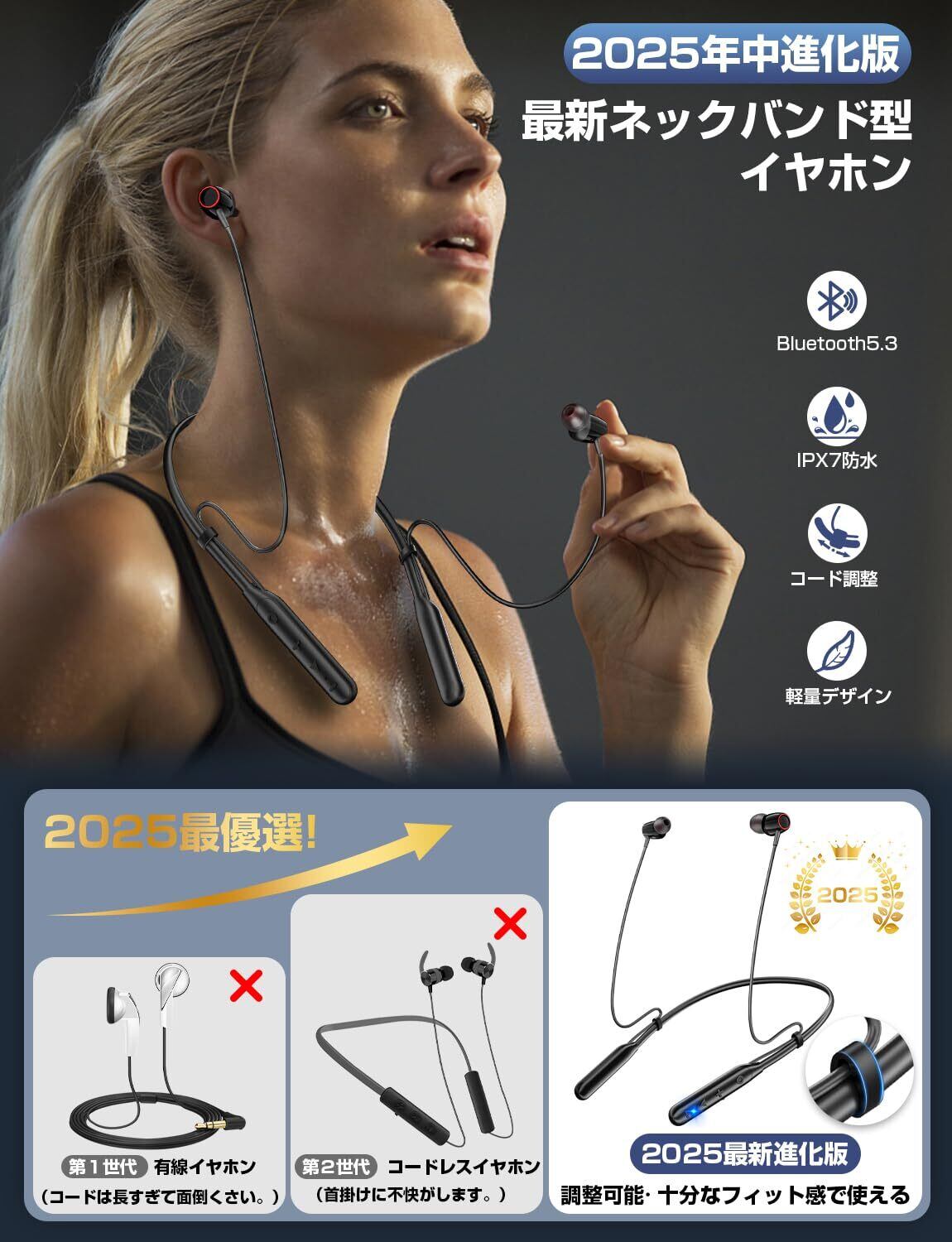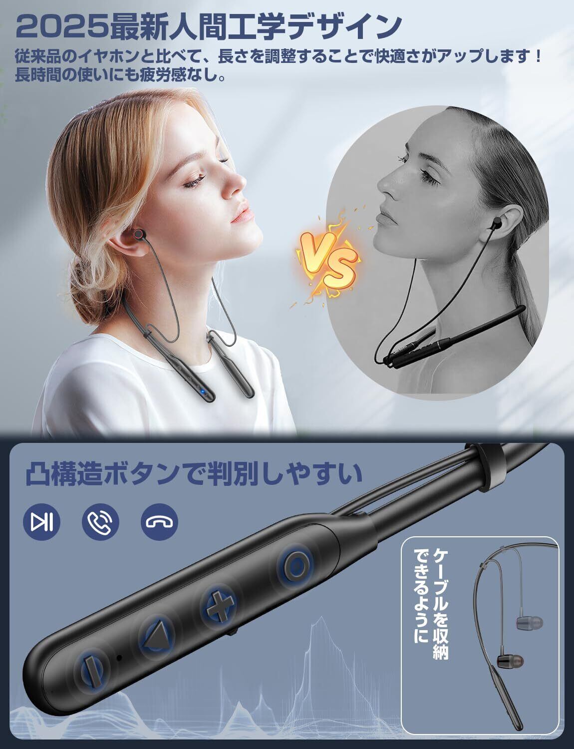 2025新設計ネックバンド型・イヤホン Bluetooth・コード調整◎Bluetooth 5.3】ワイヤレスイヤホン ネックバンド型 ワイヤレスイヤホン 首掛けイヤホン ブルートゥースイヤホン CVC8.0ノイズキャンセリング イヤホン Type-C急速充電 イヤフォン マグネット搭載 ハンズフリー通話 軽量 音量調節 Siri 音楽/WEB会議/ビジネス/通勤通学 技適認証済 日本語説明書 | kki