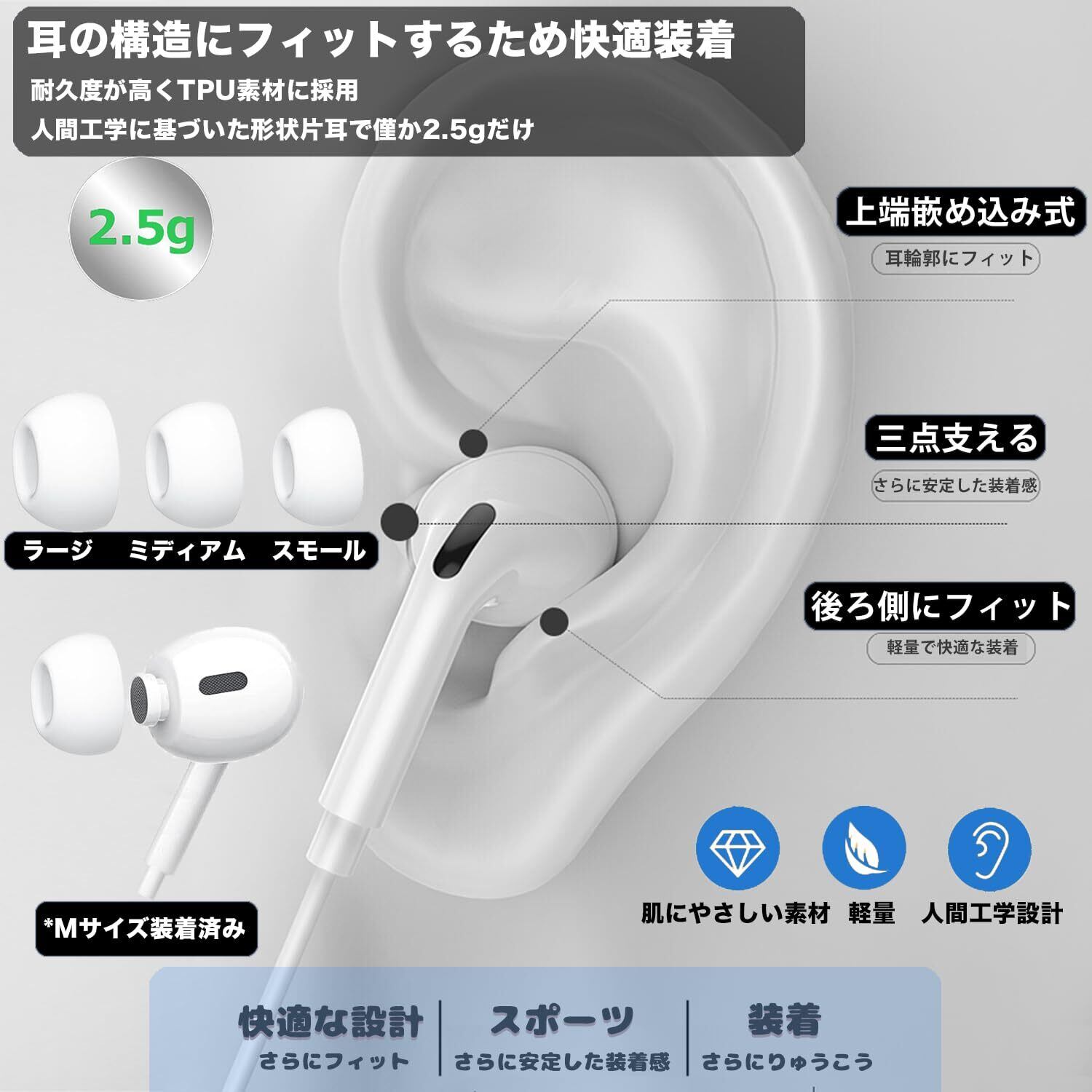 タイプc イヤホン 有線 【業界初売り iPhone16/15対応】Type-C 接続 イヤホン 重低音 純正DAC MFi認定チップ内蔵 通話可能マイク付きリモコン 遅延なし 音量調節 絡み防止 カナル型 小型 軽量 防水 Apple iPhone/Android/iPad/などUSB C搭載デバイス対応 | kki