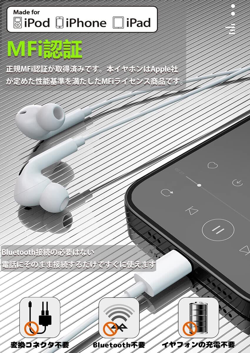 iPhone イヤホン 有線【2025新版 Apple MFi認証済み】純正 iphone用イヤホン lightning ライトニング接続 ステレオイヤフォン マイク付き 通話対応 リモコン 音量調節 HIFI 重低音 カナル型 アップル iPhone 14 / 13 / 12 / 11 / Pro/Max/SE/X/XS/XR / 8 / 8P / 7 / 7P / iPad/iPod 対応 | kki