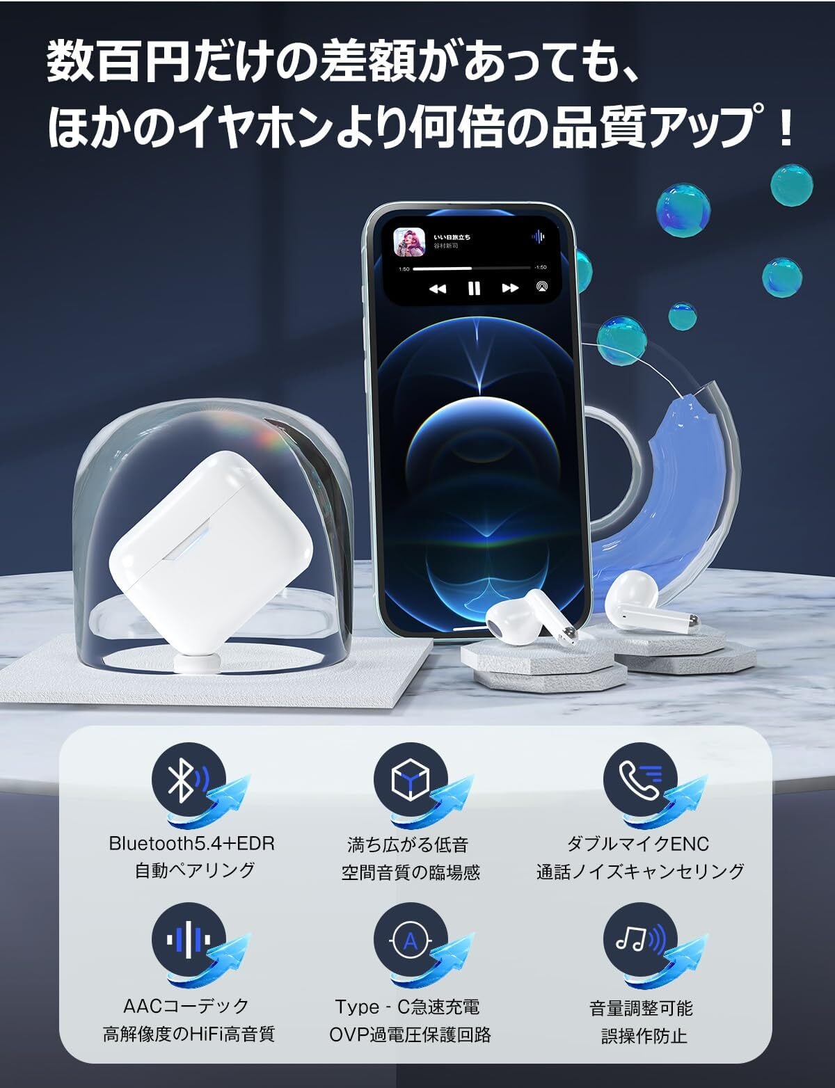 【進歩究極モデル】ワイヤレスイヤホン bluetooth イヤホン ワイヤレス イヤフォン hi-fi音質 & 重低音 片耳 蓋を開け自動接続 EDR ダブルマイクENC CVC8.0通話ノイズキャンセリハンズフリー通話 AAC/SBCコーデック 無線 インナーイヤー タイプc充電 OVP タッチ 左右分離 フィット 音量調整/siri 日本語音声/説明書 通勤通学 | kki