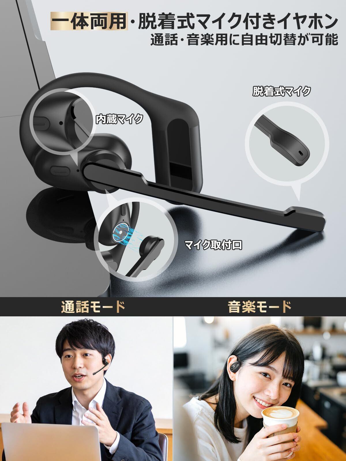 Bluetoothヘッドセット【2026年業界高水準傑作 マイク付き 脱着式オープン型】 Earaku(イアラク) MicCuff 一体両用 通話用イヤホン OWSイヤホン 片耳・両耳使用可能 耳掛け Bluetooth5.4EDR ENCノイズキャンセリング 耳を塞がない ミュート機能 Type-C充電 IPX防水 運転 オンライン会議 | kki