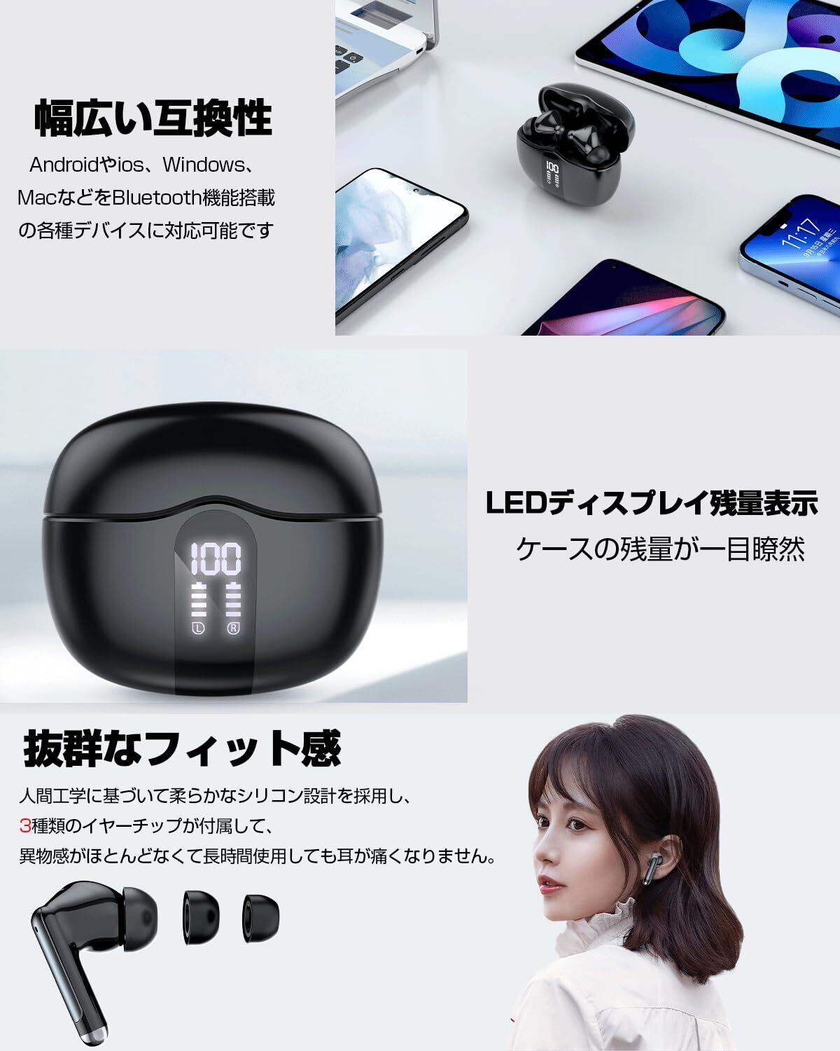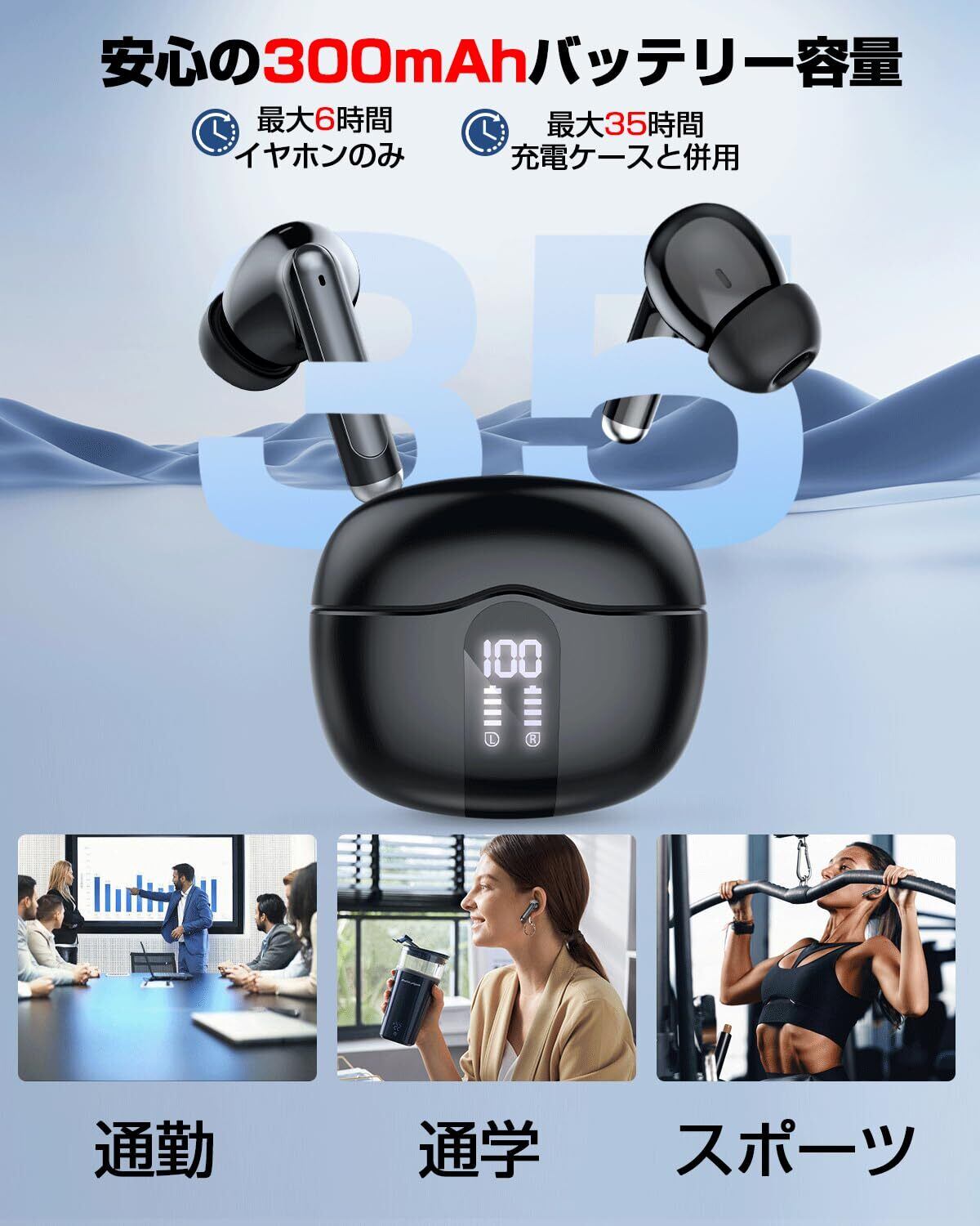 【新開発音質重視モデル ・中高低音バランスが良く】イヤホン bluetooth ワイヤレスイヤホン ブルートゥース イヤフォン Bluetooth5.4 LEDディスプレイ ダブル マイク ENC CVC8.0通話 ノイズキャンセリング Hi-Fi音質 ハンズフリー通話 ぶるーとぅーす カルナ型 35時間音楽再生 iPhone/Android 適用 通勤/通学/スポーツ/ゲーム | kki