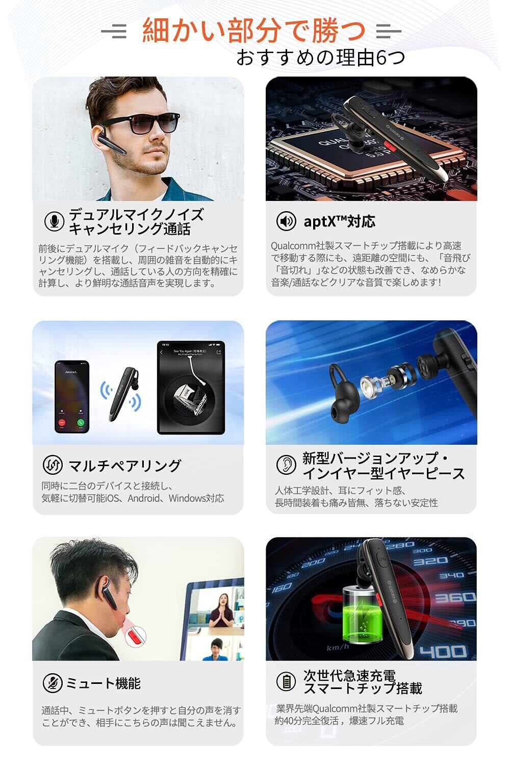 Glazata 日本語音声ワイヤレスヘッドセット Bluetoothイヤホン Qualcomm社製スマートチップ搭載【aptX & aptX HD、SBC・AAC対応 デュアルマイク通話設計 ENCノイズ低減技術 ミュート/SIRI搭載 】 急速充電スマートチップ搭載、MEMS高感度マイク内蔵,Scms-t,ガラケー、iOS, android, Windows対応 「黒」 | kki
